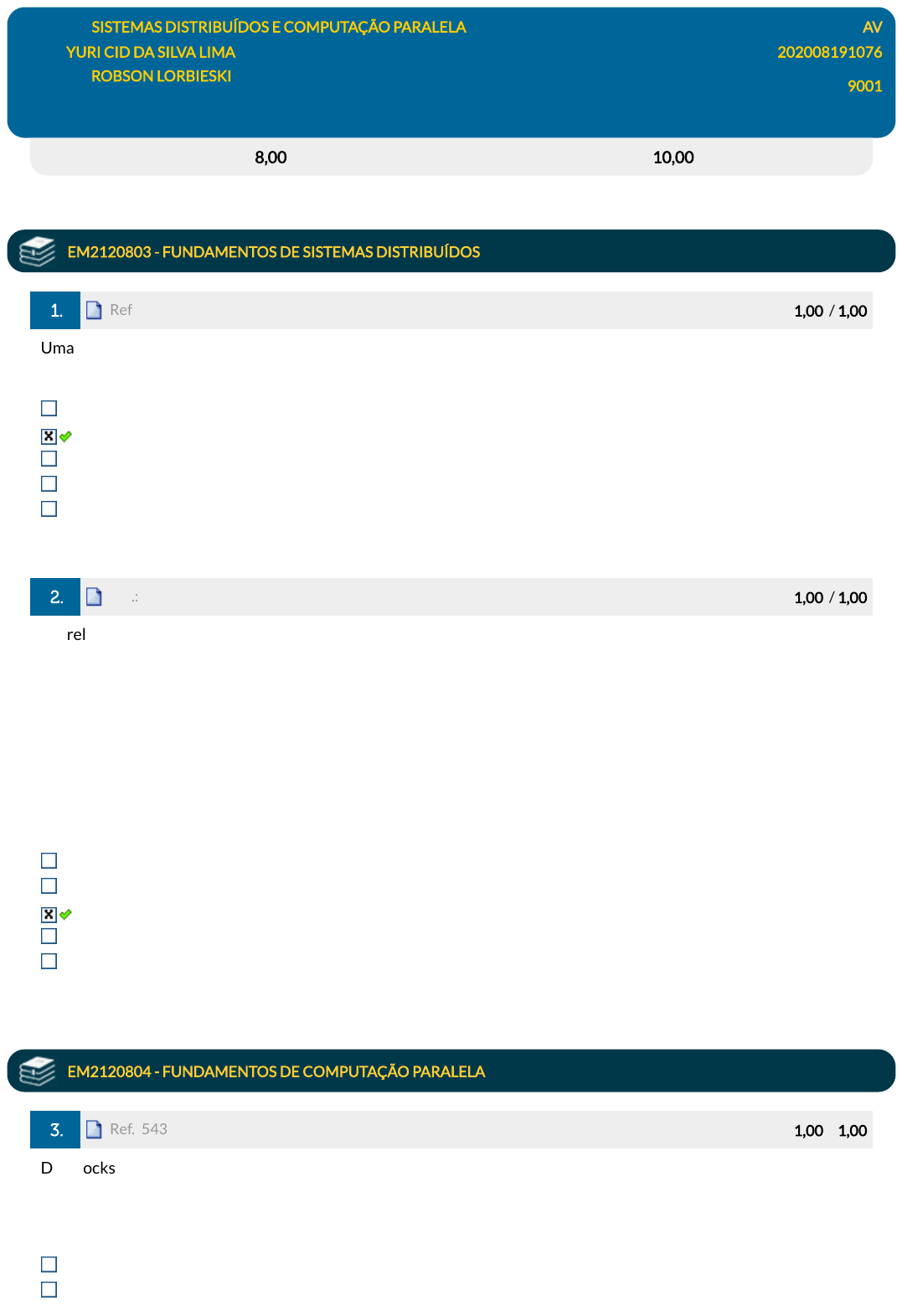 Disciplina: SISTEMAS DISTRIBUÍDOS E COMPUTAÇÃO PARALELA AV