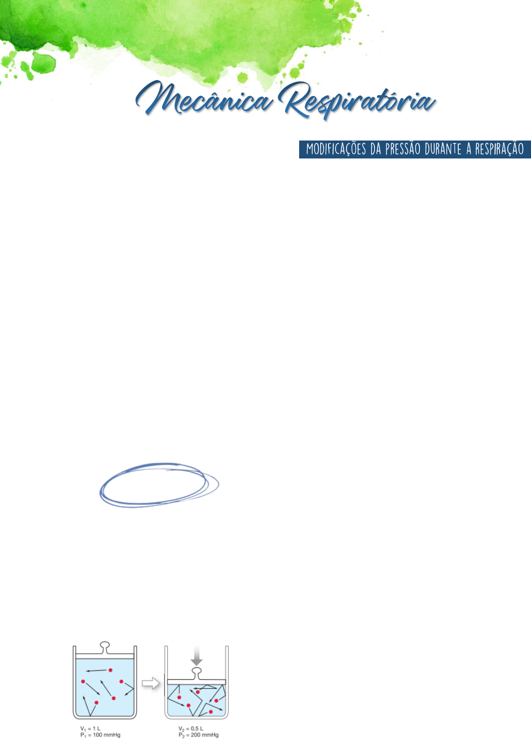 Leonardo Vinícius Ribeiro Moreira BBPM III - Fisiologia A respiração é um processo ativo que requer contração muscular. O ar flui para dentro dos pulmões devido ao gradiente de pressão criado por uma bomba. No sistema respiratório, os músculos da caixa torácica e o diafragma funcionam como uma bomba, uma vez que a maior parte do tecido pulmonar é um fino epitélio de troca. Quando esses músculos se contraem, os pulmões expandem-se, uma vez que estão presos à parede interna do tórax pelo líquido pleural. Os músculos primários envolvidos na respiração espontânea (respiração em repouso) são o diafragma, os intercostais externos e os escalenos. Durante a respiração forçada, outros músculos do tórax e do abdome podem ser requisitados a auxiliar. O fluxo de ar no trato respiratório obedece às mesmas regras do fluxo sanguíneo: FLUXO ∝ △P/R 1. O fluxo de ar ocorre em resposta a um gradiente de pressão (ΔP); 2. O fluxo diminui à medida que a resistência (R) do sistema ao fluxo aumenta. OBS: as relações pressão-volume da lei de Boyle são a base da ventilação pulmonar. Tempo 0. Na breve pausa entre as respirações, a pressão alveolar é igual à pressão atmosférica (0 mmHg no ponto A1). Quando as pressões são iguais, não há fluxo de ar. Tempo 0 a 2 segundos: inspiração. Quando a inspiração inicia, os músculos inspiratórios contraem, e o volume torácico aumenta. Com o aumento do volume, a pressão alveolar diminui cerca de 1 mmHg abaixo da pressão atmosférica (-1 mmHg ponto A2), e o ar flui para dentro dos alvéolos (ponto C1 a C2). A mudança do volume torácico ocorre mais rapidamente do que a velocidade do ar fluindo para dentro dos pulmões, e, assim, a pressão alveolar atinge o seu valor mais baixo no meio do processo de inspiração (ponto A2). Como o ar continua a fluir para dentro dos alvéolos, a pressão aumenta até a caixa torácica parar de expandir-se, imediatamente antes do término da inspiração. O movimento do ar continua por mais uma fração de segundo, até que a pressão dentro dos pulmões se iguala à pressão atmosférica (ponto A3). Ao término da inspiração, o volume pulmonar está no seu valor máximo no ciclo respiratório (ponto C2), e a pressão alveolar é igual à pressão atmosférica. Tempo 2 a 4 segundos: expiração. Como os volumes pulmonares e torácicos diminuem durante a expiração, a pressão de ar nos pulmões aumenta, atingindo cerca de 1 mmHg acima da pressão Leonardo Vinícius Ribeiro Moreira BBPM III - Fisiologia atmosférica. A pressão alveolar é agora maior do que a pressão atmosférica, de modo que o fluxo de ar se inverte, e o ar move-se para fora dos pulmões. Tempo 4 segundos. No final da expiração, o movimento de ar cessa quando a pressão alveolar novamente se iguala à pressão atmosférica (ponto A5). O volume pulmonar atinge o seu valor mínimo dentro do ciclo respiratório (ponto C3). Nesse ponto, o ciclo respiratório terminou e está pronto para ser iniciado novamente com a próxima respiração. Pressão intrapleural: a pressão intrapleural no fluido entre as membranas pleurais é normalmente subatmosférica, surgindo durante o desenvolvimento fetal, quando a caixa torácica associada com sua membrana pleural cresce mais rapidamente que o pulmão com sua membrana pleural associada. As duas membranas pleurais são mantidas unidas pelo líquido pleural, de modo que os pulmões são forçados a se estirarem, a fim de se adaptarem ao maior volume da cavidade torácica. Ao mesmo tempo, no entanto, o recolhimento elástico dos pulmões cria uma força direcionada para dentro, que tenta puxar os pulmões para longe da caixa torácica. A combinação da caixa torácica puxando para fora e a retração elástica dos pulmões puxando para dentro cria uma pressão intrapleural subatmosférica de cerca de -3 mmHg. Leonardo Vinícius Ribeiro Moreira BBPM III - Fisiologia No início da inspiração, a pressão intrapleural é de cerca de -3 mmHg. À medida que a inspiração prossegue, a membrana pleural e os pulmões acompanham a expansão da caixa torácica devido a interações com o líquido pleural, porém o tecido pulmonar elástico resiste a ser estirado. A tendência de os pulmões ficarem o mais distante possível da caixa torácica faz a pressão intrapleural se tornar ainda mais negativa. Quanto mais profunda a respiração, mais trabalho é necessário para estirar o tecido elástico pulmonar. No final de uma inspiração tranquila, quando os pulmões são totalmente expandidos, a pressão intrapleural cai para aproximadamente -6 mmHg. Durante a expiração, a caixa torácica retorna à sua posição de repouso. Os pulmões deixam a sua posição de estiramento, e a pressão intrapleural retorna ao seu valor normal de cerca de -3 mmHg. OBS: a pressão intrapleural nunca se equilibra com a pressão atmosférica, pois a cavidade pleural é um compartimento fechado. A ventilação adequada depende da habilidade dos pulmões de se expandirem normalmente. A maior parte do trabalho respiratório é gasto para superar a resistência elástica dos pulmões e da caixa torácica ao estiramento. Clinicamente, a habilidade do pulmão de se estirar é chamada de complacência. A complacência refere-se à quantidade de força que deve ser exercida sobre um corpo para o deformar. Um pulmão de alta complacência pode ser estirado facilmente, já um pulmão com baixa complacência requer mais força dos músculos inspiratórios para ser estirado. A complacência é o inverso da elastância (recuo elástico), que é a capacidade de resistir à deformação mecânica. A elastância também se refere à capacidade que um corpo tem de voltar à sua forma original quando a força que promove a sua deformação é removida. Um pulmão que é estirado facilmente (alta complacência) provavelmente apresenta perda do seu tecido elástico e, assim, não voltará ao seu volume de repouso qu