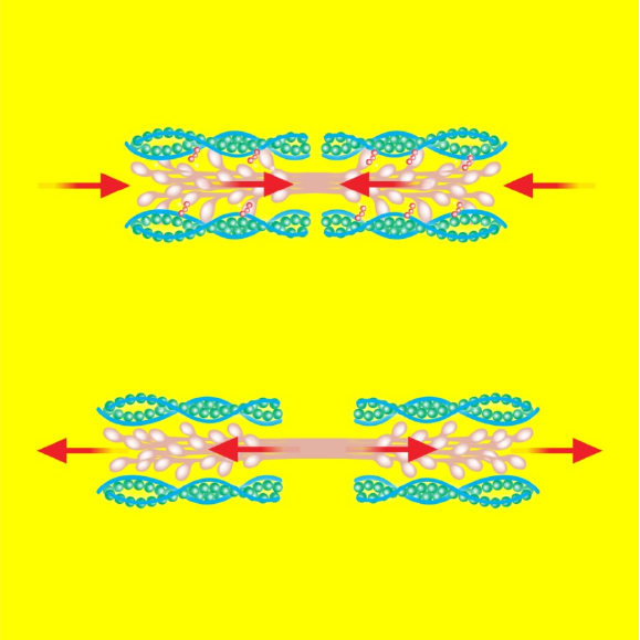 MECANISMO DE DESLIZAMENTO MUSCULAR Sobreposição da actina sobre a miosina levando ao encurtamento dos sarcômeros. Os filamentos de actina e miosina têm uma grande afinidade e ligam-se facilmente sem a presença do complexo troponina/tropomiosina, que impede essa ligação na ausência de Ca2+. O mecanismo de liberação do sítio de ligação actina/miosina começa com a chegada do potencial de ação à membrana da fibra muscular, promovendo o aumento da concentração de íons Ca no sarcoplasma. Estes íons ligam-se à 2+ troponina C, causando uma mudança conformacional da mesma que desloca o filamento de tropomiosina, liberando os sítios da actina que estavam bloqueados. A interação actina/miosina se dá imediatamente desde que haja ATP e magnésio (ambos presentes em condições normais).