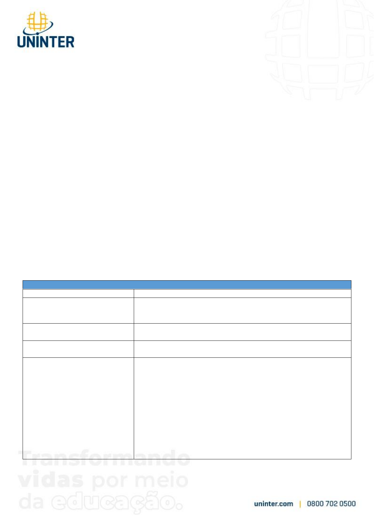PÓS-GRADUAÇÃO LATO SENSU PLANO DE ENSINO Disciplina: AVALIAÇÃO INSTITUCIONAL Carga Horária: 30 horas Professor responsável: Me. Juliana Kussem Ementa: Concepção, metodologia e instrumentos de Avaliação Educacional: avaliação da aprendizagem e avaliação externa. Políticas de Avaliação Institucional da Educação Básica Brasileira. Avaliação Institucional e Accountability. Avaliação de Sistema e Avaliação da Escola: Indicadores de Rendimento Escolar. Dimensões técnica e política da Avaliação Institucional. Concepções e modelos de Avaliação Institucional. Bibliografia Básica: BOTH, Ivo José. Avaliação planejada, aprendizagem consentida: é ensinando que se avalia, é avaliando que se ensina. 2. Ed. Ver. e ampl. Curitiba: InterSaberes, 2012. CASTILLO ARREDONDO, Santiago. Práticas de avaliação educacional: materiais e instrumentos. Curitiba: InterSaberes, 2013. CERVI, Rejane Medeiros. Planejamento e avaliação educacional. Curitiba: InterSaberes, 2013. Bibliografia Complementar: CARVALHO, M. P. de. Avaliação escolar, gênero e raça. Campinas: Papirus, 2013. CORTELAZZO, Iolanda Bueno de Camargo. Prática pedagógica, aprendizagem e avaliação em educação a distância. Curitiba: InterSaberes, 2013. VILLAS BOAS, Benigna Maria de Freitas. Projeto de intervenção na escola: Mantendo as aprendizagens em dia. Campinas, SP: Papirus, 2010. AVALIAÇÃO PROCEDIMENTOS CRITÉRIOS 1. Atividade Pedagógica online. (peso 4) Atividade online: realizada individualmente, com ou sem a presença do orientador educacional. Para realizar a atividade, acesse o LINK AVALIAÇÕES na página da disciplina. 2. Participação nos fóruns. Fórum para discussão de assuntos referentes à disciplina. Momento de interação entre os alunos de participação facultativa. 3. Tutoria. Entre em contato sempre que precisar para esclarecer dúvidas ou fazer solicitações através do link Tutoria. 4. Prova objetiva online em polo presencial. (peso 6) Realizada individualmente, com a presença do orientador educacional no polo de apoio presencial e sem consulta. Realização através do aplicativo instalado no computador do polo. Verifique o cronograma na página inicial do UNIVIRTUS. Instruções importantes: •A avaliação contém 10 questões objetivas, escolhidas pelo sistema randomicamente; •Confira se assinalou todas as questões; •Para cada questão, escolha somente uma das alternativas de resposta; •Você deverá concluir a avaliação em 1 (uma) hora; •O seu gabarito será disponibilizado logo após o término do prazo para realização desta avaliação.