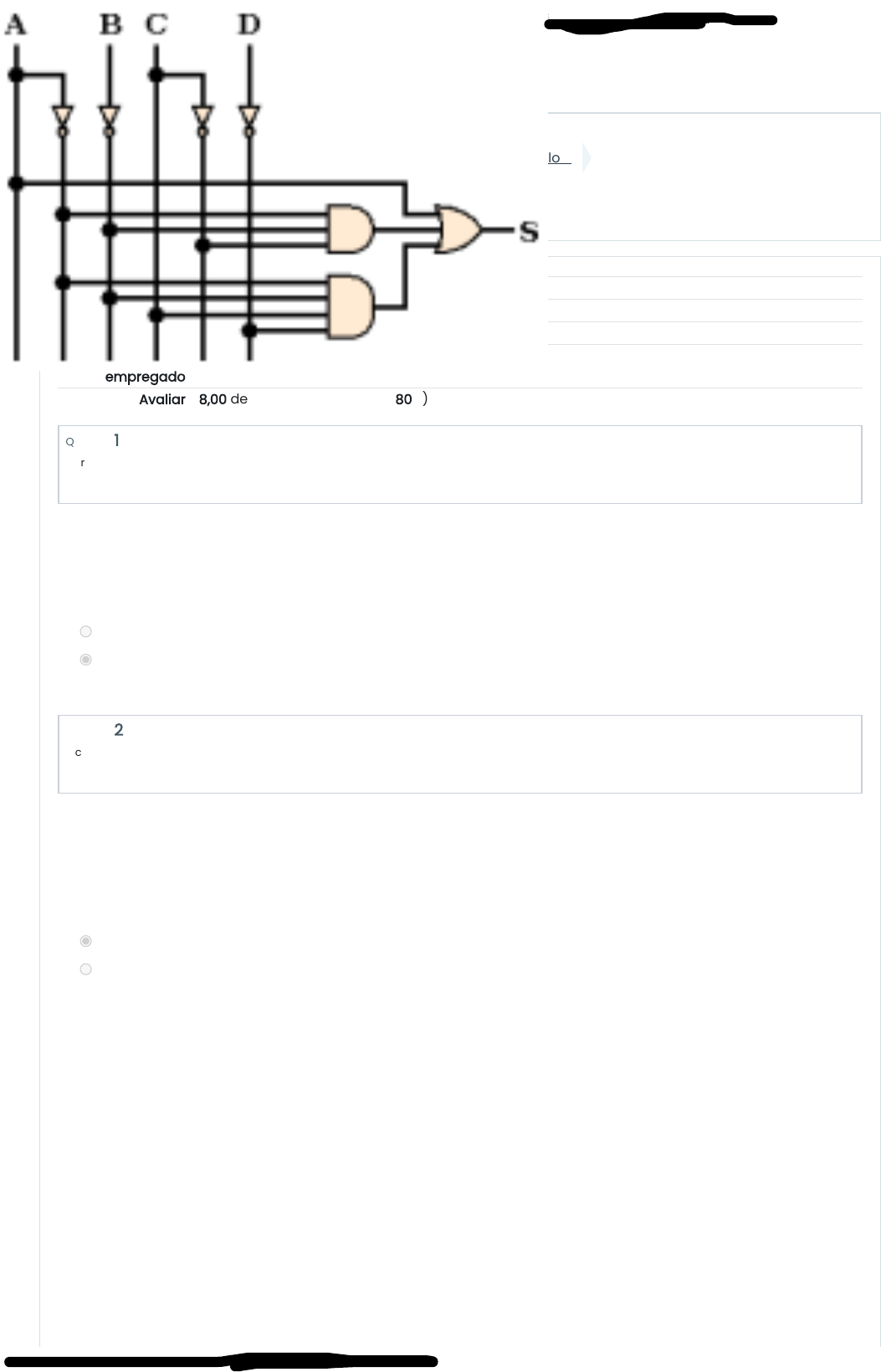 28/06/2023, 21:06 ✅ [A3] – Avaliação do Módulo 3 – Algoritmos recursivos: Revisão da tentativa https://ava.ufms.br/mod/quiz/review.php?attempt=702452&cmid=616904 1/4 Página inicial Meus cursos 32010001906-2023-1 📚 Módulo 3 ✅ [A3] – Avaliação do Módulo 3 – Algoritmos recursivos Iniciado em quarta, 28 jun 2023, 20:53 Estado Finalizada Concluída em quarta, 28 jun 2023, 21:03 Tempo empregado 10 minutos 30 segundos Avaliar 8,00 de um máximo de 10,00(80%) Questão 1 Correto Atingiu 1,00 de 1,00 Questão 2 Incorreto Atingiu 0,00 de 1,00 Algoritmos recursivos podem ser transformados em algoritmos iterativos. Para isso, será necessário utilizar filas para armazenar os cálculos parciais que serão produzidos. Escolha uma opção: Verdadeiro Falso Em geral, os algoritmos recursivos realizam chamadas para si próprio e passam por parâmetro uma nova entrada, que geralmente é maior que a entrada anterior. Ou seja, a cada chamada recursiva o tamanho da entrada aumenta, e essa é a dinâmica que levará ao término da recursão. Escolha uma opção: Verdadeiro Falso https://ava.ufms.br/ https://ava.ufms.br/course/view.php?id=44592 https://ava.ufms.br/course/view.php?id=44592#section-4 https://ava.ufms.br/mod/quiz/view.php?id=616904 28/06/2023, 21:06 ✅ [A3] – Avaliação do Módulo 3 – Algoritmos recursivos: Revisão da tentativa https://ava.ufms.br/mod/quiz/review.php?attempt=702452&cmid=616904 2/4 Questão 3 Incorreto Atingiu 0,00 de 1,00 Questão 4 Correto Atingiu 1,00 de 1,00 Questão 5 Correto Atingiu 1,00 de 1,00 Em relação ao conceito de algoritmos recursivos, considere as afirmações abaixo: 1. O caso base ou condição de parada de um algoritmo recursivo evita a recursão infinita. 2. O passo recursivo permite com que uma função chame a si mesma para resolver uma versão menor do problema. 3. Uma solução recursiva possui um comportamento similar a uma estrutura de repetição, com a diferença que a repetição se dá principalmente através de chamadas para a própria função. 4. Problemas mais complexos como a Torre de Hanói não podem ser resolvidos com recursividade. Escolha a alternativa que contenha apenas afirmações verdadeiras. a. 2 e 3. b. 1, 2 e 3 c. 1 e 2. d. Todas as afirmações são verdadeiras. e. 1 e 3. A recursividade indireta é produzida quando um programa ativa outro, que terminará ativando novamente o primeiro. Por exemplo: um programa A chama um programa B, e o programa B chama o programa A. Escolha uma opção: Verdadeiro Falso Um programa que utiliza recursividade indireta não precisa de condição de saída. Escolha uma opção: Verdadeiro Falso 28/06/2023, 21:06 ✅ [A3] – Avaliação do Módulo 3 – Algoritmos recursivos: Revisão da tentativa https://ava.ufms.br/mod/quiz/review.php?attempt=702452&cmid=616904 3/4 Questão 6 Correto Atingiu 1,00 de 1,00 Questão 7 Correto Atingiu 1,00 de 1,00 Questão 8 Correto Atingiu 1,00 de 1,00 Questão 9 Correto Atingiu 1,00 de 1,00 Um requisito para que um algoritmo recursivo seja correto é que não gere uma sequência infinita de chamadas sobre si mesmo. Escolha uma opção: Verdadeiro Falso Torre de hanói, busca binária e ordenação são exemplos de algoritmos que possuem soluções recursivas. Escolha uma opção: Verdadeiro Falso Em relação aos conceitos de iteratividade e recursividade, escolha uma sentença INCORRETA. a. Soluções recursivas criam uma outra cópia da função, o que pode consumir muita memória dependendo da quantidade de chamadas recursivas. b. A recursão consegue a repetição por meio de chamadas repetidas. c. Há várias funções que podem ser resolvidas tanto iterativamente quanto recursivamente. d. Tanto implementações iterativas quanto recursivas são baseadas em uma estrutura de controle. e. A recursão não possui desvantagens, portanto, as soluções recursivas sempre serão a melhor opção para implementar a solução de qualquer algoritmo. O conceito de recursividade pode ser definido como a capacidade de um programa resolver um problema realizando chamadas a si mesmo. Escolha uma opção: Verdadeiro Falso 28/06/2023, 21:06 ✅ [A3] – Avaliação do Módulo 3 – Algoritmos recursivos: Revisão da tentativa https://ava.ufms.br/mod/quiz/review.php?attempt=702452&cmid=616904 4/4 Questão 10 Correto Atingiu 1,00 de 1,00 Assim como acontece com algoritmos iterativos, algoritmos recursivos podem executar indefinidamente quando não são programados apropriadamente. Quando isso acontece, dizemos que o algoritmo entrou em uma recursão infinita. Escolha uma opção: Verdadeiro Falso Atividade anterior ◄ 📍 [Checkout de Presença] Módulo 3 – Algoritmos recursivos Seguir para... Próxima atividade ▶ [Videoaula] Apresentação do Módulo 4 ► Manter contato Suporte Técnico ao Usuário https://suporteagetic.ufms.br (67) 3345-7613 suporte.agead@ufms.br https://ava.ufms.br/mod/quiz/view.php?id=616902&forceview=1 https://ava.ufms.br/mod/url/view.php?id=616905&forceview=1 https://suporteagetic.ufms.br/ tel:(67) 3345-7613 mailto:suporte.agead@ufms.br https://api.whatsapp.com/send?phone=556733457613
