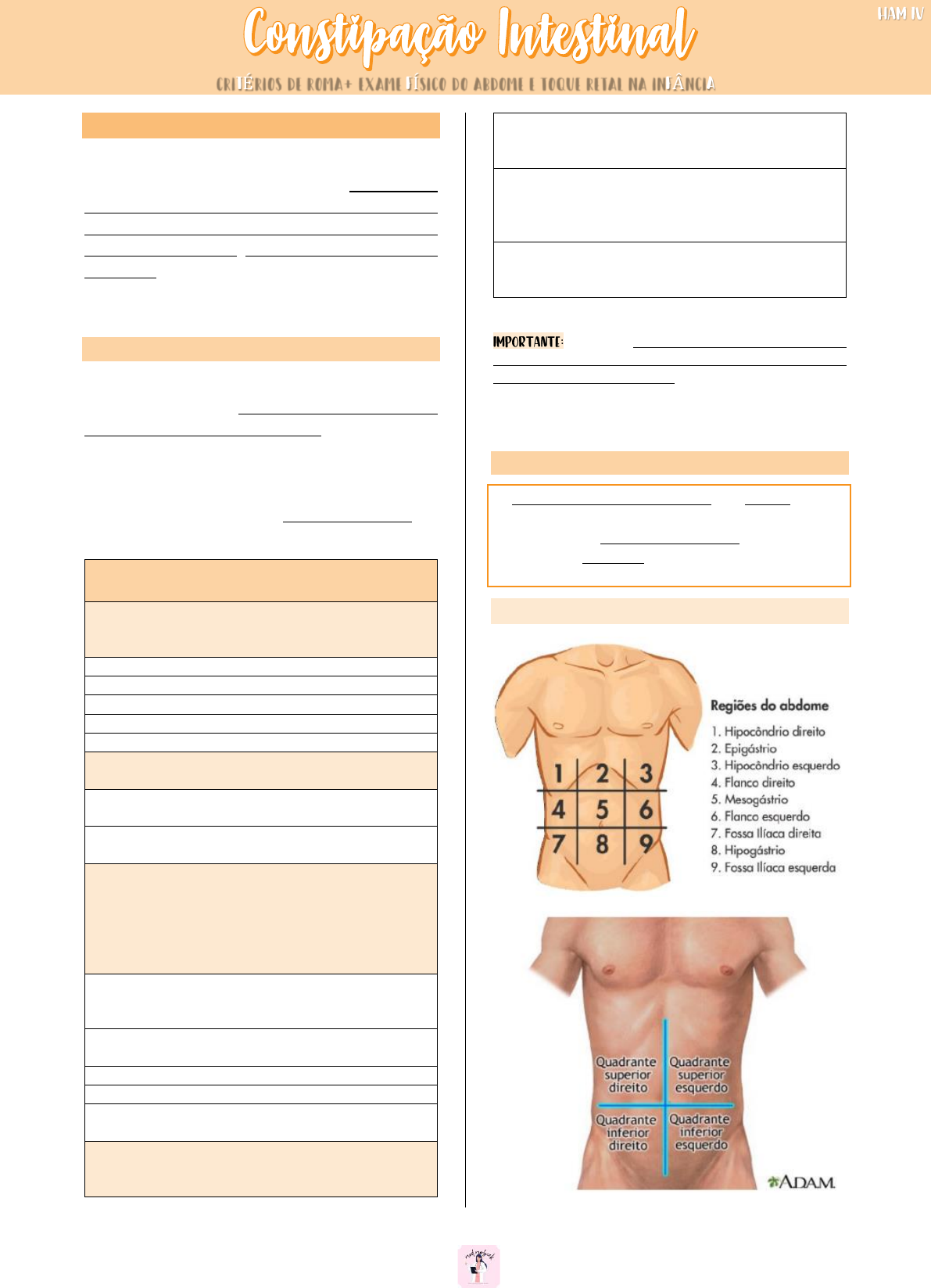 CRITÉRIOS DE ROMA+ EXAME FÍSICO DO ABDOME E TOQUE RETAL NA INFÂNCIA