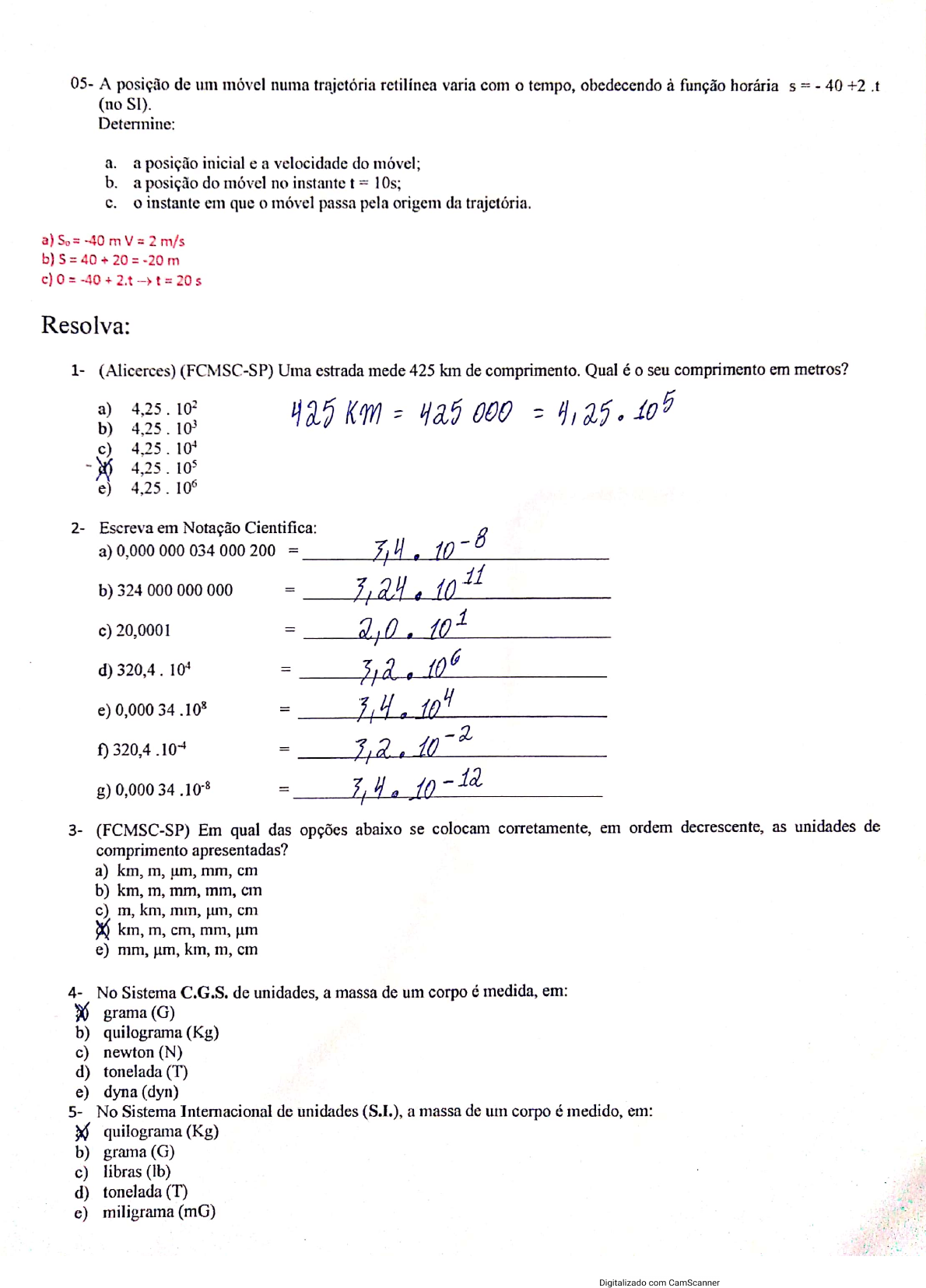 61 - Se um corpo tem a massa de 20 g e um volume de 5 cm3, quanto vale sua densidade? A) 4 g/cm3 B) 5 g/cm3 C) 15g/cm3 D) 10 g/cm3 PRÓXIMA