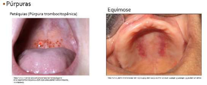 Lesões elementares São processos patológico básicos que aparecem clinicamente como alterações morfológicas variadas, tanto em mucosa como em pele Doenças tem início através de determinadas lesões gerando uma hipótese diagnóstica a partir do conhecimento básico da descrição das lesões para avaliar os dados obtidos no exame clínico Considerações gerais: Início de muitas doenças Expressa por aspectos clínicos diversos – hipótese diagnóstica Padronização polêmica Características importantes da lesão: tipo, cor, consistência (firme, mole, igual à da mucosa), localização, limites (bem delimitada ou não), crescimento (endofítico – cresce para dentro ou exofítico – cresce para fora), inserção. Classificação: Alterações de cor – mácula ou mancha Alterações da coloração da mucosa sem que ocorra elevação ou depressão tecidual Origem endógena ou exógena Endógena: vasculho-sanguíneas e melânicas Exógenas: pigmentos metálicos Podem ser hipercrômicas em que ocorre uma cor forte como eritema, rubor, cianose (fica roxo em decorrência da deficiência de oxigênio – passa pouco sangue para o local levando a baixa oxigenação), púrpuras Podem ser hipocrômicas em que ocorre a redução da cor, como mancha anêmica Em condições normais temos a coloração da mucosa derivada da presença de vasos sanguíneos e de pigmento melânicos. Eritema x enantema: os dois são mancha vermelha, enantema é mais específico para mucosa oral, podem ser usados no mesmo sentido. áreas enegrecidas da mucosa labial línquen plano Hematoma/equimose: quando ocorre o extravasamento de sangue no tecido conjuntivo, é azulado, pois a coloração deriva da decomposição de pigmentos de hemoglobina Formação sólida Pode ser uma pápula, placa, nódulo ou tumor A formação sólida é decorrente do crescimento de tecidos, logo temos aumentos de volume Classificação: tamanho, forma e limite • Pápula: Elevação pequena, sólida, globosa, únicas ou múltiplas de consistência fibrosa e menor que 5 mm Na imagem acima, pápulas podem se unir e formar placas, a imagem a esquerda é um caso de paracocodioidomicose Manifestação da candidose ao lado direito • Placas: Elevação de consistência fibrosa, vários centímetros, pode ser formada por um aglomerado de pápulas e superfície pode ser lisa, rugosa, irregular Lado esquerdo temos uma candidose pseudomembranosa Lado direito líquen plano Placa branca, irregular, limites imprecisos, superfície irregular, clinicamente é um carcinoma epidermóide • Nódulos Lesões sólidas, localização superficial ou profunda, maior que as pápulas e menores que tumores, não passam de 3cm, pode ser neoplásica ou um processo proliferativo não neoplásico A lesão a esquerda não está completamente inserida na mucosa oral – a lesão é pediculada, está presa por um pedículo. • Tumor São nódulos com diâmetro maior que 3 cm, pode ser endofítico ou exofítico, tem tendência a persistir e crescer. Lesão tumoral em rebordo alveolar com áreas amareladas e vermelhadas, demonstrando uma região central ulcerada Coleções líquidas – vesícula, bolha, abscesso Elevações circunscritas contendo líquidos, sendo revestidas por epitélio que varia de espessura de acordo com sua localização. Podem ser classificadas em: • vesículas Elevação circunscrita localizada no interior do epitélio ou justaposta a este Até 3mm de tamanho Forma redonda ou não, halo avermelhado Podem ser múltiplas ou únicas, formadas pela ruptura das pontes intercelulares, ocorre em herpes simples • bolha semelhante a vesícula, maior que 3mm, é subepitelial pode ser serosa, sanguinolenta, pustulosa, melicérica e mucinosa podem ser redondas ou ovaladas, podem ser mole, flácida, tensa ou mais dura pênfigo vulgar, penfigóide, eritema Pústula: contém pus • abscesso coleção de pus dentro de uma cavidade, quadro de celsus – sinais da inflamação (dor, calor, rubor) perda da função local Perdas teciduais – erosão, úlcera, atrofia • Erosão: perda do epitélio sem atingir o tecido conjuntivo • Ulcera e ulceração: perda do epitélio com exposição do tecido conjuntivo. Crônica- úlcera A direita é ulcera por trauma Ulcera crônica associada ao carcinoma epidermóide sendo uma manifestação clínica • Crosta: produtos secos de exsudato de lesões localizadas no lábio e pele. É composta de pus, sangue, fibrina e restos epiteliais ressecados. Ex. herpes simples, traumas, eritema multiforme Herpes simples • Atrofia: diminuição da espessura da mucosa por meio da redução dos seus constituintes teciduais • Perfuração: perda do tecido com comunicação entre cavidades • Fístula: orifício elevado na mucosa ou pele que é acompanhado de um trajeto com saída de secreção purulenta • Cicatriz: processo em que temos a remodelação do tecido lesionado Mais perceptível em pele Câncer de boca: Exemplo de prontuário: