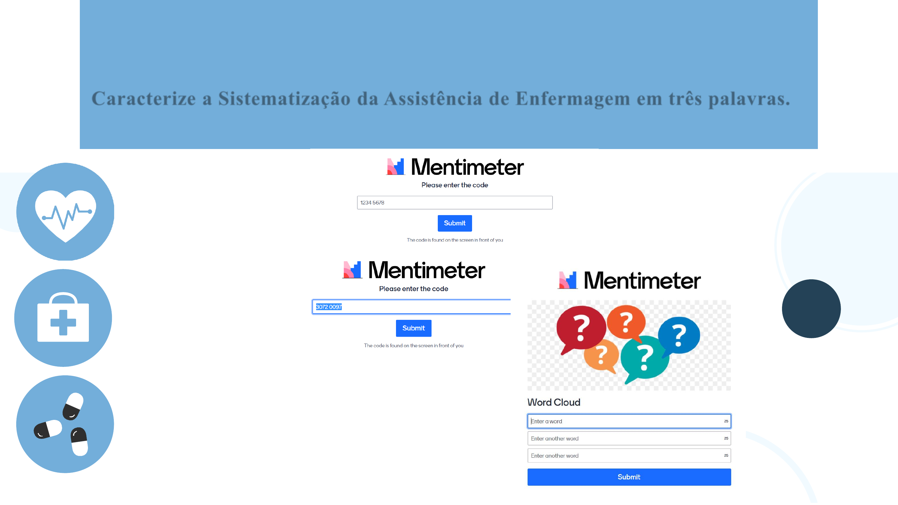 DINÂMICA Caracterize a Sistematização da Assistência de Enfermagem em três palavras. 1:Entre no site: https://www.menti.com/ 2:Digite o código: 30720097 3:Responda a questão SISTEMATIZAÇÃO DA ASSISTÊNCIA DE ENFERMAGEM E O PROCESSO DE ENFERMAGEM UNIVERSIDADE FEDERAL DO PIAUÍ PRÓ-REITORIA DE PESQUISA E PÓS-GRADUAÇÃO CENTRO DE CIÊNCIAS DA SAÚDE PROGRAMA DE PÓS-GRADUAÇÃO EM ENFERMAGEM TERESINA 2021 Rutielle Ferreira Silva Doutoranda em enfermagem pelo PPGEnf-UFPI; Mestre em enfermagem pelo PPGEnf-UFPI; Especialista em Urgência e Emergência Objetivos SISTEMATIZAÇÃO DA ASSISTÊNCIA E O PROCESSO DE ENFERMAGEM ❖ Conceituar SAE e Processo de Enfermagem; ❖ Ressaltar a relevância do Processo de Enfermagem e de sua aplicação; ❖ Apresentar as etapas do Processo de Enfermagem; ❖ Citar os benefícios da utilização do Processo de Enfermagem. Considerações Iniciais O QUE É A ENFERMAGEM? É a mais bela das artes e, considerada como tal, requer pelo menos tão delicado aprendizado quanto a pintura ou a escultura, pois não pode haver comparação entre o trabalho de quem se aplica à tela morta ou ao mármore frio, com o de quem se consagra ao corpo vivo. FLORENCE NIGHTINGALE Considerações Iniciais O QUE É A ENFERMAGEM? Não é simplesmente uma coleção de habilidades específicas, tampouco a enfermeira é uma pessoa apenas treinada para realizar tarefas específicas. POTTER e PERRY Considerações Iniciais O QUE É A ENFERMAGEM? A enfermagem é um processo em que a enfermeira atua para o paciente e com o paciente. LYDIA HALL Considerações Iniciais O QUE É A ENFERMAGEM? Rutielle F Silva O QUE É A ENFERMAGEM? Atenção a saúde Tomada de decisões Comunicação Educação permanente Liderança Administração e gerencia Considerações Iniciais Competências Sistematização da Assistência de Enfermagem (SAE) Sistematização da Assistência de Enfermagem Processo de Enfermagem G U IA D E P R IM E IR O S S O C O R R O S | 2 0 2 0 Sistematização da Assistência de Enfermagem (SAE) Teorias de Enfermagem Processo/ Consulta de enfermagem Resoluções 191/96 311/07 358/09 429/12 Método científico Dimensionamento Instrumentos Taxonomias NANDA, NIC e NOC Protocolos Manuais Impressos SAE RESOLUÇÃO COFEN 358/2009 A SAE organiza o trabalho profissional da enfermagem quanto ao método, pessoal e instrumentos, tornando possível a operacionalização do Processo de Enfermagem. RESOLUÇÃO COFEN 358/2009 Sistemática Dinâmica Humanizada Dirigido a resultados Sistematização da Assistência de Enfermagem (SAE) ASPECTOS LEGAIS QUE DÃO SUSTENTAÇÃO A SAE LEI DO EXERCÍCIO PROFISSIONAL ACREDITAÇÃO HOSPITALAR RESOLUÇÕES DO COFEN Sistematização da Assistência de Enfermagem (SAE) ❑ Lei do Exercício Profissional – Lei nº 7.498/1986 Art. 11 - O Enfermeiro exerce todas as atividades de Enfermagem, cabendo-lhe PRIVATIVAMENTE: ▪ Consulta de Enfermagem; ▪ Prescrição da assistência de Enfermagem; ▪ Cuidados diretos de Enfermagem a pacientes graves com risco de vida. ASPECTOS LEGAIS QUE DÃO SUSTENTAÇÃO A SAE E O PE Sistematização da Assistência de Enfermagem (SAE) ASPECTOS LEGAIS QUE DÃO SUSTENTAÇÃO A SAE E O PE ❑ Programa de Acreditação Hospitalar Criado pela Portaria GM/MS Nº. 1.107, de 14 de junho de 1995, exige dos hospitais uma qualificação baseada em três níveis: Nível 1 (segurança) Contemplam normas mínimas legais do exercício profissional e outras características imprescindíveis para a prestação da assistência médico-hospitalar. (Selo de Acreditação) Nível 2 (segurança e organização) Adotam boas práticas na organização da assistência médico hospitalar, bem como foco central no paciente. (Selo de “Acreditado Pleno”) Nível 3 (segurança, organização e práticas de gestão de qualidade) Instituições que procuram sistematicamente a melhora contínua de seu atendimento e atingem padrões de excelência na prestação da assistência médico hospitalar. (Selo de “Acreditação com excelência”) Sistematização da Assistência de Enfermagem (SAE) ❑ Resoluções COFEN ▪ RESOLUÇÃO COFEN Nº 159/1993 - Dispõe sobre a Consulta de Enfermagem; ▪ RESOLUÇÃO COFEN Nº 564/2017 - Aprova o Código de Ética dos Profissionais de Enfermagem e dá outras providências; ▪ RESOLUÇÃO COFEN Nº 358/2009 - Dispõe sobre a Sistematização da Assistência de Enfermagem e a implementação do Processo de Enfermagem em ambientes, públicos ou privados. ASPECTOS LEGAIS QUE DÃO SUSTENTAÇÃO A SAE E O PE Por que aprender sobre SAE? Sistematização da Assistência de Enfermagem (SAE) ❑ É a primeira ferramenta que você necessita aprender para “pensar como enfermeiro”; ❑ Oferece uma maneira organizada e sistemática de pensar sobre o cuidado de enfermagem; ❑ Fornece uma estrutura padronizada de referência que promove a comunicação efetiva entre os enfermeiros; ❑ Sustenta todos os modelos de cuidado, proporcionando um modelo para o pensamento crítico e formando a base para a tomada de decisão. É um método sistemático e dinâmico de prestar cuidados de enfermagem. Essencial a todas as abordagens de enfermagem, promove o cuidado humanizado, dirigido a resultados e de baixo custo. Impulsiona as enfermeiras a uma avaliação contínua da sua prática (LEFEVRE, 2005) Processo de Enfermagem (PE) É um método sistematizado para avaliar o estado de saúde do cliente, diagnosticar suas necessidades de cuidados, formular um plano de cuidados, implementá-lo e avaliá-lo quanto à sua efetividade. (NANDA, 2001) Fornece estrutura para a tomada de decisão durante a assistência de enfermagem, tornando-a mais científica e menos intuitiva.” (JESUS, 2002) É um método utilizado para implantar, na prática profissional, uma teoria de enfermagem (TANNURE; PINHEIRO, 2010). É um Instrumento metodológico que vai orientar o cuidado profissional de Enfermagem e a documentação da prática profissional. Pr