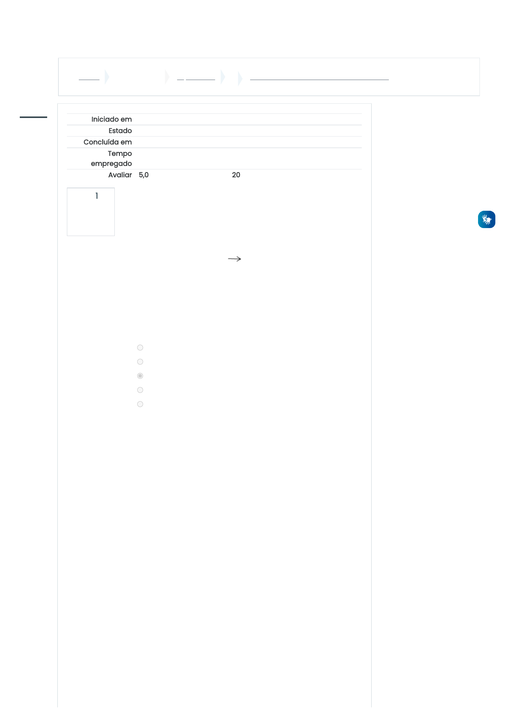 02/11/2021 12:33 Módulo III - Atividade 2 - Criar um Fórum: Revisão da tentativa https://escolavirtual.educacao.go.gov.br/mod/quiz/review.php?attempt=1494828&cmid=80512 1/4 Painel Meus cursos mp-ead_2 Módulo III - Atividade 2 - Criar um Fórum Questão 1 Incorreto Atingiu 0,0 de 5,0 Iniciado em terça, 2 Nov 2021, 12:32 Estado Finalizada Concluída em terça, 2 Nov 2021, 12:33 Tempo empregado 25 segundos Avaliar 5,0 de um máximo de 25,0(20%) Sobre a configuração do Fórum, analise as afirmativas a seguir e marque (V) verdadeiro ou (F) falso. I – No campo “Tipo de Fórum” a opção a ser selecionada é “Uma única discussão simples”. ( ) II – No campo “Avaliações” “Tipo agregado”, a opção a ser selecionada é “Avaliação máxima”. ( ) III – Em “Nota máxima” deve ser inserida uma nota para o cursista que participou no Fórum. () IV – Ao configurar o Fórum é possível também definir datas inicial e final para as postagens dos cursistas. ( ) Escolha uma opção: a. F, F, F, F. b. V, V, V, V. c. V, F, V, F. d. F,V, V, F. e. V, V, V, F. Sua resposta está incorreta. A resposta correta é: V, V, V, V. https://escolavirtual.educacao.go.gov.br/my/ https://escolavirtual.educacao.go.gov.br/course/view.php?id=1004 https://escolavirtual.educacao.go.gov.br/course/view.php?id=1004#section-0 https://escolavirtual.educacao.go.gov.br/mod/quiz/view.php?id=80512 javascript:void(0); https://escolavirtual.educacao.go.gov.br/user/index.php?id=1004 https://escolavirtual.educacao.go.gov.br/grade/report/index.php?id=1004 https://escolavirtual.educacao.go.gov.br/my/ https://escolavirtual.educacao.go.gov.br/?redirect=0 https://escolavirtual.educacao.go.gov.br/calendar/view.php?view=month&course=1004 javascript:void(0); https://escolavirtual.educacao.go.gov.br/user/files.php 02/11/2021 12:33 Módulo III - Atividade 2 - Criar um Fórum: Revisão da tentativa https://escolavirtual.educacao.go.gov.br/mod/quiz/review.php?attempt=1494828&cmid=80512 2/4 Questão 2 Incorreto Atingiu 0,0 de 5,0 Questão 3 Incorreto Atingiu 0,0 de 5,0 Após acionar o botão de “Menu de ações” e clicar em “Ativar edição” , enumere os próximos passos para criar um Fórum no curso. Comece clicando em: ( ) Adicionar uma atividade ou recurso. ( ) Adicionar. ( ) Atividades – Fórum ( ) Bloco “Atividade 2 – Criação de Fórum”. Escolha uma opção: a. 4, 2, 3, 1. b. 1, 3, 2, 4. c. 2, 4, 1, 3. d. 2, 1, 3, 4. e. 2, 4, 3, 1. Sua resposta está incorreta. A resposta correta é: 2, 4, 3, 1. Qual o objetivo do Fórum em um curso? Escolha uma opção: a. Ser um espaço social onde os participantes possam dialogar, ter discussões sobre o conteúdo do curso ou qualquer outro assunto, durante um longo período de tempo. b. Ser um espaço onde somente os tutores do curso possam interagir e trocar informações sobre os cursistas, cronograma de atividades, planejamentos etc. c. Ser um espaço onde são postadas apenas as informações sobre cronogramas de entrega de atividades, agendamento de tarefas, chats, lives etc. d. Todas as alternativas são corretas. e. Ser um espaço onde apenas os cursistas compartilham suas opiniões, dúvidas e dificuldades sem interferência do tutor. Sua resposta está incorreta. A resposta correta é: Ser um espaço social onde os participantes possam dialogar, ter discussões sobre o conteúdo do curso ou qualquer outro assunto, durante um longo período de tempo. javascript:void(0); https://escolavirtual.educacao.go.gov.br/user/index.php?id=1004 https://escolavirtual.educacao.go.gov.br/grade/report/index.php?id=1004 https://escolavirtual.educacao.go.gov.br/my/ https://escolavirtual.educacao.go.gov.br/?redirect=0 https://escolavirtual.educacao.go.gov.br/calendar/view.php?view=month&course=1004 javascript:void(0); https://escolavirtual.educacao.go.gov.br/user/files.php 02/11/2021 12:33 Módulo III - Atividade 2 - Criar um Fórum: Revisão da tentativa https://escolavirtual.educacao.go.gov.br/mod/quiz/review.php?attempt=1494828&cmid=80512 3/4 Questão 4 Incorreto Atingiu 0,0 de 5,0 Questão 5 Correto Atingiu 5,0 de 5,0 Na “Guia geral” do Fórum o que pode ser colocado no campo “Descrição”? Escolha uma opção: a. Deve ser colocado o nome do Fórum, normalmente coloque seu nome. b. Deve ser escrito um texto de boas vindas aos cursistas. c. Nenhuma das alternativas é correta. d. Não é necessário escrever nada, pois o Fórum é autoexplicativo. e. Deve ser colocada uma proposto para reflexão e discussão por parte dos cursistas. Sua resposta está incorreta. A resposta correta é: Deve ser colocada uma proposto para reflexão e discussão por parte dos cursistas. Referente às características do Fórum, associe a primeira coluna com a segunda. Coluna I (1) Discussão simples (2) Um novo tópico (3) Fórum geral (4) Perguntas e Respostas Coluna II ( ) É um fórum aberto, onde todos os participantes podem iniciar um novo tópico de discussão quando quiserem. ( ) Cada participante pode abrir apenas um novo tópico de discussão, mas todos podem responder livremente as mensagens, sem limites de quantidades. Este formato é usado, por exemplo, nas atividades em que cada participante apresenta um tema a ser discutido e atua como moderador da discussão deste tema. ( ) É um único tópico em uma única página. Normalmente é usado para organizar discussões breves com foco em um tema preciso. ( ) Neste fórum um estudante pode ler as mensagens de outros somente após a publicação de sua mensagem. Depois disto pode também responder às mensagens do grupo. Isto permite que a primeira mensagem de cada estudante seja original e independente. Escolha uma opção: a. 1, 2, 4, 3 b. 4, 3, 2, 1. c. 3, 2, 1, 4. d. 1, 2, 3, 4. e. 2, 3, 1, 4. Sua resposta está correta. A resposta correta é: 3, 2, 1, 4. javascript:void(0); https://escolavirtual.educacao.go.gov.br/user/index.php?id=1004 https://escolavirtual.educacao.go.gov.br/grade/report/index.php?id=1004 