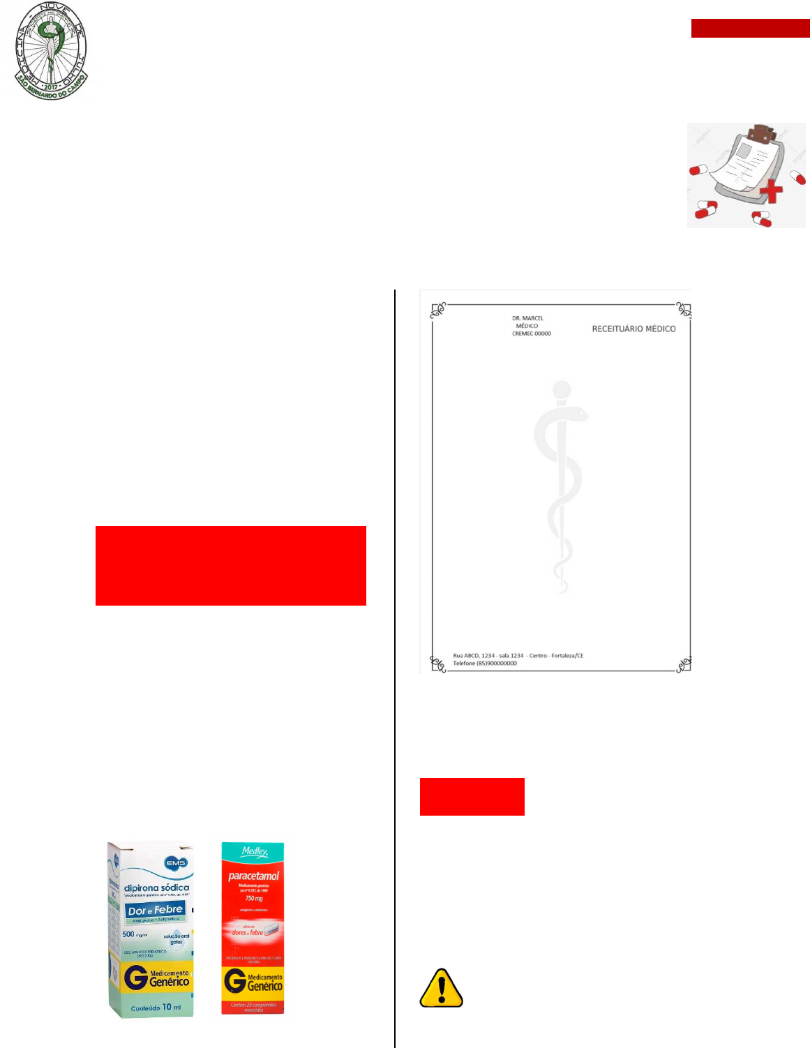 Maria Clara Zanin UNIVERSIDADE NOVE DE JULHO 1 FARMACOLOGIA 2 [FARMACOLOGIA] receituario Prescrição ↳ prescrição = dar para o paciente o medicamento e orientá-lo quanto ao seu uso • receituário sempre a tinta, nunca a lápis • receita deve ser escrita em português e por extenso, não pode abreviar e com letra legível ☑ dose: 1 comprimido de 500 mg ☑ dosagem/concentração: 500 mg/ml (equivale à 20 gotas) ☑ frequência: 6/6 horas por 3 dias ☑ posologia: dose + concentração + frequência PSICOTRÓPICOS OU PSICOFÁRMACOS = fármacos de controle especial drogas medicamentosas que atuam no SNC e produzem alterações de comportamento, humor e cognição → são drogas que casam dependência → são de tarja preta ou tarja vermelha com retenção de receita nas gôndolas só ficam medicamentos sem tarja! 1 comprimido de 500 mg de dipirona/paracetamol de 6/6 horas por 3 dias Psicotrópicos: Maria Clara Zanin UNIVERSIDADE NOVE DE JULHO 2 FARMACOLOGIA 2 Notificação de Receita ✓ é um documento padronizado, acompanhado da receita, com a função de notificar a prescrição de medicamentos Tipos de Receita RECEITA AMARELA (A): entorpecentes (morfina) e psicotrópicos RECEITA AZUL (B): psicotrópicos e substâncias anorexígenas (anfetaminas) RECEITA BRANCA C (receita especial em duas vias): outras substâncias sujeitas a controle especial, como antibióticos, antivirais, anabolizantes RECEITA BRANCA ESPECIAL (C): substâncias retinóicas (roacutan) Receita Amarela ↳ apenas 1 medicamento por receita ↳ validade de 30 dias ↳ limitada à 05 ampolas por medicamento ↳ deve conter a quantidade certa de medicamento para 30 dias de uso Receita Azul ↳ validade de 30 dias ↳ limitada à 05 ampolas por medicamento ↳ deve conter a quantidade certa de medicamento para 30 dias de uso Maria Clara Zanin UNIVERSIDADE NOVE DE JULHO 3 FARMACOLOGIA 2 ANVISA: Proibida a venda dos seguintes medicamentos caso estiverem acima da dose diária recomendada: ① femproporex: dose de 50mg/dia ② fentermina: dose de 60mg/dia ③ anfepramona: dose de 120mg/dia ④ mazindol: dose de 3mg/dia para prescrição dos medicamentos acima citados, deve-se estar acompanhado do termo de responsabilidade do prescritor! Receita Especial (C) ↳ validade de 30 dias ↳ limitada à 05 ampolas por medicamento ↳ deve conter a quantidade certa de medicamento para 30 dias de uso ↳ possui símbolo indicativo ↳ deve fornecer o termo de consentimento de risco e termo de consentimento pós- informação Maria Clara Zanin UNIVERSIDADE NOVE DE JULHO 4 FARMACOLOGIA 2 Receita Especial em 2 Vias ↳ 1ª via é sempre para a farmácia e a 2ª via para o paciente ↳ até 3 medicamentos é permitido a prescrição por receita ↳ validade: Maria Clara Zanin UNIVERSIDADE NOVE DE JULHO 5 FARMACOLOGIA 2 o antibióticos: 10 dias o outros fármacos: 30 dias