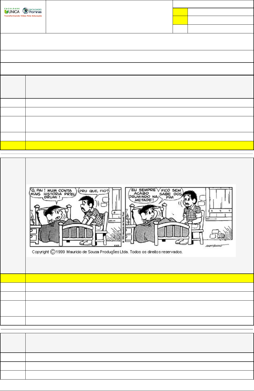 Pincel Atômico - 03/06/2023 11:15:05 1/3 CAROLINE TEIXEIRA CRUZ Exercício Caminho do Conhecimento - Etapa 2 (15705) Atividade finalizada em 16/05/2023 20:20:11 (883409 / 1) LEGENDA Resposta correta na questão # Resposta correta - Questão Anulada X Resposta selecionada pelo Aluno Disciplina: PRÁTICA PEDAGÓGICA INTERDISCIPLINAR: FUNDAMENTOS E METODOLOGIA DE ENSINO DE LÍNGUA PORTUGUESA E MATEMÁTICA [813456] - Avaliação com 8 questões, com o peso total de 1,67 pontos [capítulos - 1] Turma: Segunda Graduação: Segunda Graduação 6 meses - Licenciatura em Pedagogia - Grupo: FPD-FEV2022 - SGegu0A160223 [84693] Aluno(a): 91432750 - CAROLINE TEIXEIRA CRUZ - Respondeu 8 questões corretas, obtendo um total de 1,67 pontos como nota [353938_391 30] Questão 001 A linguística refere à diversidade como um respeito às todas as línguas existentes e promove a preservação daquelas que se encontram em vias de extinção por falta de falantes. Marque a alternativa que se refere à diversidade Linguísticas. variação linguística histórica variação linguística geográfica. A diversidade linguística é uma realidade, por isso precisamos discutir sobre o respeito, a aceitação e a comunicação entre elas. variação linguística social/cultural. X Todas as alternativas estão corretas. [353936_391 85] Questão 002 Vivemos em um país onde a diversidade linguística se faz presente, pois o Brasil abriga várias regiões e com variação no dialeto português; na verdade há uma riqueza cultural e linguística que se faz interagir com tudo e com todos. A linguagem utilizada na tirinha X sofre uma variação linguística por conta de diferenças de lugar. sofre uma variação linguística por conta de diferenças de classe social. é formal, pois pai e filho apresentam certa intimidade. apresenta o dialeto caipira, como em “drumi” “fio”. Do ponto de vista linguístico essa fala é considerada errada e não é aceita. sofre uma variação linguística por conta de diferenças históricas. [353936_391 31] Questão 003 As primeiras teorias sobre o desenvolvimento da linguagem foram baseadas em: “Teorias Construtivistas”. “Teoria do Reforço”. Todas as alternativas. Pincel Atômico - 03/06/2023 11:15:05 2/3 X “Teorias ambientais” ou Teoria da Aprendizagem. “Teorias Nativistas”. [353936_391 79] Questão 004 Relacione os conceitos de língua (I) e linguagem (II) às definições a seguir. ( ) Forma de expressão que uniu o pensamento do significado e o significante. ( ) Sistema de comunicação de uma comunidade linguística. ( ) Expressão do pensamento pela escrita ou outros sinais. ( ) Faculdade que permite ao homem se comunicar com o mundo. Assinale a alternativa que corresponde à sequência correta de conhecimento dos parênteses. II, II, I, I. I, II, I, II. X II, I, II, II. I, I, I, II. II, I, I, II. [353938_391 34] Questão 005 A distância entre o que a criança já se sabe e o que se pode saber com alguma assistência é denominada por Vygotsky de: X Zona de desenvolvimento proximal. Zona de desenvolvimento real. Zona de desenvolvimento potencial. Zona de desenvolvimento ideal. Zona de desenvolvimento exponencial. [353936_391 82] Questão 006 As ideias de Piaget foram de grande relevância qualitativa na compreensão do desenvolvimento humano, na medida em que é evidenciada uma tentativa de integração entre o sujeito e o mundo que o circunda. Após a afirmação, marque a alternativa que demonstra claramente a teoria de Piaget. A linguagem tem um papel essencial na construção do pensamento, na interação em os grupos sociais, pois possibilita a concepção e a organização real. Para ele, a criança depende de signos externos para significar as ações direcionadas aos objetos. E para entendermos signo é um ser meio inventado pelos homens para representar-se a realidade, material ou imaterial. A extrema complexidade da tarefa que a criança deve realizar e as aparentes semelhanças nos passos e nos estágios do desenvolvimento da linguagem das crianças entre línguas e entre todas as crianças. A função simbólica pode ser internalizada e estabelecer uma forma de discurso interior, que terá avanços no decorrer do processo da linguagem X A função da linguagem está no pensamento e transmite ao indivíduo um sistema todo preparado de noções classificações, de relações, enfim, um potencial inesgotável créditos que se reconstroem em cada indivíduo, sustentado por modelos multissecular já elaborado por gerações anteriores. [353936_391 80] Questão 007 Explicar como a criança desenvolve a habilidade da linguagem, como aprende a língua materna é um desafio para a psicologia do desenvolvimento. Dentre as diversas teorias, uma é baseada em Teorias Ambientais. Marque a alternativa que representa uma característica da “Teoria Ambiental”. Pincel Atômico - 03/06/2023 11:15:05 3/3 Apoiam suas evidências em dois fenômenos: “A extrema complexidade da tarefa que a criança deve realizar e as aparentes semelhanças nos passos e nos estágios do desenvolvimento da linguagem das crianças entre línguas e entre todas as crianças. X Também conhecida como “Teoria da Aprendizagem”, visto que se dizia que a criança aprendia através de imitação, porém a imitação não era uma base sólida, já que não se pode explicar toda a aquisição da linguagem. Tem como característica o papel fundamental dos pais no desenvolvimento linguístico da criança, pois os mesmos moldam através dos esforços sistemáticos e gradualmente recompensando aproximações cada vez melhores da fala adulta. Todas as alternativas são características da Teorias Ambientais. O desenvolvimento cognitivo e da linguagem são processos interdependentes, e a pesquisa na tradição construtivista busca ligações entre avanços nos dois domínios. [353937_391 33] Questão 008 A relação entre professor e aluno, numa perspectiva interacionista, considera que: X 