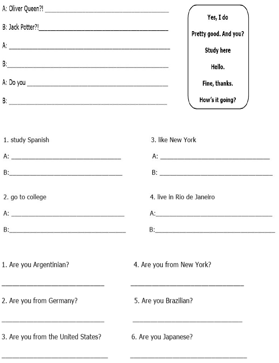 Escola Municipal Professora Noêmia do Rosário Student:_______________________________________________ Teacher: _______________ Class:__________________ EVALUATIVE ACTIVITY A) Complete. B) Make questions and answer than. C) Answer. D) Complete with A or AN. E) Unscramble and classify. F) Number the sentences. G) Make questions and answer than. 1. We / need more orange juice A:__________________________________________________ B:__________________________________________________ 2. You (plural) / eat hamburgers and fries A:__________________________________________________ B:__________________________________________________ 3. They / need a sandwich A:__________________________________________________ B:__________________________________________________ H) Choose and answer. Do / Does you eat fish? ______________________________________________________ Do / Does Oliver eat rice and beans every day? ______________________________________________________ Do / Does Paul and Kyle like salad? ______________________________________________________ Do / Does she like chiken? ______________________________________________________ Do / Does they eat sushi? ______________________________________________________ Do / Does fish have a lot of calories? ______________________________________________________ I) Word search. J) Write the numbers K) Order food at a fast-food restaurant. Use different words and expressions. ____________________________________________________________________________________________________________________________________________________________________________________________________________________________________________________________________________________________________________________________________________________________________________ L) Greet a friend. Use different expressions. ________________________________________________________________________________________________________________________________________________________________________________________________________________________________________________________________________________________________________________________________________________________________________________________________________________________________