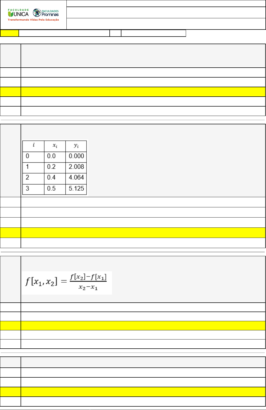 002 Determine a partir das informações existentes na tabela, determine o polinômio