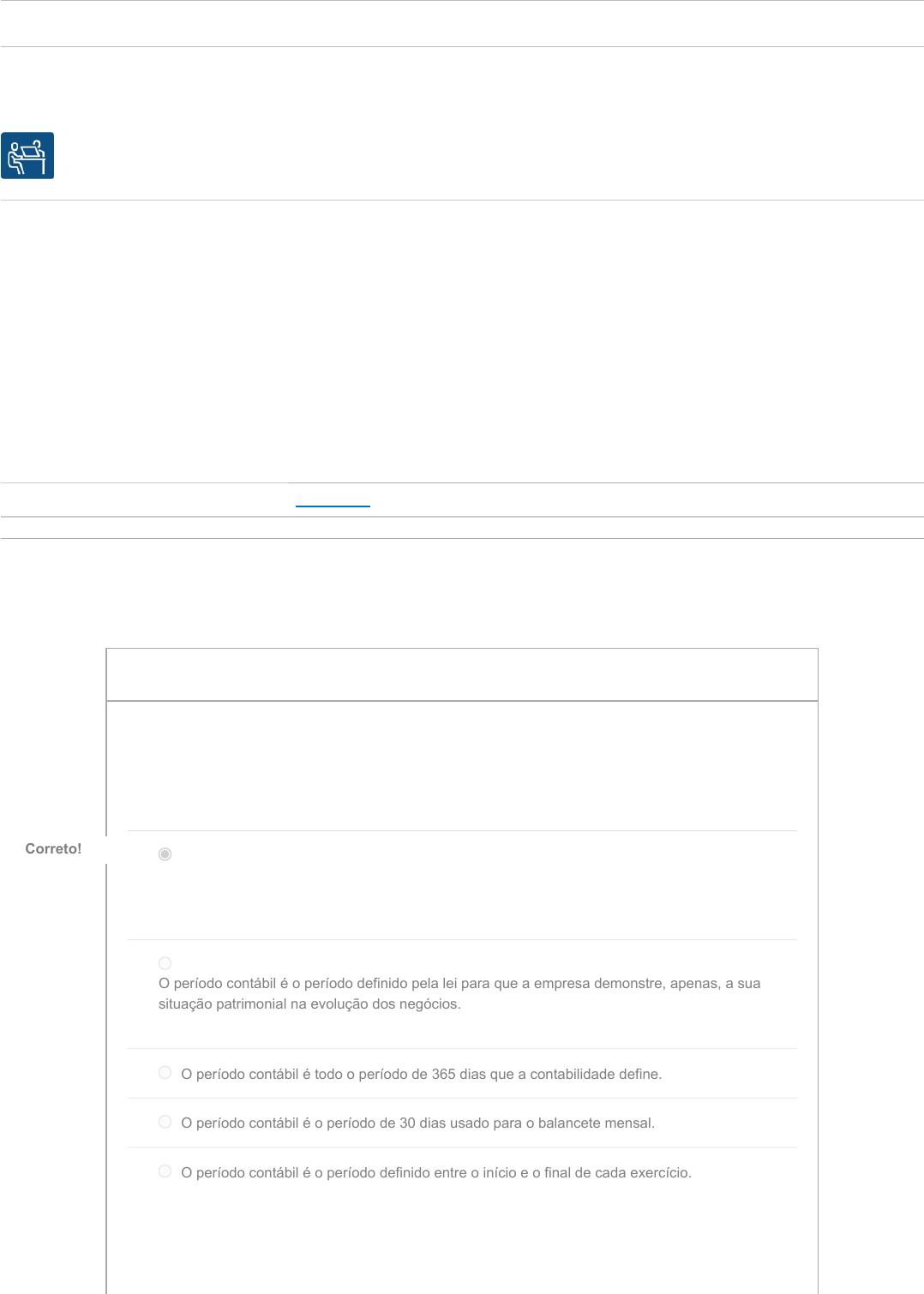 26/06/23, 14:29 Atividade Avaliativa Substitutiva: CONTABILIDADE SOCIETÁRIA E GERENCIAL (2023/14/0028_202314B) https://online.instructure.com/courses/3754/quizzes/82775 1/9 Atividade Avaliativa Substitutiva Entrega Sem prazo Pontos 100 Perguntas 10 Limite de tempo 120 Minutos Instruções Histórico de tentativas Tentativa Tempo Pontuação MAIS RECENTE Tentativa 1 86 minutos 30 de 100 Pontuação deste teste: 30 de 100 Enviado 26 jun em 12:07 Esta tentativa levou 86 minutos. Atividade Avaliativa Substitutiva Agora faça este teste para verificar sua compreensão sobre o que foi aprendido. Você verá os resultados no final do período de realização do teste. Estude cuidadosamente as explicações para qualquer pergunta que você responda incorretamente. Esse feedback ajudará a redirecioná-lo no início do seu aprendizado se um conceito não estiver claro. 10 / 10 ptsPergunta 1 A apuração dos resultados financeiros e contábeis das organizações é uma atividade fundamental que envolve o gerenciamento e o controle dos recursos para distintos períodos de tempo. Dessa maneira, como devemos interpretar o período contábil? O período contábil é o período escolhido para que a contabilidade demonstre a situação patrimonial e financeira na evolução dos negócios da empresa. Correto!Correto! O período contábil é o período definido pela lei para que a empresa demonstre, apenas, a sua situação patrimonial na evolução dos negócios. O período contábil é todo o período de 365 dias que a contabilidade define. O período contábil é o período de 30 dias usado para o balancete mensal. O período contábil é o período definido entre o início e o final de cada exercício. https://online.instructure.com/courses/3754/quizzes/82775/history?version=1 26/06/23, 14:29 Atividade Avaliativa Substitutiva: CONTABILIDADE SOCIETÁRIA E GERENCIAL (2023/14/0028_202314B) https://online.instructure.com/courses/3754/quizzes/82775 2/9 A afirmativa está correta, pois a contabilidade registra e resume todas as mudanças no patrimônio líquido que ocorrem durante o período escolhido e apresenta o resultado obtido. O período contábil é o período escolhido para que a contabilidade mostre a situação patrimonial e financeira na evolução dos negócios da empresa. O período de um ano é denominado exercício social. Para finalidades internas, as informações dos resultados devem ser mostradas mês a mês, a fim de facilitar o trabalho de gestão dos negócios, mas, para fins externos, o período dependerá das exigências dos usuários externos — mas o tempo máximo legal é de um ano. 0 / 10 ptsPergunta 2 Considerando que os ativos variam de valor ao longo do tempo em função da inflação, taxa de câmbio e outras oscilações monetárias, é preciso ajustar, a valor presente, determinados ativos ou valores, em algumas circunstâncias. Nesse sentido, qual é o procedimento adequado para o cálculo de ajuste a valor presente, em conformidade com o pronunciamento CPC 12, intitulado “Ajuste a Valor Presente”? O ajuste deverá ser calculado mediante a aplicação de uma taxa nominal de juros sobre os ativos. Resposta corretaResposta correta A taxa de juros aplicada para cálculo deverá ser uma taxa efetiva, mas, apenas, após os efeitos dos impostos. O ajuste será feito mediante criação de conta retificadora (juros a apropriar ou encargos/receitas financeiras a transcorrer) para que não se percam os valores originais. O ajuste a valor presente deverá ser aplicado de forma a contemplar a soma de todos os ativos atualizados em uma data única, a ser determinada pela empresa. Você respondeuVocê respondeu De acordo com o CPC 12, apenas as empresas com ações de capital aberto deverão efetuar o ajuste a valor presente de seus ativos. A alternativa está incorreta, pois esse procedimento deve ser aplicado no reconhecimento inicial de ativos e passivos, e a quantificação do ajuste a valor presente deve ser realizada em base exponencial pró-rata, a partir da origem de cada transação, sendo os seus efeitos apropriados nas contas a que se vinculam. 26/06/23, 14:29 Atividade Avaliativa Substitutiva: CONTABILIDADE SOCIETÁRIA E GERENCIAL (2023/14/0028_202314B) https://online.instructure.com/courses/3754/quizzes/82775 3/9 0 / 10 ptsPergunta 3 No patrimônio líquido das organizações, temos algumas contas, dentre elas, as reservas com finalidades específicas, dependendo da sua utilidade e tratamento contábil dentro da organização. Como podemos diferenciar a reserva para contingências da provisão para riscos fiscais e outras contingências? A provisão se destina a dar cobertura a perdas ou despesas já incorridas, mas ainda não desembolsadas que, dentro do regime de competência, devem ser lançadas no resultado, na constituição dessa provisão. Já a reserva para contingências representa uma expectativa de perdas ou prejuízos ainda não incorridos. Você respondeuVocê respondeu A provisão se destina a dar cobertura a perdas ou despesas ainda não incorridas que, dentro do regime de competência, devem ser lançadas no resultado, na constituição dessa provisão. Já a reserva para contingências representa uma expectativa de perdas ou prejuízos incorridos. Resposta corretaResposta correta A provisão se destina a gastos ainda não incorridos que, dentro do regime de competência, devem ser lançados no resultado, na constituição dessa provisão. Já a reserva para contingências representa os gastos incorridos. A provisão representa uma perda, enquanto a reserva para contingências representa uma conta de patrimônio líquido. A provisão se destina a dar cobertura a possíveis passivos. Já a reserva para contingências representa uma expectativa de perdas ou prejuízos ainda não incorridos. As demais alternativas estão incorretas, porque a diferença se refere ao fato de a inocorrência ter acontecido ou não quanto às perdas ou às despesas, em detrim