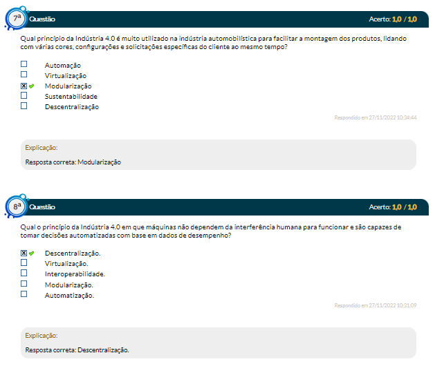 Qual principio da Indústria 4.0 muito utilizado na indústria para facilitar a montagem dos lidando com configurações e solicitações do cliente ao mesmo tempo? Automação Virtualização Modularização Sustentabilidade Descentralização