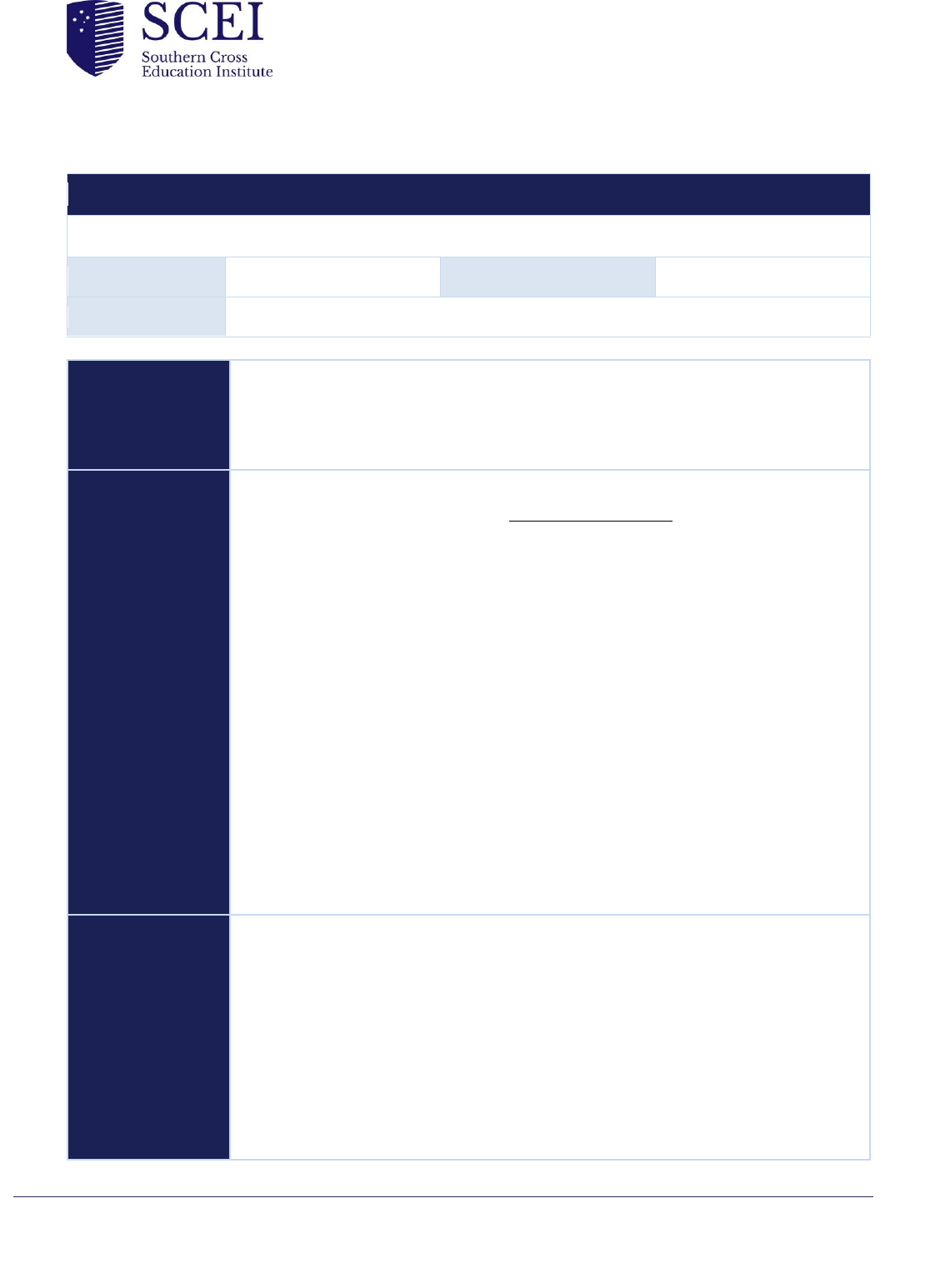 CHCECE032 Nurture babies and toddlers Student Assessment CRICOS Provider Code 02934D RTO Number 121952 Page 9 of 77 CHCECE032 Nurture babies and toddlers CHC30121 Certificate III in Early Childhood Education and Care Student Assessment - Version 1.1 May 2022 ASSESSMENT TASK 1 – QUESTIONING Conditions of Assessment The student will have access to the relevant learning resources, listed under the learning resource of this document, for this assessment. Questions will be completed in the student’s own time. Responses to the questions must be typed. Student Instructions for completion This task requires you to complete a written response knowledge assessment. You are required to answer all questions correctly in Assessment Task 1 – Questioning. The questions within this assessment relate directly to the integrated knowledge contained within the unit of competencies and are fundamental to the student’s knowledge and performance evidence. Use of correct grammar and spelling is required to demonstrate foundation skills, so please ensure to proofread your answers prior to submission. You may have up to three (3) attempts to receive a Satisfactory outcome for this assessment. Failure to receive the Satisfactory outcome after the three (3) attempts, the result for the unit will be deemed Not Yet Satisfactory, and you must re-enroll and repeat the unit to be eligible to be assessed again. APA referencing must be used where original sources have been used. Do not copy and paste text from any of the online sources. SCEI has a strict plagiarism policy and students who are found guilty of plagiarism, will be penalised. The written assessment standards (8.2) outlined in the PP77 Assessment policy and procedure apply to this assessment task. Explanation of the common command words used in the Assessment Task List / identify / state / give/provide = present in brief form Outline = provide the main facts about something, more than naming, but not a detailed description Describe = Provide full details of characteristics and/or features, more needed than an outline or than a list Explain / Discuss = Provide a reasonable argument to discuss cause and effect and/or make links between things clear in your own words Analyse = Identify parts, the relationship between them, and their relationships with the whole. Draw out and relate implications Demonstrate = Present, show or illustrate through example or action Student Details ☐ I have read and understand unit information and assessment instruction Student ID Date Student Name CHCECE032 Nurture babies and toddlers Student Assessment CRICOS Provider Code 02934D RTO Number 121952 Page 10 of 77 CHCECE032 Nurture babies and toddlers CHC30121 Certificate III in Early Childhood Education and Care Student Assessment - Version 1.1 May 2022 Assessment Procedure You will be provided with a briefing on the assessment and the opportunity to seek clarification on the conduct of the assessment. You may seek clarification at any point in time during the assessment task. If you feel you need more time to complete the assessment, you must negotiate the time needed with the assessor prior to the assessment due date. Following the assessment, your responses will be assessed and marked as appropriate. Where responses have been assessed in one (1) or more questions as unsatisfactory, students will be required to resubmit these questions. For more information, detailed information can be found in PP77 Assessment Policy and Procedure Due Date 14 days after the unit completion date as outlined in the PP77 Assessment Policy and Procedure. 1. According to Australia's Physical Activity and Sedentary Behaviour Guidelines and the Australian 24-Hour Movement Guidelines, what is the recommendation for physical activities for toddlers during a 24-hour period? Give two (2) examples. 2. Research the National Quality Standard and complete the following: a. Summarise in your own words the main objectives of Quality Area 2. CHCECE032 Nurture babies and toddlers Student Assessment CRICOS Provider Code 02934D RTO Number 121952 Page 11 of 77 CHCECE032 Nurture babies and toddlers CHC30121 Certificate III in Early Childhood Education and Care Student Assessment - Version 1.1 May 2022 b. List a minimum of three (3) policies and procedures that are relevant to Quality Area 2. c. Summarise in your own words the main objectives of Quality Area 5? d. In Quality Area 5, there are two standards (5.1 and 5.2). In your own words describe their main requirements, and provide a policy for each of two standards to ensure the standards requirements are achieved. Standard 5.1 Standard 5.2 How those standards could be achieved? ● Standard 5.1 ● Standard 5.2 CHCECE032 Nurture babies and toddlers Student Assessment CRICOS Provider Code 02934D RTO Number 121952 Page 12 of 77 CHCECE032 Nurture babies and toddlers CHC30121 Certificate III in Early Childhood Education and Care Student Assessment - Version 1.1 May 2022 3. Outline the requirements that must be followed to ensure that children’s bedding is clean and does not carry infection risks. 4. Outline the requirements in preparing and storing formula powdered milk in reference to the Australian Government Infant Feeding Guidelines. Preparing Storing Heating prepared bottles CHCECE032 Nurture babies and toddlers Student Assessment CRICOS Provider Code 02934D RTO Number 121952 Page 13 of 77 CHCECE032 Nurture babies and toddlers CHC30121 Certificate III in Early Childhood Education and Care Student Assessment - Version 1.1 May 2022 5. Research the current National Health and Medical Research Council ‘Staying Healthy: Preventing infectious diseases in early childhood education and care services’, and define the following concepts using an example. Airborne transmission Direct contact Vaccine 6. Provide a description of stranger anxiety, separation anxiety, secure attachments and attachment theory in the following table. Take the links between attachment a