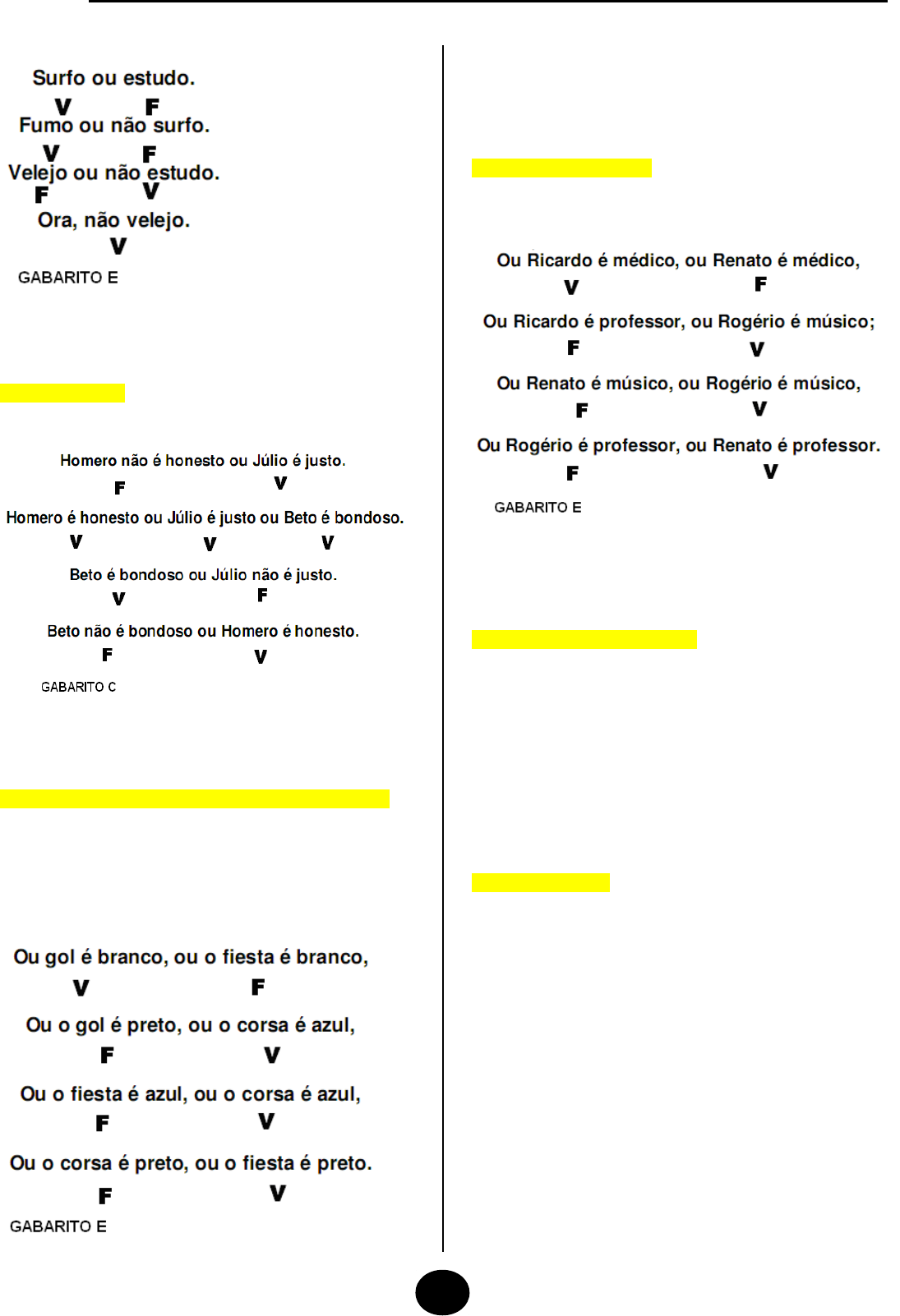 a) Beto não é bondoso, Homero é honesto, Júlio não é justo;