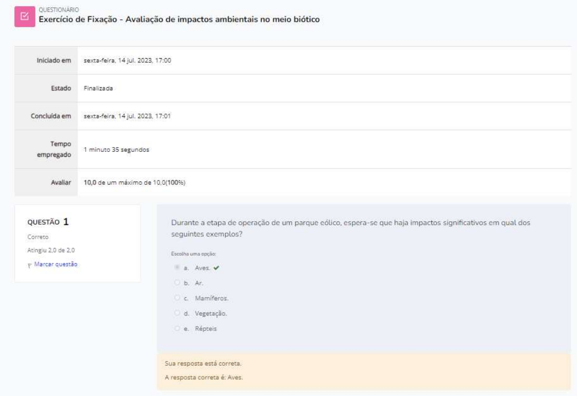 Exercício de Fixação - Avaliação de impactos ambientais no meio biótico