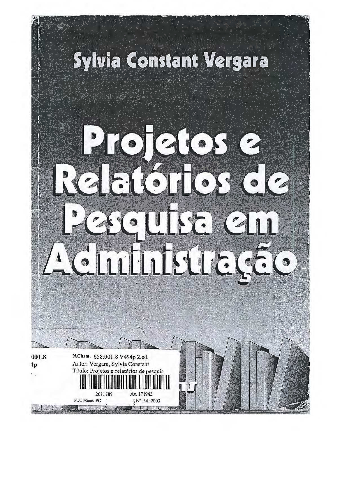 VERGARÁ, Sylvia ~Const~nt. Sugest~o pará estitltnrÚ~ d~ u~rt p;ojeto ele pesquisa.' Ca-