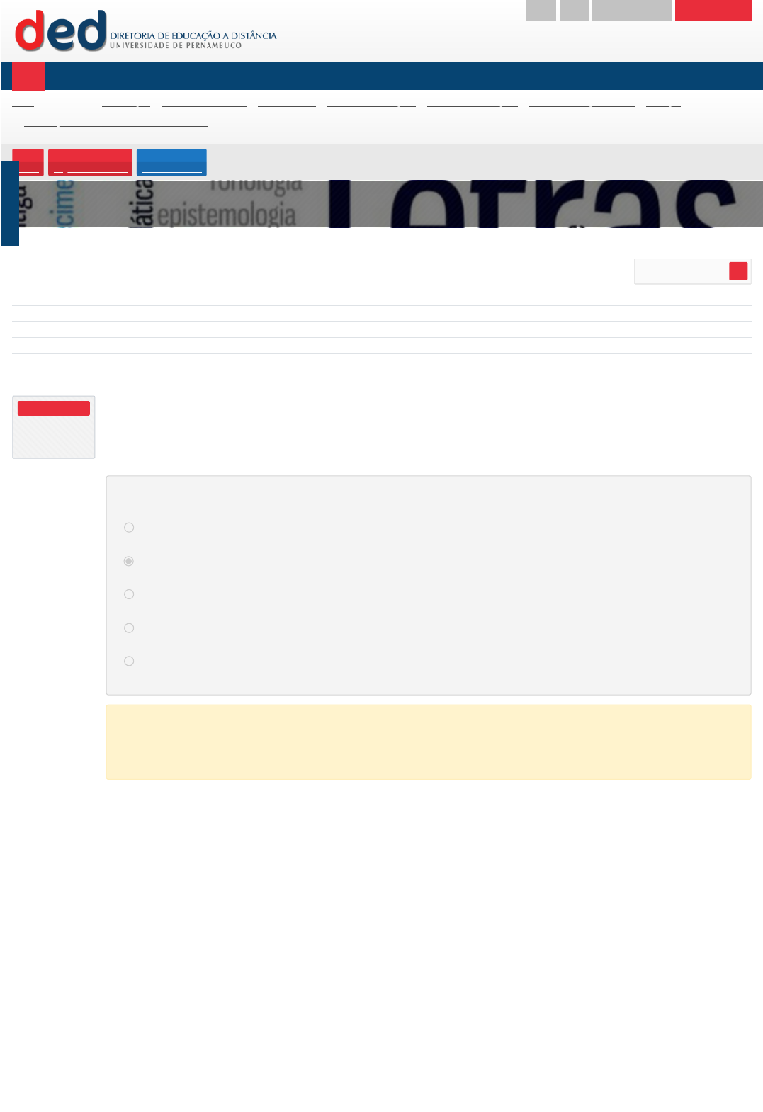 17/07/2023, 14:33 1ª Avaliação Virtual - LÍNGUA LATINA - 21/05/2023: Revisão da tentativa https://novomoodle.upe.br/mod/quiz/review.php?attempt=97106&cmid=21286 1/4 UPE Cursos Polos Pesquisas Editais Siga Biblioteca Painel Meus cursos GRADUAÇÃO CAMPUS GARANHUNS CURSO LETRAS SEMESTRE 2023.1 | LET 1° PERÍODO 2023.1 | LET LÍNGUA LATINA | 2023.1 LET Avaliação 1ª Avaliação Virtual - LÍNGUA LATINA - 21/05/2023 Painel Página inicial do site Todos os cursos LÍNGUA LATINA | 2023.1 LET Questão 1 Incorreto Atingiu 0,00 de 0,55 Course dashboard Se reescrevêssemos “Magistra saepe fabulam narrat puellae”, no plural, teríamos: a. Magistris saepe fabulamas narrant puellarum b. Magistras saepe fabulas narrant puellas c. Magistras saepe fabulis narrat puellis d. Magistrae saepe fabulae narrant puellis e. Magistrae saepe fabulas narrat puellis Sua resposta está incorreta. A resposta correta é: Magistrae saepe fabulas narrat puellis. Iniciado em Sunday, 21 May 2023, 13:40 Estado Finalizada Concluída em Sunday, 21 May 2023, 14:54 Tempo empregado 1 hora 14 minutos Avaliar 3,30 de um máximo de 5,50(60%) Buscar cursos RAFAEL JOSÉ Co ur se d as hb oa rd https://novomoodle.upe.br/course/view.php?id=823 https://novomoodle.upe.br/ https://novomoodle.upe.br/ http://www.upe.br/ https://novomoodle.upe.br/local/staticpage/view.php?page=EDITAIS https://www.siga.upe.br/upe/index.jsp https://novomoodle.upe.br/my/ https://novomoodle.upe.br/course/index.php?categoryid=19 https://novomoodle.upe.br/course/index.php?categoryid=26 https://novomoodle.upe.br/course/index.php?categoryid=46 https://novomoodle.upe.br/course/index.php?categoryid=165 https://novomoodle.upe.br/course/index.php?categoryid=166 https://novomoodle.upe.br/course/view.php?id=823 https://novomoodle.upe.br/course/view.php?id=823§ion=7 https://novomoodle.upe.br/mod/quiz/view.php?id=21286 https://novomoodle.upe.br/my https://novomoodle.upe.br/?redirect=0 https://novomoodle.upe.br/course/ 17/07/2023, 14:33 1ª Avaliação Virtual - LÍNGUA LATINA - 21/05/2023: Revisão da tentativa https://novomoodle.upe.br/mod/quiz/review.php?attempt=97106&cmid=21286 2/4 Questão 2 Incorreto Atingiu 0,00 de 0,55 Questão 3 Incorreto Atingiu 0,00 de 0,55 Quanto ao latim popular ou “vulgar”, é correto a�rmar: a. Não deixou registro algum, tendo se perdido completamente. b. Derivou-se do latim clássico, sendo uma variação dele. c. Dele restam apenas algumas inscrições e o Appendix Probi, que contém o que os romanos consideravam erros mais frequentes na fala latina da época. d. Era a língua dos primeiros habitantes de Roma, utilizada pelos autores latinos de diversas épocas. e. Era falado pela população mais jovem do Império. Sua resposta está incorreta. A resposta correta é: Dele restam apenas algumas inscrições e o Appendix Probi, que contém o que os romanos consideravam erros mais frequentes na fala latina da época.. Complete a frase, de maneira que faça sentido: Magistra amat ___________ sedulam. a. Puellam b. Puellis c. Puellae d. Puelarum e. Puellis Sua resposta está incorreta. A resposta correta é: Puellam. Co ur se d as hb oa rd 17/07/2023, 14:33 1ª Avaliação Virtual - LÍNGUA LATINA - 21/05/2023: Revisão da tentativa https://novomoodle.upe.br/mod/quiz/review.php?attempt=97106&cmid=21286 3/4 Questão 4 Completo Atingiu 1,65 de 1,65 Questão 5 Completo Atingiu 1,65 de 1,65 Numa oração latina, por exemplo: Puella ornat mensa, se mudarmos as palavras de lugar, o signi�cado será sempre o mesmo. Por quê? Por que que o latim possui um sistema de �exões que é aplicado aos nomes modi�cando suas desinências ou terminações e, o latim sendo uma língua sintética que permite expressar ideias bastante precisa e concisa . Por isso as palavras não sofrm alteração de sentido nas orações. Comentário: Uma resposta mais direta seria, algo como:"Porque a terminações dos casos em latim é quem de�ne sua função sintática, não a posição na frase. Leia atentamente e traduza a oração: Puellam amat magistra. A professora ama a menina Comentário: A professora ama a garota Outras traduções possíveis: A mestra ama a menina, A professora ama a menina, Professora ama menina, Uma professora ama uma menina, Professora ama uma menina, Uma professora ama menina. Co ur se d as hb oa rd 17/07/2023, 14:33 1ª Avaliação Virtual - LÍNGUA LATINA - 21/05/2023: Revisão da tentativa https://novomoodle.upe.br/mod/quiz/review.php?attempt=97106&cmid=21286 4/4 Questão 6 Incorreto Atingiu 0,00 de 0,55 Domina et �lia ___________. a. Imperamus b. Imperant c. Impero d. Imperas e. Imperat Sua resposta está incorreta. A resposta correta é: Imperant. ◄ Chat Seguir para... 2ª Avaliação Virtual - LÍN… Copyright © DED | UPE 2021. Todos os Direitos Reservados. Co ur se d as hb oa rd https://novomoodle.upe.br/mod/chat/view.php?id=21284&forceview=1 https://novomoodle.upe.br/mod/quiz/view.php?id=21287&forceview=1