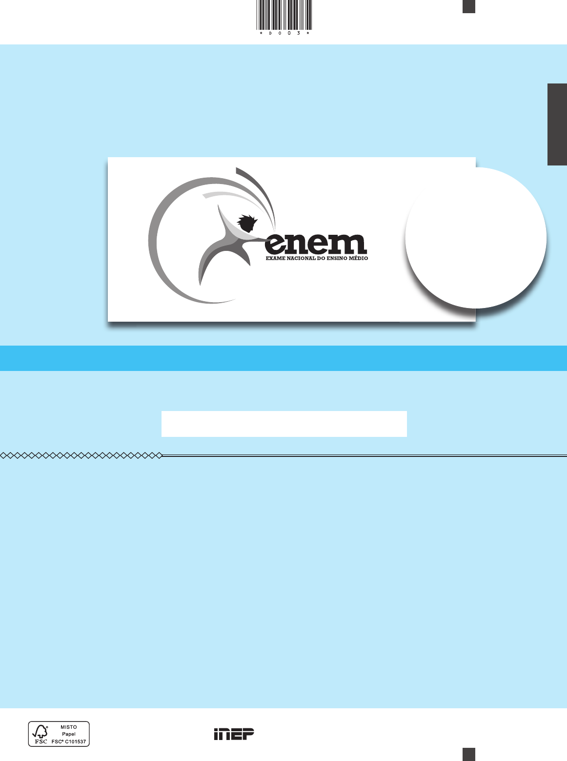 A COR DA CAPA DO SEU CADERNO DE QUESTÕES É AZUL. MARQUE-A EM SEU CARTÃO-RESPOSTA. PROVA DE REDAÇÃO E DE LInGUAGEnS, cÓDIGOS E SUAS TEcnOLOGIAS PROVA DE MATEMÁTIcA E SUAS TEcnOLOGIAS O que sou vale mais do que o meu canto. LEIA ATEnTAMEnTE AS InSTRUÇÕES SEGUInTES: 1. Este CADERNO DE QUESTÕES contém a Proposta de Redação e 90 questões numeradas de 91 a 180, dispostas da seguinte maneira: a) as questões de número 91 a 135 são relativas à área de Linguagens, Códigos e suas Tecnologias; b) as questões de número 136 a 180 são relativas à área de Matemática e suas Tecnologias. ATEnÇÃO: as questões de 91 a 95 são relativas à língua estrangeira. Você deverá responder apenas às questões relativas à língua estrangeira (inglês ou espanhol) escolhida no ato de sua inscrição. 2. Confira se o seu CADERNO DE QUESTÕES contém a quantidade de questões e se essas questões estão na ordem mencionada na instrução anterior. Caso o caderno esteja incompleto, tenha defeito ou apresente qualquer divergência, comunique ao aplicador da sala para que ele tome as providências cabíveis. 3. Para cada uma das questões objetivas, são apresentadas 5 opções. Apenas uma responde corretamente à questão. 4. O tempo disponível para estas provas é de cinco horas e trinta minutos. 5. Reserve os 30 minutos finais para marcar seu CARTÃO-RESPOSTA. Os rascunhos e as marcações assinaladas no CADERNO DE QUESTÕES não serão considerados na avaliação. 6. Somente serão corrigidas as redações transcritas na FOLHA DE REDAÇÃO. 7. Quando terminar as provas, acene para chamar o aplicador e entregue este CADERNO DE QUESTÕES e o CARTÃO- RESPOSTA/FOLHA DE REDAÇÃO. 8. Você poderá deixar o local de prova somente após decorridas duas horas do início da aplicação e poderá levar seu CADERNO DE QUESTÕES ao deixar em definitivo a sala de prova nos 30 minutos que antecedem o término das provas. ExAME nAcIOnAL DO EnSInO MÉDIO ATEnÇÃO: transcreva no espaço apropriado do seu CARTÃO-RESPOSTA, com sua caligrafia usual, considerando as letras maiúsculas e minúsculas, a seguinte frase: Ministério da Educação 2º DIA cADERnO 7 AZUL2015 *AZUL25dom1* 2015 LC - 2º dia | Caderno 7 - AZUL - Página 2 *AZUL25DOM2* PROPOSTA DE REDAÇÃO A partir da leitura dos textos motivadores seguintes e com base nos conhecimentos construídos ao longo de sua formação, redija texto dissertativo-argumentativo em modalidade escrita formal da língua portuguesa sobre o tema “A persistência da violência contra a mulher na sociedade brasileira”, apresentando proposta de intervenção que respeite os direitos humanos. Selecione, organize e relacione, de forma coerente e coesa, argumentos e fatos para defesa de seu ponto de vista. TExTO I Nos 30 anos decorridos entre 1980 e 2010 foram assassinadas no país acima de 92 mil mulheres, 43,7 mil só na última década. O número de mortes nesse período passou de 1.353 para 4.465, que representa um aumento de 230%, mais que triplicando o quantitativo de mulheres vítimas de assassinato no país. WALSELFISZ, J. J. Mapa da Violência 2012. Atualização: Homicídio de mulheres no Brasil. Disponível em: www.mapadaviolencia.org.br. Acesso em: 8 jun. 2015. TExTO II TIPO DE VIOLÊNCIA RELATADA 51,68% 31,81% Violência física Violência psicológica Violência moral Violência sexual Violência patrimonial Cárcere privado Tráfico de pessoas 9,68% 2,86%1,94% 1,76% 0,26% BRASIL. Secretaria de Políticas para as Mulheres. Balanço 2014. Central de Atendimento à Mulher: Disque 180. Brasília, 2015. Disponível em: www.spm.gov.br. Acesso em: 24 jun. 2015 (adaptado). TExTO III Disponível em: www.compromissoeatitude.org.br. Acesso em: 24 jun. 2015 (adaptado). TExTO IV O IMPAcTO EM núMEROS Com base na Lei Maria da Penha, mais de 330 mil processos foram instaurados apenas nos juizados e varas especializados Fontes: Conselho Nacional de Justiça, Departamento Penitenciário Nacional e Secretaria de Políticas para as Mulheres 332.216 processos que envolvem a Lei Maria da Penha chegaram, entre setembro de 2006 e março de 2011, aos 52 juizados e varas especializados em Violência Doméstica e Familiar contra a Mulher existentes no País. O que resultou em: 58 mulheres e 2.777 homens enquadrados na Lei Maria da Penha estavam presos no País em dezembro de 2010. Ceará, Rio de Janeiro e Rio Grande do Sul não constam desse levantamento feito pelo Departamento Penitenciário Nacional 237 mil 1.577 prisões preventivas decretadas 9.715 prisões em flagrante 33,4% de processos julgados Sete de cada dez vítimas que telefonaram para o Ligue 180 afirmaram ter sido agredidas pelos companheiros relatos de violência foram feitos ao Ligue 180, serviço telefônico da Secretaria de Políticas para as Mulheres Disponível em: www.istoe.com.br. Acesso em: 24 jun. 2015 (adaptado). InSTRUÇÕES: • O rascunho da redação deve ser feito no espaço apropriado. • O texto definitivo deve ser escrito à tinta, na folha própria, em até 30 linhas. • A redação que apresentar cópia dos textos da Proposta de Redação ou do Caderno de Questões terá o número de linhas copiadas desconsiderado para efeito de correção. Receberá nota zero, em qualquer das situações expressas a seguir, a redação que: • tiver até 7 (sete) linhas escritas, sendo considerada “texto insuficiente”. • fugir ao tema ou que não atender ao tipo dissertativo-argumentativo. • apresentar proposta de intervenção que desrespeite os direitos humanos. • apresentar parte do texto deliberadamente desconectada do tema proposto. 2015 LC - 2º dia | Caderno 7 - AZUL - Página 3 *AZUL25DOM3* LInGUAGEnS, cÓDIGOS E SUAS TEcnOLOGIAS Questões de 91 a 135 Questões de 91 a 95 (opção inglês) QUESTÃO 91 My brother the star, my mother the earth my father the sun, my sister the moon, to my life give beauty, to my body give strength, to my corn give goodness, to my house give peace, to my s