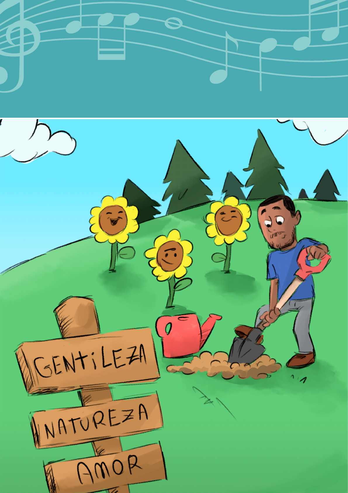 1 2. Gentileza 18 Numa cidade cinzenta, morava um menino muito especial. Sempre que ele saía com os pais, seus olhos inquietos não paravam de procurar três coisas: as cores das flores no caminho, os sorrisos nos rostos das pessoas e a terceira, ah!, essa ele adorava mais que as outras duas, eram as palavras. Apesar de encontrar muitas palavras por onde passava, ele gostava especialmente de encontrar três: AMOR, NATUREZA e GENTILEZA. O Mundo de Gentileza 2. Gentileza Objetivo geral: Estimular o desenvolvimento de atitudes de gentileza nos contextos escolar, familiar e social. Conteúdo: Leitura; oralidade; gênero textual poesia; jogos corporais. Conteúdos musicais: Criação; improvisação. Objetivo: Compreender a importância de sermos gentis; conhecer o exemplo histórico de gentileza; refletir sobre como podemos ser gentis. História 19 Ele tinha mania de brincar com elas, fazia das palavras um jogo. Ele as virava de cabeça para baixo, prendia-as em fios, colava- as nos muros e nas pipas que soltava na vizinhança. O tempo passou, e o menino tão especial cresceu e, como todo adulto, escolheu uma profissão. Ele se tornou motorista de caminhão e tinha muito prazer em transportar tudo pela cidade: peixes, flores, tinta, tijolo e tudo o mais. Só não gostava da fumaça que saía dos caminhões, acreditava que ela deixava tudo mais cinza e menos colorido. Mas seguia com seu trabalho. Um dia, dirigindo por aí, viu um circo chegar à cidade e se lembrou do tempo que era criança. As cores da lona fizeram-no lembrar quando procurava cores nas flores. Infelizmente, poucos dias depois, aquela alegria das cores da lona se tornou tristeza. Ele recebeu a notícia que aquele lindo circo havia sofrido um terrível incêndio. A tragédia foi tão grande que mudou não só a história das pessoas que estavam naquele incêndio, mas também a vida dele, que deixou de lado os caminhões e decidiu que viveria para fazer alguma coisa pela cidade. Para celebrar as vidas de todas aquelas pessoas que morreram no incêndio, assim como ele amava celebrar as flores, decidiu plantar um lindo jardim no terreno onde o circo havia pegado fogo, tudo isso buscando 20 encontrar os sorrisos que ele tanto amava encontrar na infância. E, claro, as palavras também não podiam ficar de fora. Ele usou o AMOR, a NATUREZA e a GENTILEZA para criar poemas e espalhá-los pela cidade. Ao fazer isso, ele se sentiu feliz e percebeu que suas palavras e gestos traziam felicidade aos outros também. Ele descobriu que sua gentileza gerava mais gentileza. Não sei quantas flores colheu, quantos sorrisos regou, quantas palavras plantou nos viadutos, pontes e muros. Mas depois de muito tempo fazendo isso, ele ficou conhecido como Profeta Gentileza. Sempre que vemos suas palavras, lembramos desse menino que ficou velhinho e transformou com gestos tão simples a história de toda uma cidade. Você sabia que essa história aconteceu de verdade? Roda de conversa É interessante, aproveitando a pergunta final da história, abrir espaço para que os alunos falem sobre como compreenderam a história, o que acharam dela, que partes mais as mobilizou, se já tinham ouvido falar nesse “personagem”, o que significa ser gentil para elas etc. Também seria importante mostrar imagens do Profeta Gentileza e dos muros que ele pintou e em que escreveu suas palavras. Isso faz parte da cidade do Rio de Janeiro. Ilustrações disponíveis nos anexos do aplicativo Sinta o Som - Caderno 2. 21 Brincadeiras Material necessário: Jogo da memória construído pelos alunos. Como fazer: Por meio de algumas perguntas, estimule os alunos a pensarem sobre a gentileza. Pode-se perguntar a eles sobre qual o significado de “gentileza” em uma palavra; o os gestos de gentileza; o que é ser gentil com o outro; se eles se consideram pessoas gentis e porquê; e, para terminar, peça que falem palavras ou expressões de gentileza. Com essas palavras, construam um jogo da memória e joguem. O par no jogo também pode ser uma palavra associada a um desenho, feito pelos alunos, que represente o respectivo gesto de gentileza. Pode ser jogado pela turma toda junta ou em dupla, no mínimo. Exemplo de jogo da memória da gentileza Essa é uma imagem apenas para exemplificar. O jogo deve ser construído com as palavras que os alunos trouxerem, realizado pela turma toda ou em duplas. Jogo da memória Objetivo: Reconhecer palavras positivas para expressão da emoção; identificar palavras e gestos que podem ser classificados como palavras e gestos de gentileza. BOM DIA! POR FAVOR! AMOR GENEROSIDADE BOM DIA! POR FAVOR! AMOR GENEROSIDADE OBRIGADO DESCULPE! PACIÊNCIA RESPEITO OBRIGADO DESCULPE! PACIÊNCIA RESPEITO 22 Jogos Teatrais Os objetos de gentileza que nos movem Objetivo: Experimentar os sentimentos trazidos pela relação com objetos imaginários e expressar corporalmente essas sensações; criar e desenvolver pequenas cenas com objetos imaginários. Como fazer: Etapa 1: Divida os alunos em grupos e peça para que conversem e escolham juntos qual objeto que os faz pensar ou agir com gentileza. Você pode sugerir algumas ideias, como uma flor, uma bandeja de doces, uma vela de aniversário, uma caixa de bombom, um brinquedo, um presente etc. Etapa 2: Após todos os grupos terem decidido qual objeto será usado para a cena, explique que agora vão experimentar a relação com os objetos imaginários que escolheram. Neste momento, todos os grupos experimentam ao mesmo tempo, enquanto vão sendo orientados e estimulados por você, através de algumas frases como “Se movam pelo espaço, imaginem esse objeto, o formato, o peso, qual a sensação ele desperta em você?”; “Quais gestos, movimentos e ações que você faz com esse objeto trazem, para você, a sensação de gentileza?”; “Que sentimentos surgem a partir dessa relação com o objeto? Carinho? Afeto? O que mais?” (essas são sugestões de frases, o importante é observar as respostas concretas
