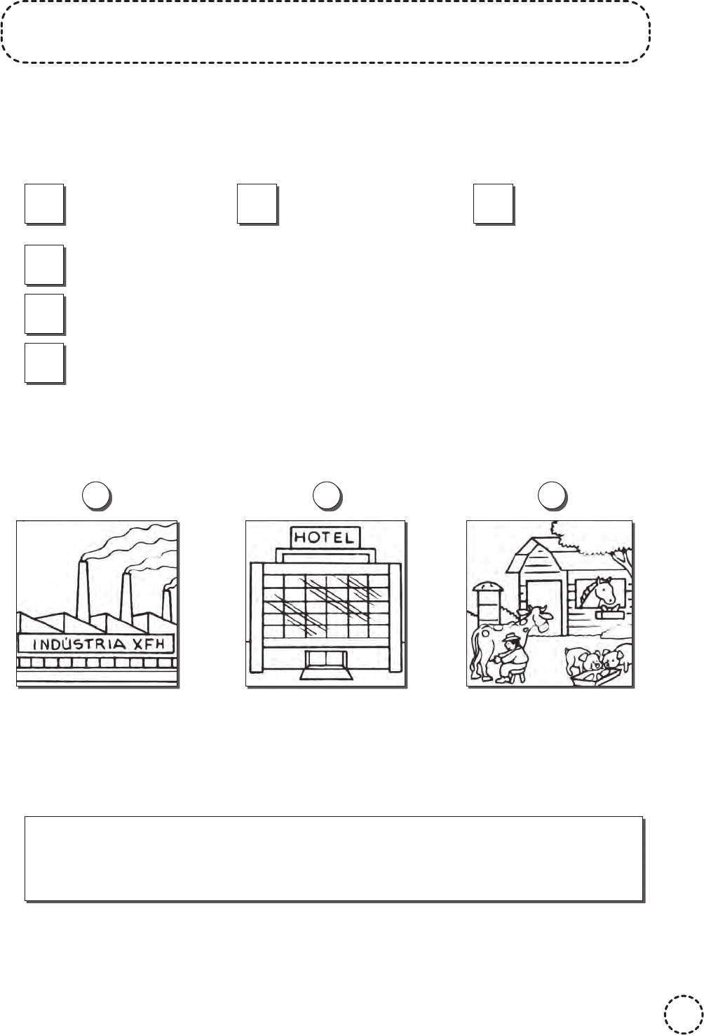 Nome: ________________________________________ Data: ____ /____ /____ 67 QUAL É A ATIVIDADE ECONÔMICA? 1. Associe as colunas correspondentes. A setor primário B setor secundário C setor terciário Setor que agrupa as atividades do comércio e da prestação de serviços. Setor que agrupa as atividades agrárias, pecuária e extrativismo. Setor que agrupa as atividades da indústria e da construção civil. 2. Indique em que setor da economia cada estabelecimento se enquadra. A B C ___________________ ___________________ ___________________ 3. Leia e responda. Bianca é casada com Carlos. Ela é professora em uma escola particular, e ele é operário em uma construtora de edifícios. a) Em que setor da economia Bianca trabalha? _______________________ b) Em que setor da economia Carlos trabalha? ________________________ ATIV_4oANO_GEOGRAFIA.indd 67ATIV_4oANO_GEOGRAFIA.indd 67 27/03/20 11:2827/03/20 11:28