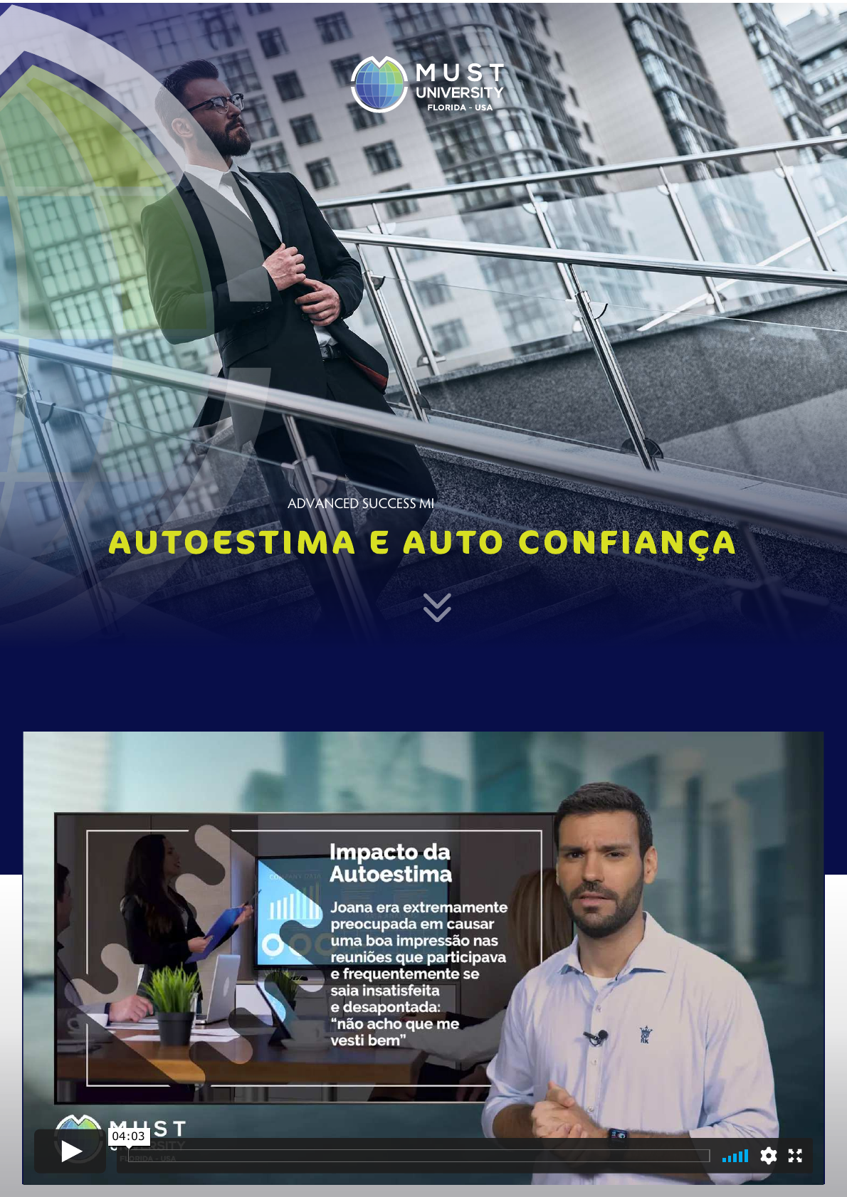 AUTOESTIM A E AUTO C ONFIANÇ A 04:03 ADVANCED SUCCESS MINDSET - ASM503 - 2.1 https://mustedu.com/ https://vimeo.com/537343531 Conteúdo organizado por Claudia Samartin do livro The Miracle Equation: The Two Decisions That Move Your Biggest Goals From Possible, to Probable, to Inevitable, publicado em 2019 por Harmony. AUTOESTIMA E AUTO CONFIANÇA INTRODUÇÃO OBJETIVOS DE APRENDIZAGEM Entender o a conexão entre autoestima e sucesso nos seus objetivos Apresentar como ela pode ser construída Elencar os fatores de atenção na construção da autoestima e auto confiança Ilustrar a autoestima no contexto dos negócios "Ninguém pode fazer com que você se sinta inferior sem o seu consentimento”. Eleanor Roosevelt, This is My Story,1937. Ter uma autoestima saudável é apreciar as possibilidades e os aspectos positivos percebidos, assim como aceitar os próprios aspectos negativos e limitações, e ainda assim se sentir bem consigo mesmo. É conhecer suas forças e fraquezas, e gostar de si mesmo com todos os defeitos. Este componente está relacionado com a maneira com que lidamos com o nosso sucesso e aprendizado. A conquista dos nosso objetivos, como falamos anteriormente, tem como alicerce uma série de pré-requisitos como segurança, força interior, autoconfiança e autossuficiência. Se estamos em um ponto do nosso projeto ou objetivo em que não temos a convicção de que podemos alcançá- lo, quem terá por nós? As pessoas com uma autoestima sadia não têm problemas ao reconhecer abertamente e apropriadamente quando cometem erros, quando estão errados ou quando não sabem das respostas, pois sabem de suas fraquezas e forças e se sentem bem consigo mesmas. E isso pode acontecer com bastante frequência. Sempre encontraremos obstáculos no caminho, mas a nossa capacidade de enfrenta-los está em justamente reconhecer o quanto temos de valor. Posso sentir alguma dificuldade em algum passo em direção ao meu sonho, mas a capacidade de reconhecer que eu tenho um outro lado que pode se sair bem, vai fazer com que eu continue na minha jornada. Isso é o que chamamos de apreciação e respeito próprios, os quais são baseados em um senso de identidade bem desenvolvido. Quando não temos esse senso de identidade desenvolvido eu me deparo com sentimentos de inadequação pessoal e inferioridade. Partindo desse princípio, como seremos capazes de dar passos em relação à realização dos nossos objetivos se nos enxergamos nesse contexto? Qual o grau de autoconfiança que tenho para acreditar que os meus projetos darão certo? Vamos aos exemplos para poder ilustrar com mais clareza o impacto da autoestima. Joana era extremamente preocupada em causar uma boa impressão das reuniões que participava e frequentemente se saia insatisfeita e desapontada delas: “não acho que me vesti bem” ou “talvez tenha falado demais e monopolizei a conversa”. Esse era o sentimento com que saia de todas as reuniões. Uma pessoa isenta e mais objetiva poderia discordar dessa percepção, mas Joana colocava as suas interações sociais diárias em um patamar tão alto, que agora não consegue alcançar sua própria expectativa. Ela era incapaz de reconhecer suas forças – de que estava bem apresentável, tinha uma postura engajada nas interações, para dar mais luz o que na concepção dela não estava bom. Marcelo, por outro lado, não conseguia se perdoar por qualquer erro que cometia: “ Tirei 85 na prova, deveria ter tirado 95. O que há de errado comigo? Perdi 10 pontos em razão de erros bobos. Como eu sou burro!”. A conversa interna de Marcelo reflete a crítica severa que faz de si mesmo por não ser perfeito e da sua falta de tolerância ao cometer erros. Ele não consegue assumir seus defeitos. Essa equação não é tão fácil de solucionar muitas vezes, justamente porque precisamos colocar equilíbrio nas nossas competências. Geralmente o que transita nos extremos pode não ser saudável, e com as nossas características as polaridades também podem se tornar um ponto de atenção. Não ter paciência não é bom, assim como ter muita paciência pode também não ser. Ser muito ou pouco detalhista, ser muito ou pouco objetivo, ter altíssima autoestima ou baixíssima também pode não estar na medida certa. Na verdade, quando falamos nessas características em geral precisamos atentar a um fato. Cada situação demanda um determinado grau de cada uma das nossas competências. O momento que tivermos dominado essa “mecânica”, podemos já ser transportados para uma outra esfera, uma vez que isso não é uma tarefa simples para ser feita. A baixa autoestima pode ser de fato disfuncional, mas a autoestima artificial pode ser tão problemática quanto. A criança que aprende o mantra do “Eu sou especial” sem construir, simultaneamente, habilidades necessárias para a vida está prestando um tremendo desserviço. Elogiar demais, sem ter a certeza de que está ajudando a criança a realmente conquistar algo que seja digno de aprovação, pode levar a devastação quando o mundo falhar em dar aquele tapinha nas costas dessa criança por um sucesso que não foi merecido. A autoestima verdadeira é construída gradativamente, camada por camada, através do orgulho justificado em conquistas reais, não por outra pessoa tecendo um casulo de falsa positividade. Já que a ideia de autoestima necessariamente amortece a agressividade e outras desordens, destacamos que o Dr. Robert Hare, o maior expert em psicopatas, avaliou um grande número de assassinos em série, entre outros criminosos que estão em prisões em todo o mundo. Muitos deles acreditam ter uma autoestima extremamente alta (um exemplo do que Hare diz como sendo o comportamento “grandioso”), se enquadrando como pessoas absolutamente maravilhosas. Suas mães os amam, suas namoradas os adoram. Claramente, algo bom demais pra ser verdade. É claro que você não quer fixar apenas em suas fraquezas, em que cada pedaç