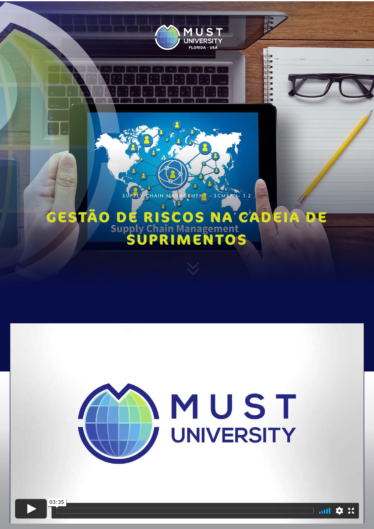 S U P P L Y C H A I N M A N A G E M E N T - S C M 5 7 0 - 3 . 2 GESTÃO DE RISC OS NA C ADEIA DE SUPRIMENTOS 03:35 https://mustedu.com/ https://vimeo.com/518348586/ec8a464ed2 A gestão de riscos na cadeia de suprimentos evita interrupções que possam prejudicar todos os envolvidos, garantindo a continuidade de atividades como o fluxo eficiente de informações, materiais e produtos entre os atores e dentro da cadeia de suprimentos, tornando-a mais competitiva no mercado. Conteúdo organizado por Daniela Doms em 2018 do livro Future minds, publicado em 2010 por Nicholas Brealey. GESTÃO DE RISCOS NA CADEIA DE SUPRIMENTOS INTRODUÇÃO OBJETIVOS DE APRENDIZAGEM Evidenciar a importância da gestão de riscos na cadeia de suprimentos. Uma cadeia de suprimento ágil e resiliente vai representar vantagem competitiva no mercado, contudo atualmente existem diversos fatores que tornam as cadeias de suprimentos cada vez mais complexas, tais como a globalização, as exigências dos consumidores, a concorrência, etc. Dessa maneira, na mesma medida que esses fatores complexificam as cadeias de suprimentos também as expõe aos riscos, tornando-as mais vulneráveis.Daí decorre a importância de trabalhar a gestão de riscos na cadeia de suprimentos, antecipando-se a eles e preparando-se para eventuais problemas. Gerenciar os riscos envolve diversos processos, desde o planejamento, identificação, análises quantitativas e qualitativas, até o planejamento de respostas, monitoramento e controle. Conforme mostra a figura a seguir: Fi gura 3.1 – Model o C oncei tual de L ogí st i ca Integrada GESTÃO DE RISCOS NA CADEIA DE SUPRIMENTOS 1 Planejar o gerenciamento de risco 2 Identificar os riscos 3 Realizar a análise qualitativa dos riscos 4 Realizar a análise quantitativa dos riscos 5 Planejar as respostas aos riscos 6 Monitorar e controlar os riscos Fonte: C armona ( 2017, p. 53) Primeiramente, a empresa deve elaborar um planejamento de gerenciamento de riscos, de acordo com uma metodologia, estipulando papéis e responsabilidades, definindo categorias dos riscos, a probabilidade deles acontecerem e o impacto que podem causar. Essa elaboração do plano de gerenciamento vai conter informações importantes e indispensáveis. Em seguida, a empresa deve identificar os riscos, determinando quais são os riscos principais que podem afetar a cadeia de suprimentos e como eles deverão ser tratados. Para essa etapa é preciso coletar informações, e esta coleta pode ser realizada através de um brainstorming , por exemplo, ou de outras que envolvam entrevistas e análises que procurem compreender a raiz do problema. Após elaborar o plano de gestão de riscos e identificar os riscos à cadeia de suprimentos, é preciso realizar a análise dos riscos. Esta análise deve ser qualitativa e deve priorizar os riscos de acordo com a probabilidade de ocorrência e da avaliação do seu impacto. A análise quantitativa deve ser realizada de maneira a estimar numericamente os efeitos desse risco sobre a cadeia; essa análise vai respaldar na tomada de decisão, podendo se utilizar de várias técnicas, como modelagem ou simulação. Com os riscos conhecidos e com o plano de gestão elaborado, é preciso planejar as respostas aos riscos, desenvolvendo alternativas capazes de aumentar as oportunidades e minimizar as ameaças. O planejamento de respostas deve contar com um responsável por risco. Por fim, é preciso manter os riscos sob monitoramento e controle, e é neste momento que as respostas que foram previamente planejadas devem ser implementadas, além de continuar a avaliação de novos riscos. Na fase do monitoramento e controle de riscos verifica-se também a eficácia do gerenciamento, ou seja, se todas as etapas anteriores estão dando resultado positivo. SAIBA MAIS Os riscos das cadeias de suprimentos podem ser classificados em três categorias: • internos à empresa (processos e controle); • externos à empresa, mas internos para a cadeia (fornecimento e demanda); e • externos à cadeia (eventos sociopolíticos, desastres naturais, etc.). https://vimeo.com/518348266/14d2fc0026 As cadeias de suprimentos que contam com o gerenciamento de riscos conseguem aproveitar melhor as oportunidades e se proteger mais das ameaças, o que se configura como uma capacidade crítica no mercado caracterizado pela turbulência e imprevisibilidade. Assim conseguem se tornar mais competitivas. O foco da gestão de riscos na cadeia de suprimentos é evitar que haja interrupções na cadeia, prejudicando assim o conjunto de empresas que a constitui. Essa interrupção, de acordo com Souza e Moraes (2012, p. 3) envolve dois aspectos: (a) um evento desencadeador não intencional que se materializa em algum lugar da cadeia de suprimentos ou no seu ambiente; (b) uma situação que ameaça signi�cativamente as operações comerciais normais das empresas da cadeia de suprimentos. Realizar a gestão de riscos na cadeia de suprimentos pode impedir que o fluxo eficiente de informações, materiais e produtos entre os atores e dentro da cadeia de suprimentos seja interrompido, impedido ou modificado, reduzindo assim a vulnerabilidade aos riscos, assim como afirmam Souza e Moraes (2012, p. 3): (…) a gestão de risco na cadeia de suprimentos pode reduzir a vulnerabilidade ajudando a identi�car um risco potencial e avaliar sua 02:44 https://vimeo.com/518348266/14d2fc0026 probabilidade e impacto antes que ele possa ocorrer, em seguida, o tomador de decisão pode implementar ações que evitem ou minimizem os riscos. A gestão de riscos na cadeia de suprimentos pode ser compreendida como uma garantia de que a empresa vai cumprir com suas tarefas com eficiência, e sua performance vai ser conforme o esperado, coordenando com competência a sua cadeia de suprimentos de ponta a ponta. Assim, os benefícios que podem advir de um modelo estruturado e abrangente de gestão de riscos tornam-se fatores de segurança para o negócio,
