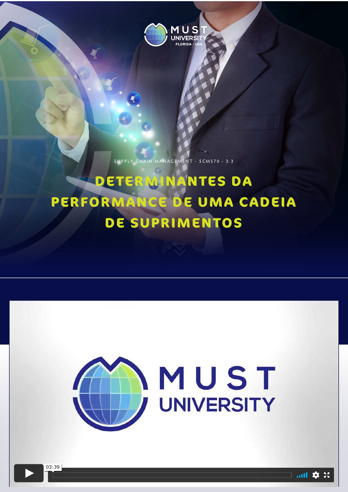 S U P P L Y C H A I N M A N A G E M E N T - S C M 5 7 0 - 3 . 3 DETERMINANTES DA PERFORMANC E DE UMA C ADEIA DE SUPRIMENTOS 03:39 https://mustedu.com/ https://vimeo.com/518355447/2636d808a8 O estudo dos determinantes da performance da cadeia de suprimentos pode influenciar na capacidade de resposta ao mercado, bem como na competitividade das empresas que formam a cadeia. Tais fatores – lead time, custos, qualidade e nível de serviços –, se não forem bem geridos, podem representar também uma ruptura nos processos de negócio da cadeia de suprimentos, trazendo prejuízos para os envolvidos. Conteúdo organizado por Daniela Doms em 2018 do livro Future minds, publicado em 2010 por Nicholas Brealey. DETERMINANTES DA PERFORMANCE DE UMA CADEIA DE SUPRIMENTOS INTRODUÇÃO OBJETIVOS DE APRENDIZAGEM Apontar os determinantes de performance da cadeia de suprimentos. A performance tem vital importância para a cadeia de suprimentos. Aquela representa a capacidade que esta tem de responder às exigências do mercado. E entre os determinantes que influenciam essa performance estão os prazos que envolvem os fluxos de materiais, chamados de lead times. Através da observação dos lead times é possível identificar a capacidade de aprimoramento e o seu nível de maturidade de integração. Para Rezende et al. (2016, p 37), a análise da performance: [...] através dos prazos de disponibilidade ou da performance da entrega, não são su�cientes para a detecção do risco, nem tampouco para efetuar, a rigor, a comparação de não fornecimento entre dois ou mais fornecedores. Entretanto, é possível associá-lo através de uma notação determinística, isto é, utilizar seus valores absolutos como condição de contorno nas análises de probabilidade de ruptura, esta condição possibilitaria entender a sua implicação direta na integração da cadeia. Os autores afirmam ainda que a relação entre os ciclos de formação de caixa e solvência dos negócios está associada de maneira direta com o tempo necessário para que as cadeias atendam suas demandas, razão pela qual há nesse aspecto um importante fator que vai influenciar na performance da cadeia, podendo acarretar em riscos de atrasos nos fornecimentos, entre outros. Rezende et al. (2016, p. 37) apontam que “a velocidade de crescimento do risco em fornecimentos globais divide-se entre a taxa em que os eventos acontecem e a taxa com que são verificados, acoplado ao aumento dos prazos de entrega e variabilidade do lead time”. Assim, quanto menor for o controle sobre a integração da cadeia e maior forem as distâncias físicas, mais acelerada será essa determinante. DETERMINANTES DA PERFORMANCE DE UMA CADEIA DE SUPRIMENTOS Uma coordenação mais eficaz da cadeia é capaz de reduzir o lead time, mesmo em casos de ociosidade na capacidade de entrega dos fornecedores, permitindo assim mais flexibilidade na integração entre as empresas que formam a cadeia, obtendo então ganhos de tempo nas respostas ao mercado e conferindo mais competitividade à cadeia. Outro determinante da performance da cadeia de suprimentos é o custo. Rezende et al. (2016, p. 38) esclarecem que: […] o custo é um dos determinantes mais visados nos processos de melhoria contínua e na busca de competitividade. Wu et al. (2010) a�rmam que os gestores em sua busca pelo corte de custos e busca competitiva tem adotado o outsourcing, processo de terceirização da produção, e o Lean Production como principais métodos operacionais. No entanto, independentemente do processo de integração da cadeia, as empresas que a compõem possuem seu planejamento e nele determinam seus custos de produção, de transação e de manipulação, que convergem e se tornam diferenciais nas funções que estão associadas aos riscos que vão impactar a performance tanto das empresas individualmente, como do conjunto da cadeia de suprimentos. SAIBA MAIS “Segundo Schmitt e Singh (2012), o foco na resiliência, enquanto as cadeias são desenhadas, deve ser mais priorizado que o custo, [o que se representa em parte] pelo próprio conceito de integração das cadeias. Matsui (2009) cita uma pesquisa global realizada pela Ernst & Young (1999), [segundo a qual] 73% dos gestores consideram fundamental transferirem aos preços o custo de otimizar a capacidade das operações. Dentro dessa abordagem, o autor afirma que é necessária à dinâmica competitiva que haja um rigoroso controle dos custos fixos, mas também uma visão coerente no investimento de adequação das cadeias, inserindo neste contexto a percepção do custo nas dimensões de flexibilidade, no A qualidade também é um determinante importante da performance da cadeia de suprimentos e está relacionada com a demanda e os custos, o que torna dinâmicas as condições que contornam essa premissa. Assim, falhas nos processos de previsão de demanda e no cálculo dos custos se configuram como incertezas e representam riscos que são difíceis de serem percebidos, pois envolvem o ciclo de vida dos produtos, a taxa de obsolescência, os custos de devolução por falhas e a depreciação dos preços. Rezende et al. (2016, p. 40), explicam que: […] a baixa visibilidade nas cadeias é um dos principais responsáveis pela perda de qualidade de processos e produtos, em sua perspectiva além da in�uência direta sobre a capacidade competitiva esta circunstância amplia o distanciamento nas respostas aos mercados e as variabilidades. Em uma modelagem mais completa a função composta da qualidade passa de contorno a agente, entretanto os 02:11 tratamento da informação e da integração dos processos. A rigor define-se à função investimento, uma variável de escopo dinâmico, o papel de capturar a resiliência e assim um mitigador de risco, entretanto é necessária sua composição como parte da função custo.” (REZENDE et al., 2016, p. 39) https://vimeo.com/518355154/ba31694362 autores [nos] advertem da importânci