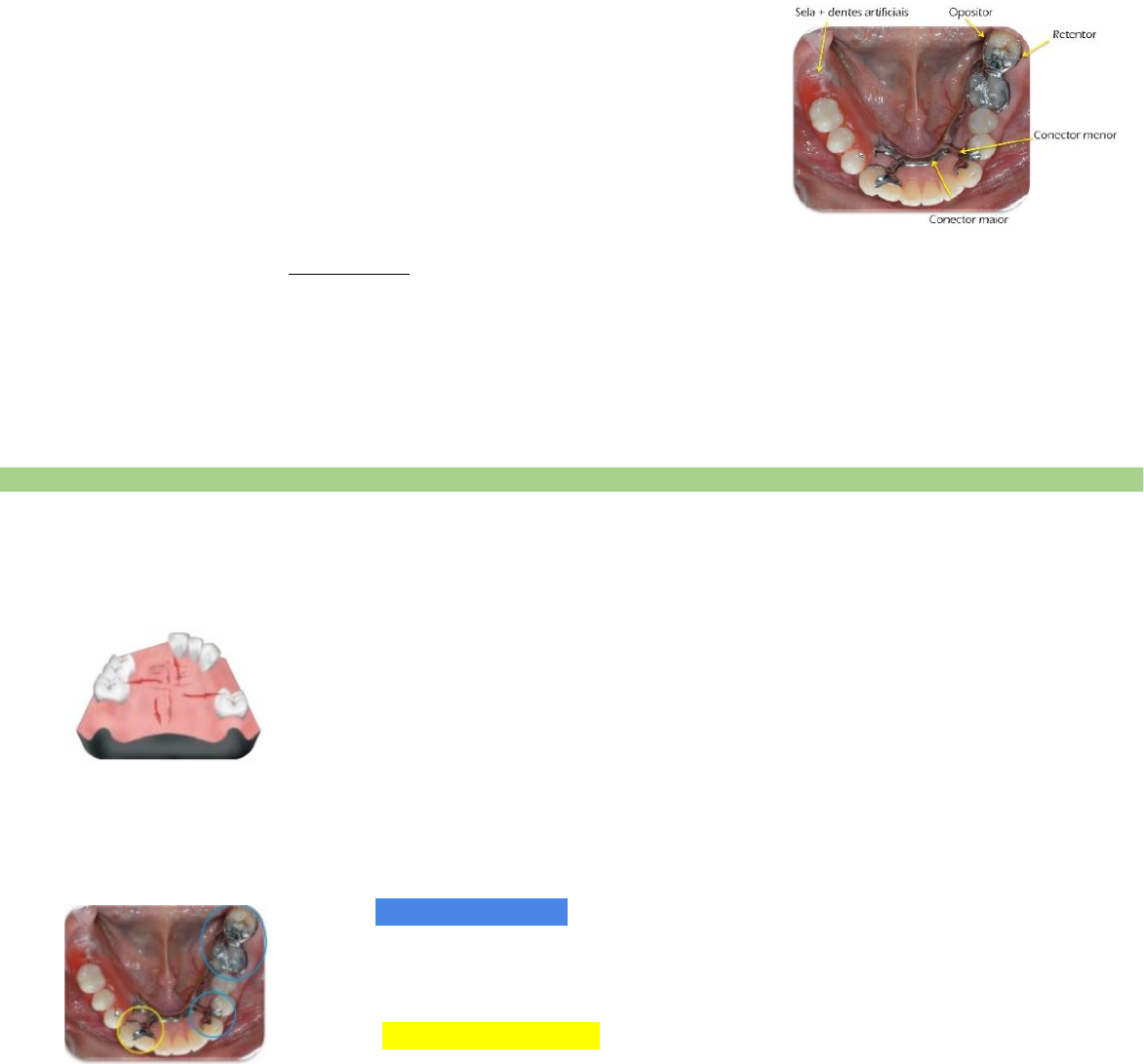 Taliane Aranha 2 PRINCÍPIOS BÁSICOS PARA DESENHO DE UMA PRÓTESE PARCIAL REMOVÍVEL · O desenho da PPR deve ser simplificado; · Sem prejuízo biomecânico (trauma de tecido mole, soltar da boca, provocar dor nos dentes pilares); · Conforto ao paciente (evitar retenção a mais do que a necessária. menor número de dentes envolvidos possíveis) · Diminuição de nichos. elementos constituintes de uma PPR: · Retentores: Elementos mecânicos responsáveis por suporte, retenção e estabilidade em relação aos dentes pilares, impedindo a movimentação no sentido gengivo-oclusal e ocluso-gengival. Se não tivéssemos a retenção, quanto o paciente ocluísse a prótese giraria. Esse é um dos motivos pelos quais não fazemos PPR unilateral. É responsável por 3 grandezas: Suporte (fixação) – É a resistência às forças que atuam sobre uma prótese no sentido ocluso-cervical, durante a mastigação de alimentos duros. Para isso, deve existir o apoio como elemento participativo. Podendo ser oclusal, incisal ou de ângulo Retenção – É a resistência às forças que atuam sobre uma prótese no sentido cérvico-oclusal, durante a mastigação de alimentos pegajosos. Este item é dado pelos braços de retenção do grampo Estabilidade – É a resistência da prótese às forças horizontais. São classificados quanto à localização e ao tipo. A. Quanto à localização: • Retentores diretos – próximos ao espaço protético, todos vão receber grampos. há uma variedade de grampos. são os elementos que mais vão sofrer torque durante a mastigação • Retentores indiretos – distantes do espaço protético. Pilares não adjacentes ao espaço desdentado; Elemento estabilizador da PPR; Neutralização dos movimentos de rotação da PPR B. quanto ao tipo • retentores extracoronários – grampos, são os que mais utilizamos. Componentes dos retentores extracoronários: CORPO: parte que liga os outros 3 elementos ao conector maior APOIO: É o elemento responsável pela transmissão de parte ou totalidade da força mastigatória que incide sobre os dentes artificiais da PPR, promovendo o suporte. São assentados nos nichos, isto é, preparos feitos nas faces proximais contíguas com os espaços protéticos. O apoio impede que a prótese intrua durante a oclusão. Impede o movimento ocluso cervical. GRAMPOS: São elementos dos retentores, programados para conferir retenção e estabilidade à PPR, impedindo a sua movimentação no sentido gengivo-oclusal e oclusogengival Grampos de retenção: desenvolvidos para proporcionar ação de oposição às forças de mastigação. Posicionados sempre abaixo do equador protético, mantendo a prótese em posição. Apresentam ELASTICIDADE. Grampos de oposição ou estabilizadores: são grampos rígidos, largos ocluso-gengivalmente, cuja função é proporcionar a estabilização do dente pilar e da própria prótese em relação ao todo. Posicionado sempre acima do equador protético. Se opõe ao de retenção. OBS: O equador protético é a área de maior circunferência do dente. O grampo de oposição faz oposição às forças. Se estivermos posicionando o retentor e um dente e o grampo de oposição não tocar ao mesmo tempo na estrutura palatina, a tendência do grampo de retenção é empurrar o dente no sentido lingual. O movimento de mola é oposto pelo grampo de oposição Podemos utilizar grampos circunferenciais ou de ação de ponta. Os circunferenciais são mais indicados para os dentes posteriores. Flexibilidade dos grampos de retenção: O grampo de retenção é elástico, tem que se deformar até um certo grau para passar o equador. Essa elasticidade funciona como uma mola, e preciso de algo para se opor a esse efeito de mola, que é o outro braço, o de oposição. Ambos os braços precisam tocar no dente ao mesmo tempo. • Espessura do grampo: o grampo próximo ao corpo e ao nicho do grampo de retenção é mais espesso. À medida que ele vai para a área retentiva do dente, sua espessura afina, e sua elasticidade garante isso. • Comprimento do grampo: todo grampo circunferencial só funciona se ele proporcionar um abraçamento maior que 270° no dente, se for aquém disso a PT será desalojada da sua posição, pelas forças da mastigação não serem neutralizadas pela deficiência de comprimento. • Secção transversal do grampo • Tipo da liga utilizada: ligas de Co-Cr o design no grampo vai depender do tipo de dente que está recebendo o grampo, anterior ou posterior Critérios: • Controlar as forças de inclinação e torque no elemento pilar: tem que receber a prótese de modo que toda a carga mastigatória seja dirigida ao longo eixo desse dente • Promover retenção as forças de deslocamento • Ser compatível com o dente e o contorno dos tecidos moles adjacentes • Atender os desejos estéticos do paciente Grampo circunferencial Indicações: • Molares • Pré molares • Pilares bem posicionados Contraindicações: • Dentes anteriores • Estética (ex: primeiro pré superior) • Retentor direto na extremidade livre: classe I e classe II O abraçamento precisa ser maior que 270°. O grampo é indicado para molares e pré molares desde que esses dentes estejam bem posicionados no arco. O braço de retenção sai da mesial e vai buscar retenção na distal. Grampo semi circunferencial Ele só tem o braço de oposição. Ele trabalha sempre com um grampo de retenção de ação de ponta. Indicados em dentes posteriores e fazem oposição ao braço do retentor. Indicações: • Dentes posteriores • Extremidade livre • Oposição Grampo geminado ou duplo Pega sempre um dente a mesial e um a distal. Podem ser dois molares ou um molar e um pré molar. Usamos em dentes posteriores, pode ser os dois molares ou em um molar e um pré, nos casos de retentores indiretos. Usado numa classe II. Grampo de Ottolengui Variação do grampo circunferencial. Indicação: molares e pré-molares in
