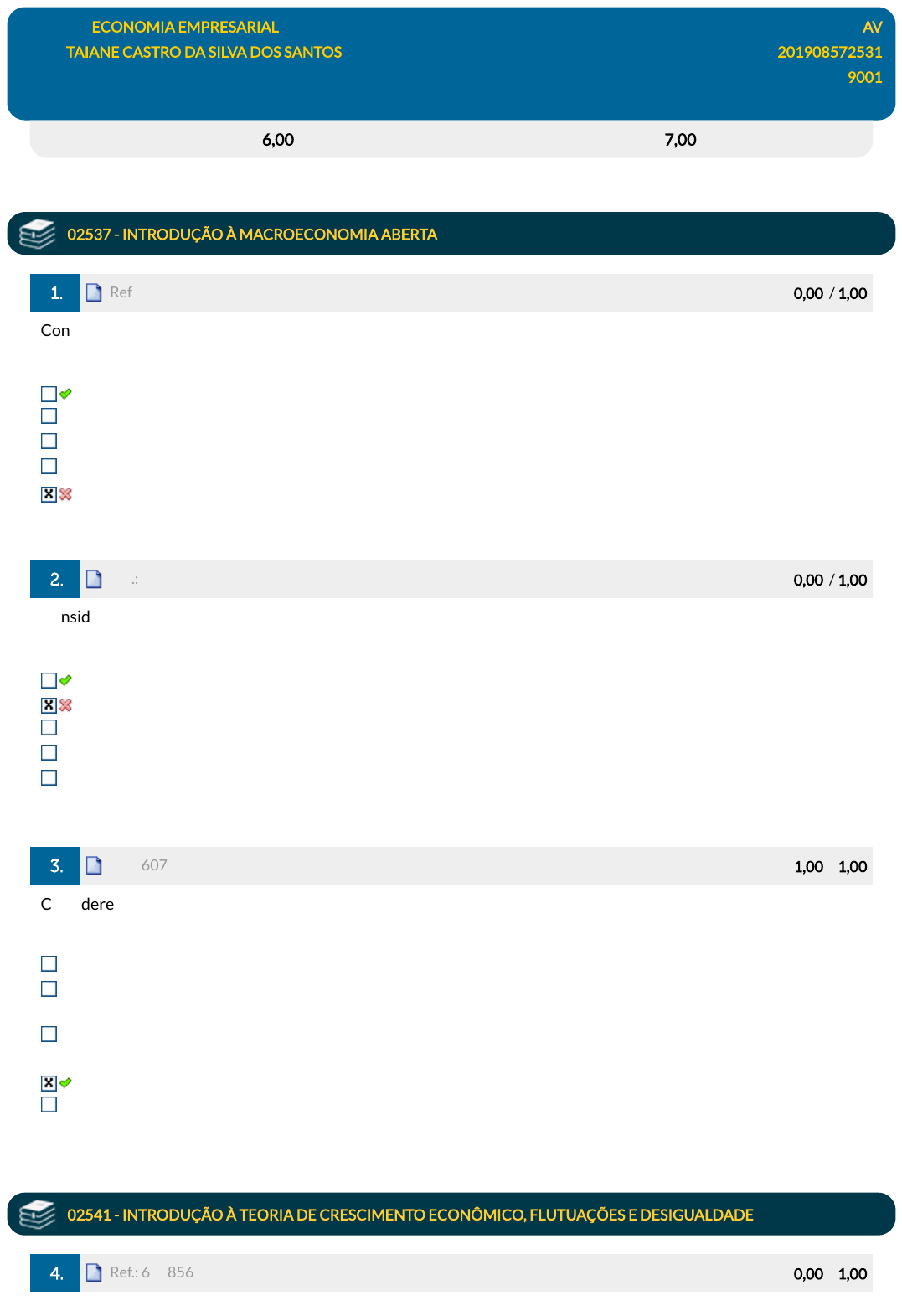 25/07/2023, 14:31 EPS https://simulado.estacio.br/alunos/ 1/3 Disciplina: ECONOMIA EMPRESARIAL AV Aluno: TAIANE CASTRO DA SILVA DOS SANTOS 201908572531 Turma: 9001 EGT0036_AV_201908572531 (AG) 06/06/2022 20:28:38 (F) Avaliação: 6,00 pts Nota SIA: 7,00 pts 02537 - INTRODUÇÃO À MACROECONOMIA ABERTA 1. Ref.: 6074967 Pontos: 0,00 / 1,00 Considere um modelo de regime de câmbio �utuante com livre mobilidade de capitais. Pode ser considerado como fator que tende a provocar uma desvalorização da moeda nacional? elevação dos juros externos. elevação da taxa básica de juros interna. elevação dos recolhimentos compulsórios dos bancos comerciais. política monetária contracionista. política �scal expansionista. 2. Ref.: 6074969 Pontos: 0,00 / 1,00 Considere uma economia aberta, com câmbio �utuante e sob perfeita mobilidade de capitais. Qual é o impacto de uma política �scal expansionista sobre a taxa de câmbio e o nível de produção? A taxa de câmbio se aprecia, e o nível de produção permanece inalterado. A taxa de câmbio se deprecia, e o nível de produção permanece inalterado. A taxa de câmbio permanece inalterada, e o nível de produção aumenta. A taxa de câmbio se aprecia, e o nível de produção aumenta. A taxa de câmbio se deprecia, e o nível de produção diminui. 3. Ref.: 6074654 Pontos: 1,00 / 1,00 Considere o modelo IS-LM-BP sem mobilidade de capital e com regime de câmbio �xo. De acordo com tal modelo, marque a alternativa correta. A curva BP indica que o nível da taxa de juros é constante para qualquer nível do produto. Uma desvalorização cambial eleva apenas temporariamente o nível de renda da economia ao gerar superávits comerciais. Uma política monetária expansionista não afeta permanentemente nem temporariamente o nível de investimento da economia. Uma política monetária expansionista não afeta permanentemente o nível do produto e a taxa de juros. Uma política �scal expansionista eleva apenas temporariamente a taxa de juros e o nível de produto. 02541 - INTRODUÇÃO À TEORIA DE CRESCIMENTO ECONÔMICO, FLUTUAÇÕES E DESIGUALDADE 4. Ref.: 6078564 Pontos: 0,00 / 1,00 javascript:alert('C%C3%B3digo da quest%C3%A3o: 6074967.'); javascript:alert('C%C3%B3digo da quest%C3%A3o: 6074969.'); javascript:alert('C%C3%B3digo da quest%C3%A3o: 6074654.'); javascript:alert('C%C3%B3digo da quest%C3%A3o: 6078564.'); 25/07/2023, 14:31 EPS https://simulado.estacio.br/alunos/ 2/3 Imagine um país cujo Produto Interno Bruto (PIB) Per Capita foi, em 2008, de aproximadamente 14.000 dólares. Ademais, suponha que, no mesmo ano de 2008, esse país tivesse cerca de 70% da sua população trabalhando. Qual foi, em 2008, aproximadamente a produtividade do trabalhador desse país? A produtividade do trabalhador desse país, em 2008, foi de aproximadamente 100.000 dólares A produtividade do trabalhador desse país, em 2008, foi de aproximadamente 5.000 dólares A produtividade do trabalhador desse país, em 2008, foi de aproximadamente 50.000 dólares A produtividade do trabalhador desse país, em 2008, foi de aproximadamente 20.000 dólares A produtividade do trabalhador desse país, em 2008, foi de aproximadamente 9.800 dólares 5. Ref.: 6082717 Pontos: 1,00 / 1,00 A construção de nações modernas depende do desenvolvimento de seu povo e da organização de toda atividade humana. Capital, recursos naturais, auxílio exterior e comércio internacional, sem dúvida alguma desempenham papéis relevantes no crescimento econômico, porém nenhum é mais importante que o potencial humano. Assim é papel das políticas públicas buscar níveis de desenvolvimento econômico mais elevados. Assim qual deve ser o objetivo de suas políticas públicas, se quer gerar crescimento econômico de longo prazo? Aumentar a taxa de juros Aumentar in�ação Reduzir o lucro dos bancos Aumentar a produtividade Reduzir o valor das ações transacionadas na bolsa de valores 6. Ref.: 6078759 Pontos: 0,00 / 1,00 O que o campo da economia intitulado de "Crescimento Econômico" é um dos mais importantes para a ciência econômica e para a política pública. O que esse campo procura estudar? Porque alguns países são ricos e outros pobres O mercado �nanceiro Quais são os determinantes da in�ação O comércio internacional Situações em que há interação estratégica 02628 - NOÇÕES E APLICAÇÕES DE TEORIA DOS JOGOS 7. Ref.: 6050325 Pontos: 1,00 / 1,00 Como podemos de�nir o Equilíbrio de Nash? É dado pela combinação de estratégias que representa a melhor resposta de parte dos jogadores. É dado pelo conjunto de ações preferido de um jogador. É dado pela combinação de estratégias que representa a melhor resposta de todos os jogadores. É dado pelo conjunto de ações preferido de todos os jogadores. É dado pela combinação de estratégias que oferece a maior recompensa para todos os jogadores. 8. Ref.: 6050321 Pontos: 1,00 / 1,00 javascript:alert('C%C3%B3digo da quest%C3%A3o: 6082717.'); javascript:alert('C%C3%B3digo da quest%C3%A3o: 6078759.'); javascript:alert('C%C3%B3digo da quest%C3%A3o: 6050325.'); javascript:alert('C%C3%B3digo da quest%C3%A3o: 6050321.'); 25/07/2023, 14:31 EPS https://simulado.estacio.br/alunos/ 3/3 Considere um jogo que tem apenas dois jogadores. Ambos jogam simultaneamente. O primeiro jogador tem que escolher uma das seguintes letras: L, M e R. O segundo jogador tem que escolher uma das seguintes letras: U e D. Liste todas as combinações de estratégia possíveis desse jogo. Possibilidades: (U;L); (D;L); (M;U); (M;D); (R;U) e (R;D) Possibilidades: (L;M;R) e (U;D) Possibilidades: (L;L); (M;M); (R;R); (U;U); e (D;D) Possibilidades: (L;U); (L;D); (M;U); (M;D); (R, U) e (R;D) Possibilidades: (L;M;U); (L;M;D); (L;R;U) e (L;R;D) 9. Ref.: 6050226 Pontos: 1,00 / 1,00 Voltemos agora ao jogo do ''par ou ímpar'' que aparece representado na sua forma normal (ou estratégica) abaixo. O jogo do ''par ou ímpar'' representado acima