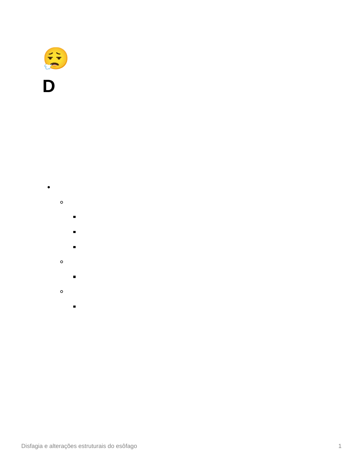 Disfagia e alterações estruturais do esôfago 1 � Disfagia e alterações estruturais do esôfago ALTERAÇÕES ESTRUTURAIS Divertículos esofágicos topografia Zenker mais comum localizado na região cervical é localizado acima do EES (mm. cricofaringeo) Tração principalmente no 1/3 médio Diverticulo epifrênico supra diafragmáticos Disfagia e alterações estruturais do esôfago 2 tipos de diverticulos punção - (pseudodiverticulo) a força motriz que gera está dentro da luz; tração Divertículos de Zenker é um diverticulo de punção ou pseudodiverticulo na parede posterior da hipofaringe herniação de mucosa e submucosa apenas, sem camada muscular idosos normalmente tem dificuldade de deglutição por descoordenação e por alteração na musculatura cervical, o alimento fica represado na região acima do Esinfter esofagiano superior existe uma área de fraqueza muscular (triangulo de Killian) por onde ocorre herniação de mucosa e submucosa, SEM MUSCULAR acumula alimentos dentro dessa saculação Disfagia e alterações estruturais do esôfago 3 Quadro clinico homem, idoso disfagia cervical, NO INICIO DA DEGLUTIÇÃO abaulamento cervical no inicio da deglutição tosse, engasgo hálito fétido respiração ruidosa broncoaspiração - é a principal complicação Diagnóstico Esofagograma contrastrado - maior acurácia!!! mostra área sacular cheia de contraste EDA tem baixa acurácia Disfagia e alterações estruturais do esôfago 4 Tratamento - para pacientes sintomáticos cricomiotomia (disseca as fibras do cricofaríngeo com exposição do saco) endoscópica - ⭐ diverticulos < 2cm ou até 4cm com risco cirurgico alto (pra quase todo mundo!!) cirúrgico (diverticulectomia ou diverticulopexia) - diverticulos > 2cm 💡 o diverticulo de zenker é o unico que pode ser tratado endoscopicamente Diverticulo de tração mecanismo de tração provocado por massas de processos inflamatórios (tuberculose, linfomas, micoses profundas) promovem fibrose e tracionam o esôfago formando DIVERTICULOS VERDADEIROS (mucosa, submucosa e muscular) ocorre no 1/3 médio quadro clinico pequenos → oligossintomáticos + disfagia intermitente Disfagia e alterações estruturais do esôfago 5 grandes → muito sintomáticos tratamento cirurgico para os diverticulos sintomaticos maiores Divertículos epifrênicos supradiafragmático, no esôfago inferior diverticulo de punção (pseudodiverticulo) mecanismo: pulsão associados a distúrbio de motilidade , principalmente acalásia tratamento: expectante cirúrgico se grande e com repercussão Membranas e anéis Síndrome de Plummer vinson ou Paterson Kelly é a principal causa de membrana que cai na prova Disfagia e alterações estruturais do esôfago 6 anemia ferropriva, disfagia e finas membranas no esôfago proximal. Predomina em mulheres (80 a 90%) entre os 40 a 70 anos de idade Há evidências de aumento do risco de câncer de esôfago do tipo escamoso (CEC) nessa síndrome O tratamento consiste na reposição de ferro e, se necessário, na dilatação endoscópica das membranas. Anel de Schatzki é o principal anel esofágico que cai nas provas. É uma estrutura perfeitamente circular de tecido conjuntivo (fibroso), localizada no esôfago distal, na linha de transição entre o esôfago e o estômago (junção esofagogástrica). Acredita-se que o refluxo crônico provoque uma proliferação fibrótica que leva à formação do anel, quase sempre associado à hérnia de hiato por deslizamento. Acomete principalmente idosos, provocando uma típica DISFAGA INTERMITENTE para sólidos ou uma disfagia seletiva, apenas para determinados alimentos, como a “síndrome da churrascaria”, quando idosos ficam “entalados” quando ingerem pedaços grandes de carne. O diagnóstico é feito pela EDA ou por meio da esofagografia baritada, que evidencia um estreitamento súbito da luz do esôfago distal, normalmente associado a uma hérnia de hiato por deslizamento Disfagia e alterações estruturais do esôfago 7 Hérnias Tipo 1 (deslizamento) é a mais comum. junção esofagogástrica desliza em direção ao tórax, comprometendo a válvula antirrefluxo, e facilita a DRGE Boa parte é assintomática ou associa-se aos sintomas da DRGE + ULCERAS DE CAMERON, ANEMIA CRÔNICA . Tipo 2 (rolamento ou paraesofágica), ocorre quando apenas o fundo gástrico migra para o tórax, com preservação anatômica da junção esofagogástrica. Nesse caso, não há associação com DRGE. Essa hérnia é vista em pacientes idosos Tipo 3 é a hérnia mista (associação da tipo 1 com a tipo 2), sendo relativamente comum a presença de sintomas, como epigastralgia, desconforto pós- prandial, regurgitação alimentar e até disfagia. Tipo 4 (gigante) hiato é tão alargado que permite passar quase todo o estômago ou outras estruturas abdominais, risco alto de broncoaspiração e volvo gástrico, mas costuma ocorrer em pacientes com idade muito avançada, que acabam não sendo operados pela alta morbimortalidade. Disfagia e alterações estruturais do esôfago 8 O tratamento dos casos sintomáticos costuma ser (dieta e IBP), porém, quando os sintomas são refratários, e nas hérnias > 5 cm, considera-se o tto cirúrgico (fundoplicatura). e quase sempre é assintomática. Disfagia e alterações estruturais do esôfago 9 💡 preste atenção na radiografia em PA → visualiza nivel hidroaereo retrocardiaco Rotura do esôfago: Síndrome de Boerhaave A rotura espontânea é resultado de um barotrauma pósemético, ou seja, após esforços de vômitos repetitivos (incoercíveis) há perfuração aguda do esôfago, um quadro conhecido como síndrome de Boerhaave. O que ocorre é uma descoordenação durante episódios sucessivos de vômito, quando um esforço excessivo aumenta subitamente a pressão na luz do esôfago, sem que haja a abertura do músculo cricofaríngeo (EES) para aliviar essa pressão. A alteração estrutural aguda acontece no ponto de maior fragili