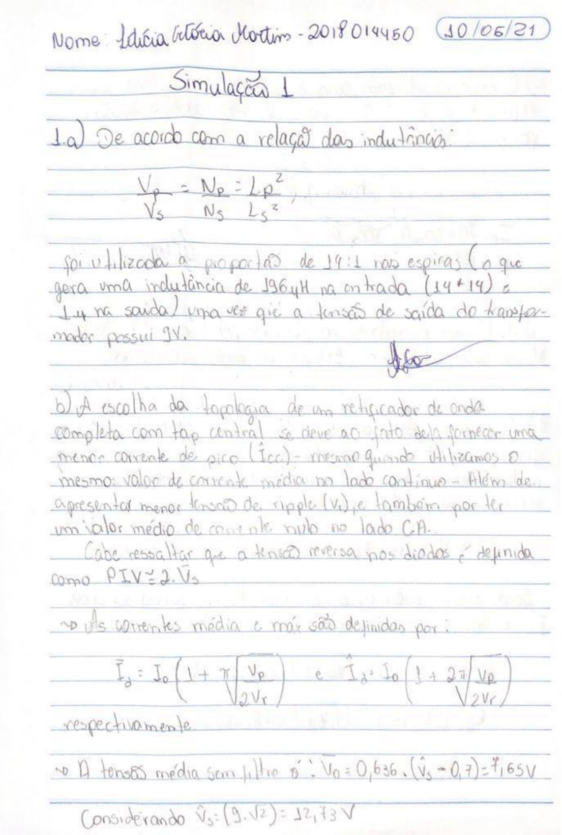 e) Simulação do circuito: Imagem 1 – Simulação retificador com regulador de tensão Zener Imagem 2 - Tensões Vc e Vo