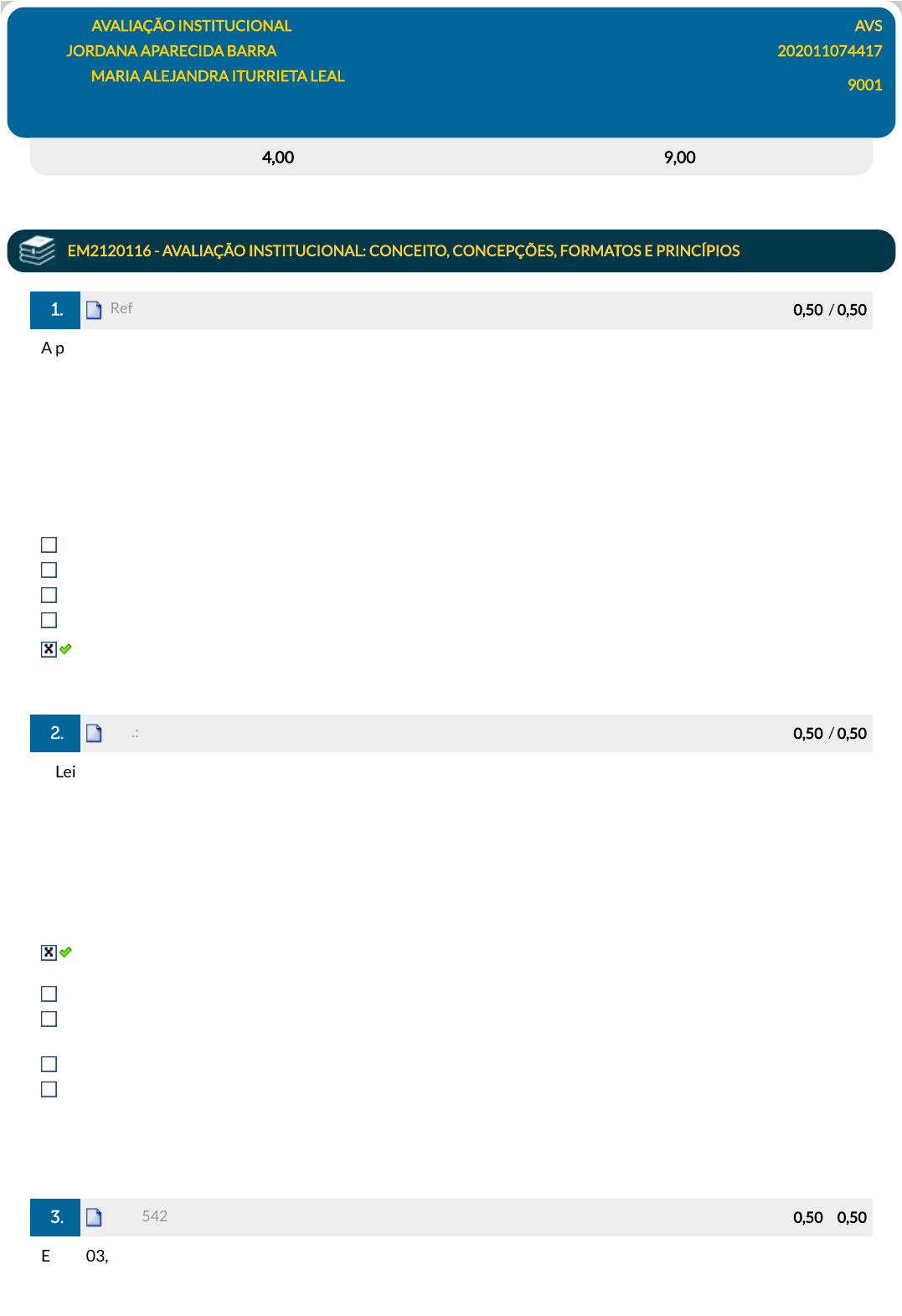 Disciplina: AVALIAÇÃO INSTITUCIONAL AVS