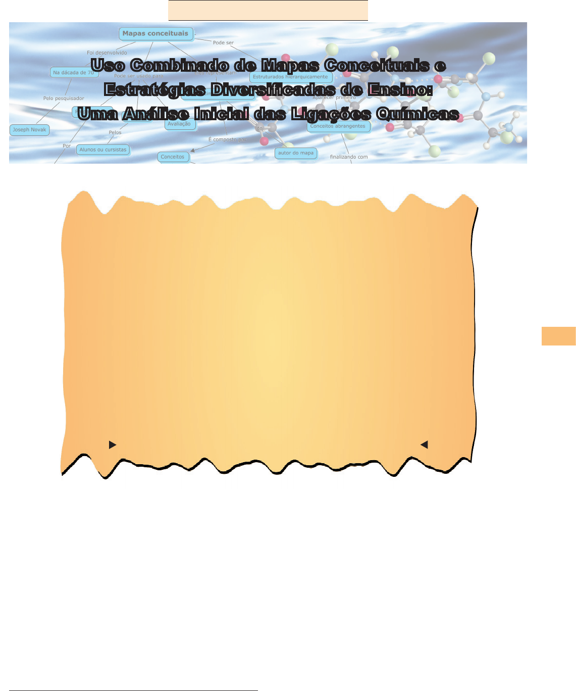 Uso Combinado de Mapas ConceituaisQUÍMICA NOVA NA ESCOLA 83 Vol. 34, N° 2, p. 83-91, MAIO 2012 Pesquisa em ensino A seção “Pesquisa no ensino de Química” inclui investigações sobre problemas no ensino de Química, com explicitação dos fundamentos teóricos e procedimentos metodológicos adotados na análise de resultados. Recebido em 06/08/2011, aceito em 16/03/2012 José Odair da Trindade e Dácio Rodney Hartwig Como consequência das dificuldades dos alunos relacionadas aos conceitos de maior abstração de química, utilizou-se, no presente trabalho, a concepção de aprendizagem significativa conforme a teoria de Ausubel. Daí, derivam-se os mapas conceituais que são diagramas bidimensionais, cujo objetivo é representar as relações entre os conceitos, por meio de proposições, em um determinado tópico. Podem ser utilizados como estratégias de ensino, avaliação, estudo, entre outros. Com a finalidade de minimizar as mencionadas dificuldades, organizou- se um minicurso referente a ligações químicas, que foi aplicado em uma turma de 1ª série do ensino médio no interior do estado de Minas Gerais. Nas aulas, os estudantes entraram em contato com estratégias diversificadas de ensino: atividades de informática (realidade virtual-3D, animações, vídeos), modelagem (modelos plásticos, bexigas) e material instrucional (apostila), organizado a partir da Teoria de Ausubel. Como forma de avaliação da aprendizagem, recorreu-se à elaboração de mapas conceituais. Ao término, os alunos responderam a um questionário de avaliação da metodologia de ensino. As maiores dificuldades estiveram relacionadas à ausência de exemplos nos mapas e à correta construção de proposições, apoiadas em palavras de ligação apropriadas. Com este trabalho, foi possível constatar que a estratégia dos mapas conceituais é um recurso válido para sondar em profundidade as limitações e potencialidades de aprendizagem dos alunos, mesmo em terrenos muito áridos, onde predomina a falta de motivação para a aprendizagem significativa e a ausência de recursos materiais. Por outro lado, houve uma grande aceitação dos alunos por atividades de informática e modelos, mas menor pela elaboração dos mapas. É possível que essa resistência seja uma consequência dos bons resultados anteriores em abordagens de aprendizagem mecânica, porque tornam os estudantes inseguros na mudança para estratégias de aprendizagem significativa, visto que consideram um desafio tomarem a responsabilidade pela construção dos seus próprios significados, embora compensadora para alguns aprendizes. aprendizagem significativa, mapas conceituais, realidade virtual no ensino de química Uso Combinado de Mapas Conceituais e Estratégias Diversificadas de Ensino: Uma Análise Inicial das Ligações Químicas Sabe-se que os estudantes têm pouca motivação para o estudo de química, uma vez que atribuem a essa disciplina um caráter memorístico, tratando-a como algo desestimulante e sem sentido (Mortimer et al., 1994). Ao se observar esse contexto, verifica-se a importância da criação de recursos didáticos modernos, que estejam desvinculados dos métodos tradicionais de ensino: a ve- lha lousa aliada a muita decoreba (Fonseca, 2001). Uma possibilidade é a realidade virtual, ambiente gráfico gerado por recursos computacionais de aparência realística, no qual o usuário pode navegar e interagir em três dimensões (Sfalcin e Rogado, 2011). Dessa forma, este trabalho tem o papel de proporcionar condições favoráveis à aprendizagem significativa – na moldura teórica de Ausubel –, cujo foco é o armazenamen- to organizado de informações na mente do indivíduo que aprende, ou seja, uma aprendizagem com compreensão e duradoura e, mais claramente dizendo, uma aprendizagem com entendimento, acompanhada por aquisição e reten- ção de estruturas estáveis e organizadas de conhecimento. Nas palavras de Ausubel et al. (1980, p. 10), a apren- dizagem significativa “consiste na aquisição duradoura e memorização de uma rede complexa de ideias entre- laçadas que caracterizam uma estrutura organizada de conhecimento que os alunos devem incorporar em suas estruturas cognitivas”. Esse processo envolve a interação da nova informação com uma teia de conhecimento espe- cífica, existente na estrutura cognitiva do estudante, a qual Ausubel define como subsunçor, que é, nessa concepção, um conceito facilitador ou inseridor para um novo assun- to, ou seja, o conhecimento prévio que será ativado para facilitar a inserção de uma nova informação. Uso Combinado de Mapas ConceituaisQUÍMICA NOVA NA ESCOLA 84 Vol. 34, N° 2, p. 83-91, MAIO 2012 Ausubel et al. (1980) definem ainda subsunçor como “esteio” ou “pilar” como um conceito de sustentação, apoio, base, auxílio, suporte ou sustento para a ancoragem (fixação) de um novo conheci- mento que se deseja reter. Para o desenvolvimento de subsunçores, Ausubel et al. (1980) recomendam o uso de or- ganizadores prévios, que são ma- teriais introdutórios apresentados antes do assunto a ser aprendido. Segundo os autores, a principal função do organizador prévio é a de servir de “ponte cognitiva”, isto é, de ligação, elo, entre os conhecimentos anteriores do aprendiz e o que ele deve saber, a fim de que o novo assunto possa ser aprendido de forma significativa. O uso desses organizadores, portanto, é uma estratégia para trabalhar a estrutura cognitiva e, assim, facilitar a aprendizagem significativa. Uma das condições para a ocorrência da aprendiza- gem significativa é que o material a ser aprendido seja potencialmente significativo. Essa condição implica que o aprendiz tenha disponíveis, em sua estrutura cognitiva, os subsunçores adequados. A outra condição é que ele manifeste disposição positiva para relacionar os novos co- nhecimentos aos prévios para que a aprendizagem possa ser significativa. 