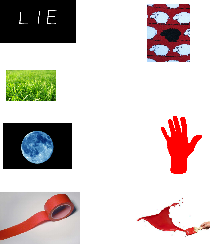 Colour idioms Part 1 The pictures below illustrate colour idioms. Can you guess them? white lie black sheep green grass / greener grass Blue moon red hand /red-handed red tape paint something red Part 2 Fill in the gaps with words from part 1 to make colour idioms. Do you know their meaning? 1. He realized that the GRASS is always greener on the other side when he saw that his new job wasn’t perfect and had its own problems too. (others always seem to be in a better situation than you, although it might not be true) 2. My brother only rings home once in a blue MOON I wish he would ring our parents more often. (very rarely) 3. The man is the BLACK sheep in his family and is the only member who has not had a successful career and life. (a person who brings shame to their family) 4. The manager caught the new employee RED-handed taking money out of the box. (catch somebody in the act of doing something bad) 5. I want to start a new business but the red TAPE involved is very frustrating. (bureaucracy) 6. When my cousin came to visit us we decided to go out and paint the town RED. (to go out and celebrate) 7. I told my boss a white LIE when he asked me whether his presentation had gone well. (untruth told to spare feelings or out of politeness) Part 3 QUESTIONS: 1. Do you think it’s true that the grass is always greener on the other side? 2. Why do people become black sheep in their families? 3. Do you think white lies are harmless? 4. When was the last time you painted the town red? 5. What would you do if you caught somebody stealing from you red-handed? 6. Is the red tape in your country difficult to live with?