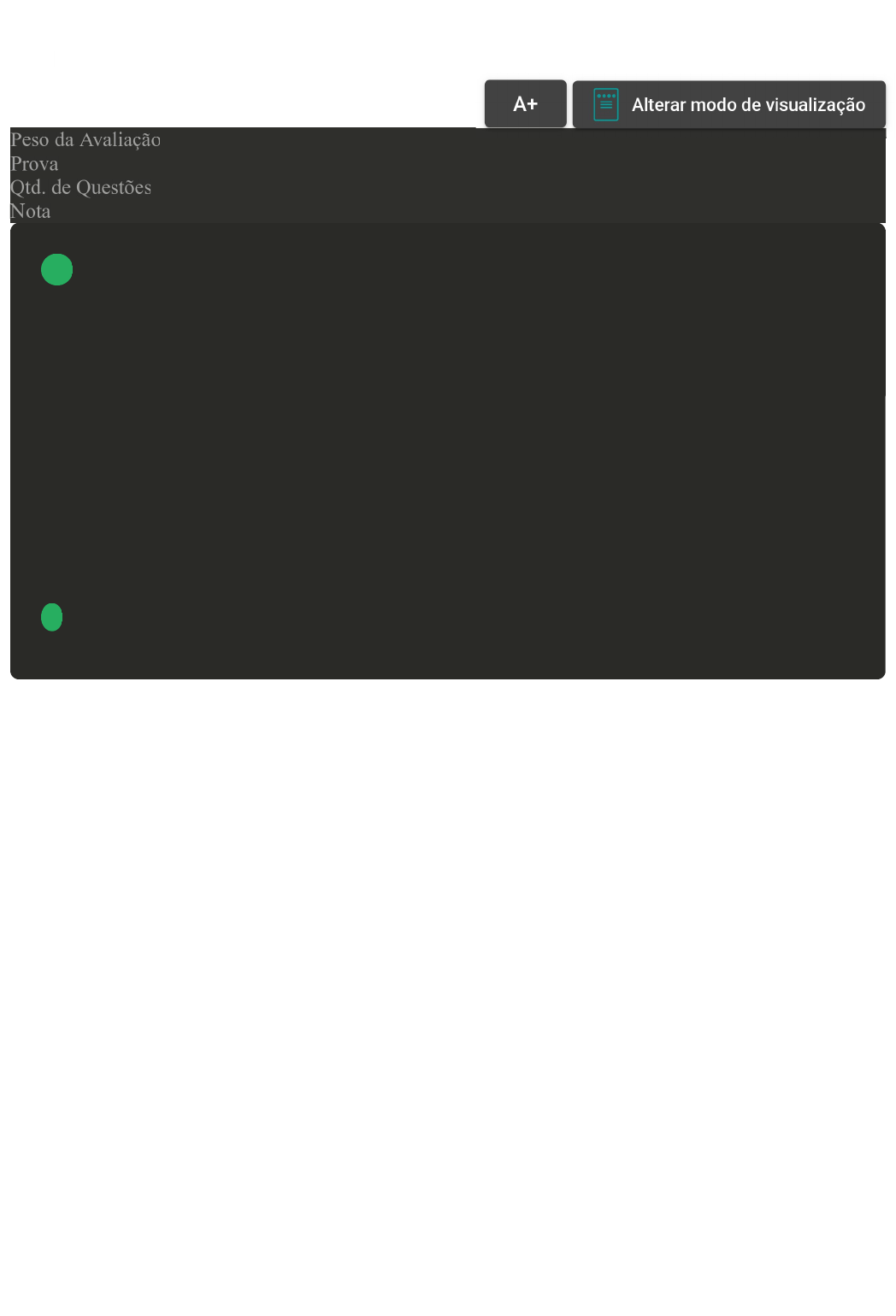 Prova Impressa GABARITO | Avaliação da Disciplina (Cod.:644828) 10,00 67506401 20 9,50 A avaliação acompanha o processo de aprendizagem. Avalia-se para saber como intervir na aprendizagem e não somente para classificação em situação de aprovação ou reprovação. MASETTO, M. T. Competência pedagógica do professor universitário. 2. ed. São Paulo: Summus, 2012, (adaptado). Acerca da concepção de Freinet sobre avaliação, assinale a alternativa correta: A Trata-se de um meio que busca constantemente dados para oportunizar um feedback. B É um processo em construção contínuo, que analisa se o aluno está adquirindo as habilidades necessárias. C É um exercício que objetiva reproduzir com precisão um comportamento rumo ao objetivo almejado. D Trata-se de um processo que utiliza técnicas de acompanhamento da aprendizagem para direcionar ao objetivo desejado. 1 Avaliação da Disciplina https://ava2.uniasselvi.com.br/subject/grades-and-tests/answer-book/... 1 of 10 28/06/2023, 00:51 O professor ao planejar e definir seus objetivos, precisa agir com sensibilidade e selecionar conteúdos que sejam interessantes para seus alunos. Sobre as características do plano de aula, assinale V para verdadeiro e F para falso nas afirmações que seguem: ( ) É mais restrito do que o plano da disciplina, pois contempla o detalhamento de uma aula específica. ( ) É um recurso primordial para o professor organizar os conteúdos que pretende abordar e as atividades que serão desenvolvidas. ( ) É onde são definidos quais os objetivos que se pretende atingir abordando determinado conteúdo. Assinale a alternativa que apresenta a sequência correta de respostas: A V – V – V. B V – V – F. C V – F – V. D F – V – V. A aula expositiva certamente é uma das estratégias mais utilizadas por docentes do ensino superior. Ela consiste na exposição e explicação de informações aos alunos. Na perspectiva dialética, uma aula expositiva deve ser dialogada, assim haverá parceria entre o professor e aluno no enfrentamento do conteúdo. Sobre os requisitos das aulas expositivas para atingir sesu objetivos, assinale V para verdadeiro e F para falso nas aformações que seguem: ( ) Bem planejadas e organizadas. ( ) Grande quantidade de conteúdo. ( ) Fomentar a participação/integração dos alunos. Assinale a alternativa que apresenta a sequência correta de respostas: A V – V – V. B F – V – V. C V – F – V. D V – V – F. 2 3 4 Avaliação da Disciplina https://ava2.uniasselvi.com.br/subject/grades-and-tests/answer-book/... 2 of 10 28/06/2023, 00:51 Masetto (2012) afirma que toda disciplina faz parte de uma grade curricular específica e é planejada de acordo com cada curso. Por isso, é importante compreender que disciplinas com o mesmo nome podem ter programas diferentes conforme o curso em que estão inseridas. Esse conhecimento permite ao professor planejar a disciplina para contribuir mais eficientemente com a formação profissional do aluno. MASETTO, M. T. Competência pedagógica do professor universitário. 2. ed. São Paulo: Summus, 2012 (adaptado). Quanto à origem das disciplinas, assinale V para verdadeiro e F para falso nas afirmações que seguem: ( ) Ocorreu no início da idade moderna. ( ) Aristóteles criou divisões ou campos do conhecimento. ( ) Os conteúdos foram criados a partir das experiências dos alunos. Assinale a alternativa que apresenta a sequência correta de respostas: A V – V – V. B V – V – F. C V – F – V. D F – V – V. A atividade docente exige muito mais do que uma especialização na área. Para que o desempenho profissional seja eficaz, é necessário associar o conhecimento especializado às habilidades pedagógicas.Além disso, o professor precisa ser um conscientizador, questionador, mediador e formador de opiniões críticas-reflexivas. Sobre o objetivo da tendência progressista crítico social dos conteúdos, assinale a alternativa que apresenta a resposta correta: A Transmitir conteúdos para os alunos assimilarem, resultando no saber criticamente reelaborado. B Criar estratégias para a produção e construção do conhecimento, resultando em indivíduos transformadores com uma visão crítica da sociedade. C Organizar o processo para que os alunos possam adquirir determinadas habilidades, atitudes e conhecimentos específicos, integrando-se ao meio industrial. D Fornecer os instrumentos institucionais essenciais de participação dos alunos na sociedade. A avaliação tem sido utilizada para medir os conhecimentos dos alunos durante um determinado período de aula. É considerado um instrumento indispensável no ambiente escolar, para medir qualitativa e quantitativamente as atitudes e aptidões dos acadêmicos. SIEGEL, Norberto. Metodologia do ensino superior. Indaial: Grupo UNIASSELVI, 2016 (adaptado). 5 6 Avaliação da Disciplina https://ava2.uniasselvi.com.br/subject/grades-and-tests/answer-book/... 3 of 10 28/06/2023, 00:51 Acerca da avaliação objetiva, assinale V para verdadeiro e F para falso nas afirmações que seguem: ( ) Proporciona a interpretação, reflexão e analise do conteúdo apresentado. ( ) O enunciado deve ser contextualizado, facilitando a compreensão. ( ) Deve repetir fielmente o conteúdo do material estudado. ( ) O vocabulário deve ser adequado ao curso/disciplina. Assinale a alternativa que apresenta a sequência correta de respostas: A V – V – V – V. B V – F – F – V. C V – V – F – F. D V – V – F – V. No planejamento escolar o que se planeja são atividades de ensinar e aprender, determinadas por intenções educativas que envolvem objetivos, princípios, atitudes, conteúdos e comportamentos dos profissionais que desenvolvem suas ações no chão da escola. Por essa razão, o planejamento escolar nunca será individual, sempre será uma prática conjunta e participativa envolvendo todos no plano que a escola deseja elaborar. EVANGELISTA, I. A. S. Pl