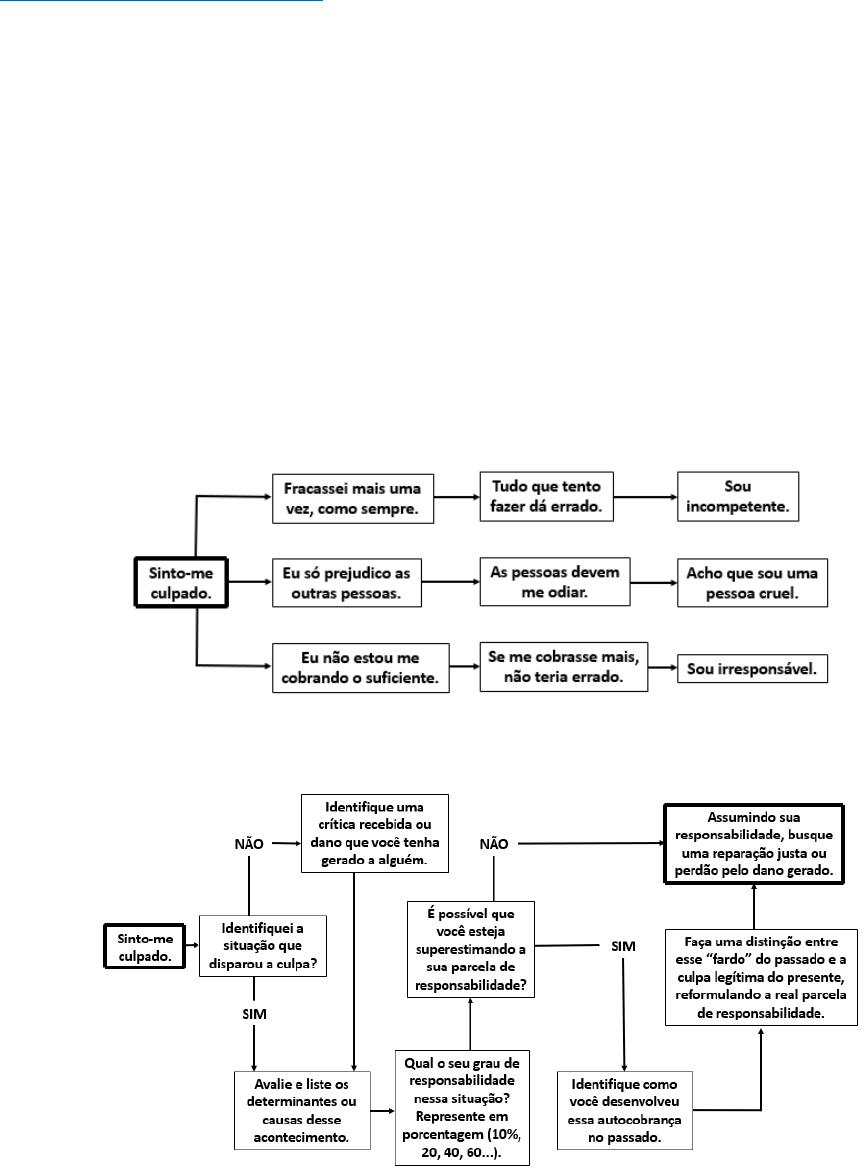 www.inteligenciapsicologica.com.br Material exclusivo – Professores Lincoln Poubel e Pedro Rodrigues TÉCNICA: Fluxograma cognitivo ABORDAGEM: Os fluxogramas cognitivos ajudam na análise dos desdobramentos de raciocínio que podemos ter. Em outras palavras, é uma forma de representar graficamente como pensamentos desencadeiam outros. Podemos construir um fluxograma desse para o atual raciocínio que passa pela sua cabeça. Se identificarmos a necessidade de revisar cognições distorcidas ou improdutivas que estejam te sabotando, podemos reestruturar o fluxograma para formar uma nova mentalidade. o Modelo de fluxograma cognitivo baseado em distorções o Modelo de fluxograma cognitivo orientado terapeuticamente http://www.inteligenciapsicologica.com.br/