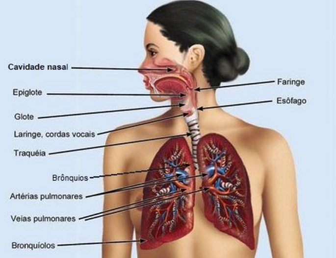 Sistema respiratório O sistema respiratório é a rede de órgãos e tecidos que ajudam você a respirar. Inclui as vias respiratórias, os pulmões e os vasos sanguíneos. Os músculos que alimentam seus pulmões também fazem parte do sistema respiratório. Essas partes trabalham juntas para mover o oxigênio por todo o corpo e limpar gases residuais como o dióxido de carbono. O que faz o sistema respiratório? O sistema respiratório tem muitas funções. Além de ajudá-lo a inspirar (inspirar) e expirar (expirar), ele: • Permite que você fale e cheire. • Traz o ar para a temperatura corporal e hidrata-o até o nível de umidade de que seu corpo necessita. • Fornece oxigênio para as células do seu corpo. • Remove gases residuais, incluindo dióxido de carbono, do corpo quando você expira. • Protege suas vias respiratórias de substâncias nocivas e irritantes. Quais são as partes do sistema respiratório? O sistema respiratório tem muitas partes diferentes que trabalham juntas para ajudá-lo a respirar. Cada grupo de peças possui muitos componentes separados. Suas vias respiratórias fornecem ar para seus pulmões. Suas vias aéreas são um sistema complicado que inclui: • Boca e nariz: aberturas que puxam o ar de fora do corpo para o sistema respiratório. • Seios da face: áreas ocas entre os ossos da cabeça que ajudam a regular a temperatura e a umidade do ar que você inala. • Faringe (garganta): tubo que fornece ar da boca e do nariz para a traquéia (traqueia). • Traqueia: passagem que liga a garganta aos pulmões. • Tubos brônquicos: tubos na parte inferior da traqueia que se conectam a cada pulmão. • Pulmões: dois órgãos que removem o oxigênio do ar e o passam para o sangue. • De seus pulmões, sua corrente sanguínea leva oxigênio a todos os seus órgãos e outros tecidos. • Os músculos e ossos ajudam a mover o ar que você inspira para dentro e para fora dos pulmões. Alguns dos ossos e músculos do sistema respiratório incluem: • Diafragma: músculo que ajuda seus pulmões a puxar o ar e empurrá-lo para fora • Costelas: ossos que circundam e protegem seus pulmões e coração • Quando você expira, seu sangue carrega dióxido de carbono e outros resíduos para fora do corpo. Outros componentes que atuam com os pulmões e vasos sanguíneos incluem: • Álvéolos: pequenos sacos de ar nos pulmões, onde ocorre a troca de oxigênio e dióxido de carbono. • Bronquíolos: pequenos ramos dos brônquios que conduzem aos alvéolos. • Capilares: vasos sanguíneos nas paredes dos alvéolos que movem oxigênio e dióxido de carbono. • Lobos pulmonares: seções dos pulmões - três lobos no pulmão direito e dois no pulmão esquerdo. • Pleura: sacos finos que circundam cada lobo pulmonar e separam seus pulmões da parede torácica. • Alguns dos outros componentes do seu sistema respiratório incluem: • Cílios: Pêlos minúsculos que se movem em ondas para filtrar a poeira e outros irritantes das vias respiratórias. • Epiglote: retalho de tecido na entrada da traquéia que se fecha quando você engole para manter alimentos e líquidos fora das vias respiratórias. • Laringe (caixa de voz): órgão oco que permite falar e fazer sons quando o ar entra e sai. Que condições afetam o sistema respiratório? Muitas condições podem afetar os órgãos e tecidos que constituem o sistema respiratório. Alguns se desenvolvem devido a irritantes que você respira no ar, incluindo vírus ou bactérias que causam infecções. Outros ocorrem como resultado de doenças ou envelhecimento. Condições que podem causar inflamação (inchaço, irritação e dor) ou afetar o sistema respiratório incluem: • Alergias: A inalação de proteínas, como poeira, mofo e pólen, pode causar alergias respiratórias em algumas pessoas. Essas proteínas podem causar inflamação nas vias respiratórias. • Asma: Um distúrbio crônico (de longa duração), a asma causa inflamação nas vias respiratórias que podem dificultar a respiração. • Infecção: as infecções podem causar pneumonia (inflamação dos pulmões) ou bronquite (inflamação dos brônquios). As infecções respiratórias comuns incluem gripe ( influenza ) ou resfriado. • Doença: distúrbios respiratórios incluem câncer de pulmão e doença pulmonar obstrutiva crônica (DPOC) . Essas doenças podem prejudicar a capacidade do sistema respiratório de distribuir oxigênio por todo o corpo e filtrar os gases residuais. • Envelhecimento: a capacidade pulmonar diminui à medida que você envelhece. • Danos: Danos ao sistema respiratório podem causar problemas respiratórios. Como posso manter meu sistema respiratório saudável? Ser capaz de limpar o muco dos pulmões e das vias aéreas é importante para a saúde respiratória. Para manter seu sistema respiratório saudável, você deve: • Evite poluentes que podem danificar suas vias respiratórias, incluindo fumo passivo, produtos químicos e rádon (um gás radioativo que pode causar câncer). Use uma máscara se você for exposto a vapores, poeira ou outros tipos de poluentes por qualquer motivo. • Faça uma dieta saudável com muitas frutas e vegetais e beba água para se manter hidratado • Pratique exercícios regularmente para manter os pulmões saudáveis. • Previna infecções lavando as mãos com frequência e tomando uma vacina contra a gripe todos os anos. Quando devo ligar para um provedor de saúde sobre um problema com meu sistema respiratório? Entre em contato com seu provedor se tiver dificuldade para respirar ou dor. Seu provedor ouvirá seu tórax, pulmões e batimento cardíaco e procurará sinais de problemas respiratórios, como infecção. Para ver se seu sistema respiratório está funcionando como deveria, seu médico pode usar exames de imagem, como tomografia computadorizada ou ressonância magnética. Esses testes permitem que seu médico veja inchaço ou bloqueios em seus p