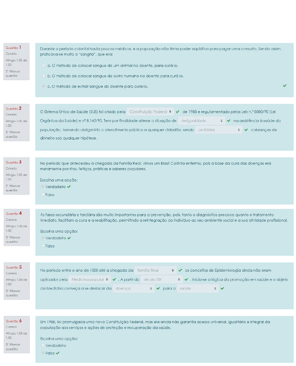 Epidemiologia 1 Políticas de Saúde no Brasil e Definições Teste seus conhecimentos 100% _