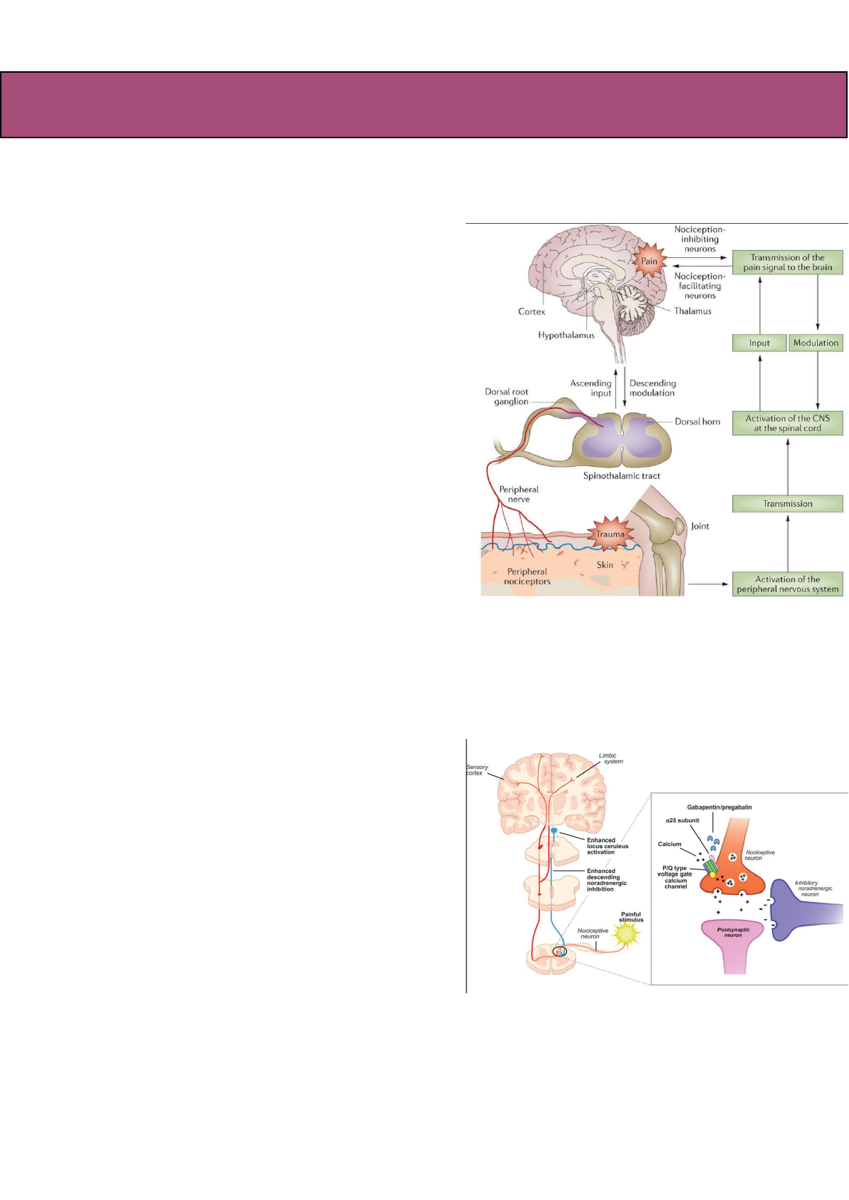 Farmacologia Tratamento farmacológico da dor neuropática: A dor pode ser definida como uma experiência sensorial e emocional desagradável, associada a uma lesão real ou potencial. A dor neuropática define-se como a dor causada por uma lesão ou doença do sistema nervoso somatossensorial. → A dor neuropática age de uma forma diferente, pois não é uma típica dor de componente sensorial, ela também leva em consideração o emocional → Há duas vias para conter a dor neuropática, a via ascendente e a modulação da via descendente As causas comuns que provocam danos neuronais e subsequentemente a dor são variáveis. Doenças metabólicas, trauma, compressão de nervos, infecção, isquemia, cirurgia, inflamação, doenças degenerativas, fármacos, entre outros. Os quadros clínicos mais comuns centram-se na polineuropatia diabética; neuralgia pós-herpética; neuralgia do trigêmeo; neuropatia por HIV; dor neuropática central (pós-AVC, lesão medular ou esclerose múltipla); dor neuropática cancerígena; neuropatías por encarceramento (túnel cárpico e radiculopatias); e neuropatia do membro fantasma. → A fibromialgia possui polêmicas se realmente está enquadrado como dor neuropática, mas o tratamento é para dor neuropática → Há um dano tecidual, ocorre estimulação das fibras nociceptivas pelo dano e pelas prostaglandinas, isso excita o neurônio de segunda ordem, no corno posterior da medula - e segue a transmissão da dor, é simples resolver pois podemos apenas inibir as PGE’s → Na dor neuropática é mais difícil, pois não há uma lesão real, uma inflamação real, por mais que faça muito tempo que o dano ocorreu, haverá um estímulo contínuo e sinalização de dor. → O dano potencial na fibra nervosa ascendente recebe informações do cérebro, glutamato e subs p são liberados pelas fibras ascendentes → As fibras descendentes liberam noradrenalina, serotonina, etc. Se ligam a neurônios inibitórios e fazem a modulação da dor → Essa fibra nervosa aferente em dor neuropática, está sempre estimulada, ela chega a um botão axônico que libera neurotransmissores → Essa fibra precisa despolarizar, para isso entra NA +. ela fica cheia de cargas positivas e por isso a voltagem muda, no neurônio existem canais chamados canais voltagem dependentes, que são canais de Ca, então, quando a voltagem muda entra cálcio. → O Ca+ promove a exocitose, que culmina na liberação do neurotransmissor → Normalmente, nessa neurotransmissão de primeira ordem são liberados glutamato e substância P, com predominância do glutamato → O glutamato e a substância P estimulam os receptores da fibra pós sináptica (neurônio de segunda ordem), ainda é ascendente, e a dor segue seu trajeto até o SNC COMO PODEMOS TRATAR ESSA DOR NEUROPÁTICA? A duas opções, atuar sobre a via ascendente ou a modulatória, SEMPRE atuar sobre a ascendente é melhor VIA ASCENDENTE → Nesse caso temos duas opções: a gabapentina e a pregabalina, eles bloqueiam os canais de Ca. Essencialmente a resposta farmacológica deveria bloquear a fibra ascendente de primeira e segunda ordem, mas ele acaba bloqueando outros canais de cálcio de outros neurônios com várias outras funções no cérebro, então o SNC fica deprimido →A outra opção terapêutica é inibir os canais de Na +, a primeira escolha de tratamento aqui é a carbamazepina - o efeito de depressão do SNC é maior (redução da atividade neuronal). Se bloquear os canais de Na a célula fica vários momentos em que ela não despolariza, e se ela não faz isso, há intervalos sem a liberação de mediadores da dor → O problema é que TODAS as fibras nervosas dependem de canais de Na, e todas elas sofrem ação da carbamazepina → O paciente fica com prejuízos, de memória, de funções cognitivas etc. Por que o cérebro está agindo de forma deprimida → O bloqueio de canais de Na+ causam maior depressão que o bloqueio de canais de Ca, e também possui maior resposta terapêutica, sendo reservados a casos de dores muito altas, a primeira escolha sempre será tentar com os canais de Ca → Alguns casos em que o paciente está tendo muitos efeitos adversos, às vezes se intercala bloqueadores de canais de Ca e Na+, não é uma escolha racional, mas pode se fazer necessário VIA MODULATÓRIA (descendente) → Originalmente o organismo já está tentando se defender da dor, na fibra pré existem diferentes tipos de receptores: Alfa 2, 5HT1, CB1, e receptores opióides - descendentes → Há fibras: serotonérgicas, noradrenérgicas, dopaminérgicas e os receptores CB1 e opióides → Cada vez que a serotonina ativa o receptor 5HT1, esse receptor do tipo 1 está acoplado a uma proteína G inibitória, isso significa que quando a serotonina se liga, é mandando um aviso para as vesículas sinápticas liberarem menos neurotransmissores álgicos (glutamato e substância P) → A noradrenalina se liga a receptores alfa 2, e faz a mesma ação de mandar as vesículas sinápticas a liberarem menos neurotransmissores álgicos → É aqui que entram os antidepressivos para tratamento da DOR → A principal forma de remover neurotransmissores da fenda sináptica é a recaptação, o transportador da noradrenalina é o NAT, serotonina o SET e dopamina o DAT → A noradrenalina liberada pelo organismo acaba sendo recaptada, então uma forma de potencializar a via modulatória é usando antidepressivos, pois os antidepressivos são bloqueadores dos transportadores → Vai ter + noradrenalina, serotonina, dopamina etc. E mais chance deles se ligarem aos receptores Alfa1, 5HT1, e maior estímulo para a fibra aferente liberar menos neurotransmisores álgicos → Uma pessoa com dor crônica tende a desenvolver depressão, e muitas vezes esse paciente tem essa resposta tão intensa da dor, até pelo seu estado depressivo. Maior parte dos pacientes com dor neuropática eles estarão usando antidepressivos (agindo na ves