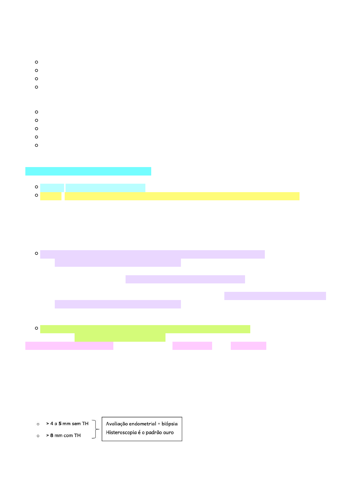 MED 2022 GINECOLOGIA 127 LETICIA ARANEGA DALARI SUA, ADENOMIOSE, ENDOMETRIOSE E ANTICONCEPÇÃO Sangramento Uterino Anormal • Causas estruturais P: pólipo A: adenomiose L: leiomioma M: maligna - CA, hiperplasia • Causas não estruturais C: coagulopatia O: ovulatória E: endometriais - DIP, endometrite I: iatrogênica - farmacológicas (spot no uso do ACO por exemplo) N: não classificada Perguntas-chave • Origem: 1° exame a ser realizado: exame especular!!! • Idade: causas de acordo com faixa etária Neonatal: privação de estrogênio materno. Geralmente autolimitado e imperceptível Infância: corpo estranho, infecção inespecífica, trauma. Sempre excluir abuso sexual, neoplasias (sarcoma botrioide (sangramento em cacho de uva - sarcoma de vulva) / tumor de ovário secretor de estrogênio (pseudo- puberdade precoce / rabdomiosarcoma (tumor de vagina)) - corpo estranho pode causar corrimento. A infecção é uma inespecífica, que é a mais comum na infância - vaginite inespecífica. O trauma que as bancas mais gostam é a queda a cavaleiro (queda de bicicleta), lembrar que no trauma acidental é improvável que penetre o canal vaginal - prestar atenção no caso de abuso, a criança vai estar assustada, não deixa examinar. Qualquer suspeita de abuso pedir ajuda para serviço social ou médico mais experiente. Não liberar paciente com suspeita de abuso. Adolescência: sangramento uterino disfuncional (anovulatório), sangramento na gestação - Até 2 anos da menarca: imaturidade do eixo HHO. Geralmente autolimitado, se resolve com a maturidade do ciclo. - Outras causas: gestação, SOP, infecção específica (IST), coagulopatia (questões sobre coagulopatias geralmente tem ciclo regular, apresentam quadros dramáticos, que necessitam de hospitalização, transfusão, evoluem para instabilidade hemodinâmica e tem ciclos regulares!! As mais comuns são Doença de Von Willebrand e Púrpura trombocitopênica idiopática. Pode-se usar ACO no tto. Nas adolescentes o diagnóstico de SOP é confuso, pois a irregularidade pode acontecer por imaturidade do eixo HHO, e aqui o ideal é reavaliar em 2 anos o diagnóstico, pois a anovulação nos 2 primeiros anos do menacme pode ser por imaturidade e não SOP Adultas: sangramento uterino disfuncional (anovulatório), sangramento da gestação. - Outras: infecção específica (IST), neoplasias (benignas (miomas por exemplo) e malignas) • Pós-menopausa: atrofia endometrial (30% / principal causa), terapia hormonal (30%), CA endométrio (tipo 1) - se questão não falar que usa TH marcar atrofia • Pós coito (sinusorragia): cervicite, CA colo, lesão vaginal • Menacme: sexualmente ativa sem contraceptivo eficaz: sempre pedir beta-hCG • Medicamento: escape do contraceptivo, TH na pós-menopausa • Intrauterino: avaliar USGTV (se ao passar o espéculo e o sangramento estiver vindo da cavidade uterina). USGTV • Endométrio suspeito após menopausa Acima de 8mm mesmo com TH não há justificativa pois a quantidade de estrogênio é baixa. Histeroscopia é padrão ouro - temos também curetagem ambulatorial (Pipele), curetagem em CC… MED 2022 GINECOLOGIA 128 LETICIA ARANEGA DALARI Se mesmo com histeroscopia não achar a causa, excluir gravidez e estabilizar paciente hemodinamicamente, depois seguir para medicação. Estrogênio em alta dose é o que para sangramento - se com dose alta não parar de sangrar, o diagnóstico está errado. Manejo SUA agudo • Excluir gravidez e realizar estabilização hemodinâmica Tratamento medicamentoso: • Tratamento hormonal o Estrogênios equinos conjugados (EEC - Premarim): 1,25 mg VO, de 6/6 horas por 21 dias + AMP 10 dias (tem que parar em 48h) - AMP - acetato de medroxiprogesterona o ACO (que tenha 30 a 35 mcg de etinilestradiol): 1 cp 3x/dia até parar sangramento (mínimo 48 horas) e após, 1 cp/dia por 21 dias • Não hormonal o Antifibrinolítico (Transamin) ou AINE - não é tão bom e não para tão rápido Sangramentos na 1ª metade da gestação mais intenso: abortamento inevitável, incompleto e mola. Pólipo • Hiperplasia focal, projeção do endométrio, tem origem no endométrio • Cervical: sinusorragia • Endometrial: maioria assintomáticos. São achados ocasionais de USG e histeroscopia - imagem hiperecogênica • Tratamento o Polipectomia histeroscópica o Assintomáticos: pode acompanhar Mioma • Nódulo que cresceu no miométrio, é um tumor de musculatura lisa. • Maioria assintomáticos • Não fazer nada para miomas que não causam nada Classificação FIGO • Submucoso: 0 (pediculado) → 1 → 2 o Pode justificar sangramento • Intramural: 3 → 4 (só intramural) o Pode justificar sangramento • Subseroso: 5 → 6 → 7 (pediculado) o NUNCA pode justificar sangramento • Obs.: 8: mioma cervical e parasita - não está no corpo do útero Zero é o mais para dentro Sete é o mais para fora 2-5 é aquele que pega todas as paredes - trata por laparoscopia Mioma pediculado (0 e 7) não pode tratar com embolização MED 2022 GINECOLOGIA 129 LETICIA ARANEGA DALARI Diagnóstico • USG: nódulo hipoecoico • Quando pedir RM? o Antes de algumas cirurgias o Antes de embolização: avalia distância serosa (perfuração) Tratamento • Sintoma x desejo de gestação • Assintomática: não tratar • Sintomática: (se intramural ou submucoso – justificam sangramento) o Sintomas leves a moderados, com mioma pequeno: expectante, tratamento clínico (tratamento hormonal não resolve mioma, mas pode diminuir sangramento. Geralmente é indicado para mulheres na perimenopausa) o Sintoma intenso e nulípara: miomectomia (preferir video à laparotomia) o Sintoma intenso e multípara: histerectomia. Obs.: se mioma submucoso, faz somente miomectomia histeroscópica, mesmo se multípara. Obs.: remédio resolve mioma? Não! - Análogo de GnRH diminui o tumor e anemia antes de operar MAS não pode utilizar por muito tempo pois ele bloqueia o eixo causando sintomas d