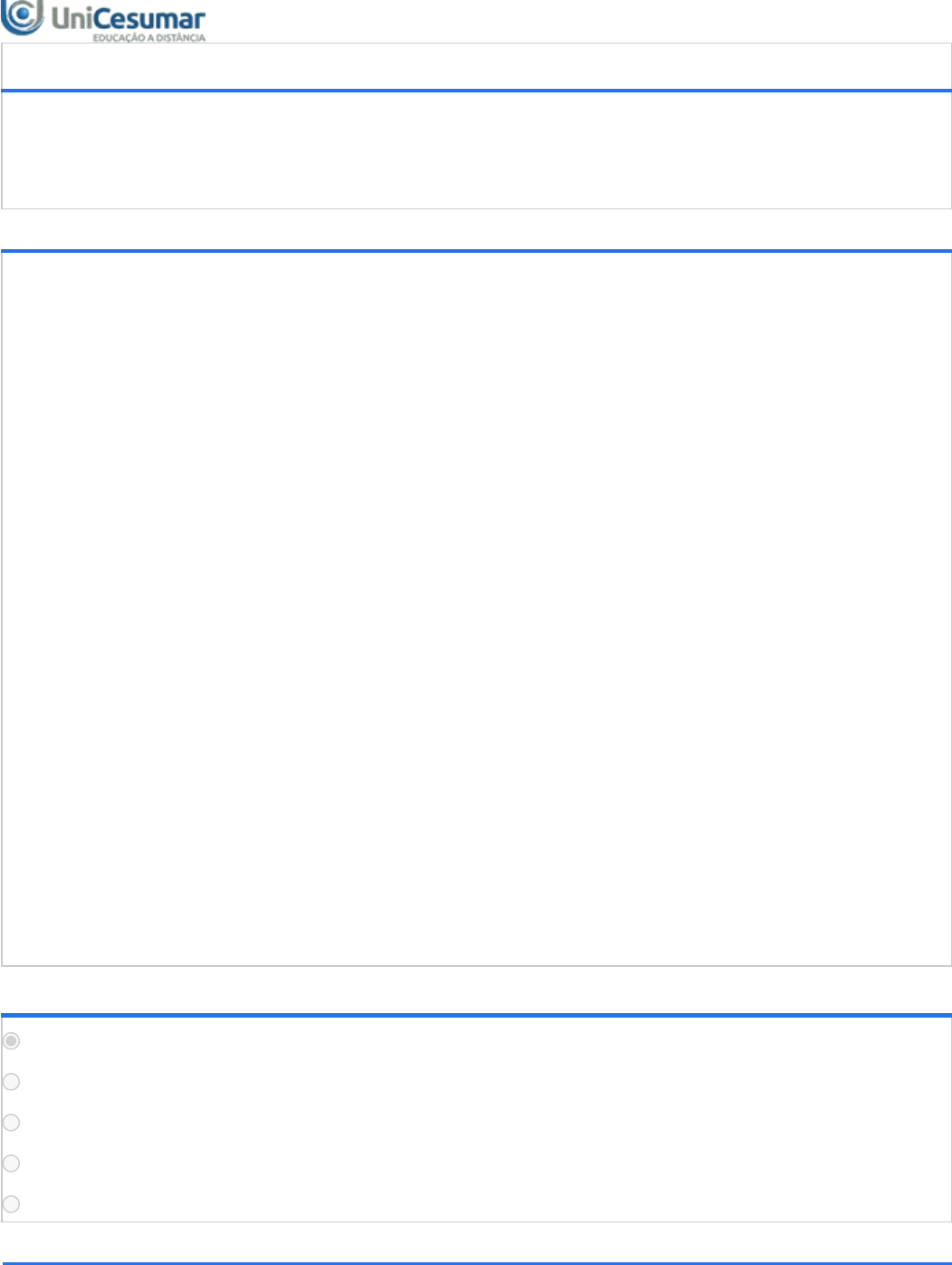 28/07/2023, 11:45 Unicesumar - Ensino a Distância about:blank 1/5 ATIVIDADE 2 - SAÚDE - BIOESTATÍSTICA E EPIDEMIOLOGIA - 52/2023 Período:29/05/2023 08:00 a 16/06/2023 23:59 (Horário de Brasília) Status:ENCERRADO Nota máxima:1,00 Gabarito:Gabarito será liberado no dia 17/06/2023 00:00 (Horário de Brasília) Nota obtida:0,40 1ª QUESTÃO A História Natural das Doenças estuda a evolução natural de uma doença, desde o momento em que ela se instala no ser vivo até o seu desfecho final. Ela envolve um amplo conhecimento sobre os fatores de risco, a patogênese, as manifestações clínicas, o diagnóstico, o tratamento e a prevenção das doenças. Através da História Natural das Doenças, é possível compreender os diferentes estágios do desenvolvimento de uma enfermidade, desde a fase pré-patogênica, passando pela fase patogênica. Essas informações são importantes para o planejamento e implementação de medidas de prevenção e controle das doenças, permitindo assim ações mais efetivas. Elaborado pelo professor, 2023. Considerando as informações apresentadas, avalie as asserções a seguir e a relação proposta entre elas. I. O período pré-patogênico consiste no estágio anterior à doença em que o suscetível está exposto a diversos fatores potencialmente causadores da enfermidade. PORQUE II. No período patogênico o indivíduo acometido pela doença manifesta sinais e sintomas devido à interação estímulo-hospedeiro. Nesse estágio, a enfermidade pode ter diferentes desfechos como a cura, a recuperação ou morte. A respeito dessas asserções, assinale a opção correta: ALTERNATIVAS As asserções I e II são proposições verdadeiras e a II é uma justificativa da I. As asserções I e II são proposições verdadeiras, mas a II não é uma justificativa correta da I. A asserção I é uma proposição verdadeira e a II é uma proposição falsa. A asserção I é uma proposição falsa e a II é uma proposição verdadeira. As asserções I e II são proposições falsas. 2ª QUESTÃO 28/07/2023, 11:45 Unicesumar - Ensino a Distância about:blank 2/5 A organização de informações é essencial para a produtividade e eficiência em qualquer ambiente de trabalho. As tabelas são uma ferramenta útil e eficaz para organizar os dados de forma clara e acessível. Através delas é possível resumir informações complexas em um formato facilmente compreensível, permitindo que as informações sejam rapidamente analisadas e interpretadas, e assim auxiliando na tomada de decisões. As características básicas de uma tabela incluem as células que contêm os dados, as colunas que representam os diferentes tipos de informações, e as linhas que organizam os dados de acordo com um critério específico. Elaborado pelo professor, 2023. Considerando o exposto acima, avalie as afirmações abaixo: I. Os elementos secundários de uma tabela são: título, rodapé, notas e coluna indicadora. II. Uma tabela possui como componentes considerados principais o corpo, a coluna indicadora, cabeçalho e casa. III. Como características gerais na construção de uma tabela é importante que ela seja simples, clara e objetiva. Em sua estrutura possuem colunas externas que não são fechadas e na sua parte superior e inferior às linhas horizontais são fechadas. É correto o que se afirma em: ALTERNATIVAS I, apenas. II, apenas. I e II, apenas. II e III, apenas. I, II e III. 3ª QUESTÃO 28/07/2023, 11:45 Unicesumar - Ensino a Distância about:blank 3/5 O coeficiente de correlação de Pearson é amplamente utilizado em diversas áreas, como a estatística, a psicologia e a biologia. Ele permite avaliar a relação entre duas variáveis, sendo útil para entender como elas se comportam em conjunto. Na área da saúde, o coeficiente pode ser utilizado para avaliar a relação entre a exposição a determinado agente e o desenvolvimento de uma doença, permitindo entender se há uma correlação entre eles. Além disso, o coeficiente de Pearson também pode ser utilizado para identificar variáveis que estão relacionadas e, podem influenciar umas às outras. Elaborado pelo professor, 2023. Considerando as informações apresentadas, avalie as asserções a seguir e a relação proposta entre elas. I. O coeficiente de correlação de Pearson ou correlação produto-momento é uma medida da intensidade de associação existente entre duas variáveis quantitativas. PORQUE II. O coeficiente de correlação representado pela letra “r” pode variar entre -1 e +1. Quando os valores “r” são negativos, a correlação é classificada como do tipo inversa, já quando os valores de “r” são positivos a correlação é direta. A respeito dessas asserções, assinale a opção correta: ALTERNATIVAS As asserções I e II são proposições falsas. A asserção I é uma proposição falsa e a II é uma proposição verdadeira. A asserção I é uma proposição verdadeira e a II é uma proposição falsa. As asserções I e II são proposições verdadeiras e a II é uma justificativa da I. As asserções I e II são proposições verdadeiras, mas a II não é uma justificativa correta da I. 4ª QUESTÃO 28/07/2023, 11:45 Unicesumar - Ensino a Distância about:blank 4/5 A análise estatística é uma ferramenta fundamental para se obter informações precisas e confiáveis sobre um determinado fenômeno em diversas áreas como ciências sociais, economia e saúde. Através da coleta e análise de dados é possível extrair informações relevantes e assim utilizá-las para a tomada de decisões mais assertivas. Nesse contexto, é importante compreender os conceitos de população e amostra e as suas diferentes características. Com isso, será realizada uma escolha de amostra mais adequada em um estudo e a aplicação de análises estatísticas mais corretas para garantir a validade e a precisão dos resultados obtidos. Portanto, compreender a distinção entre populaç