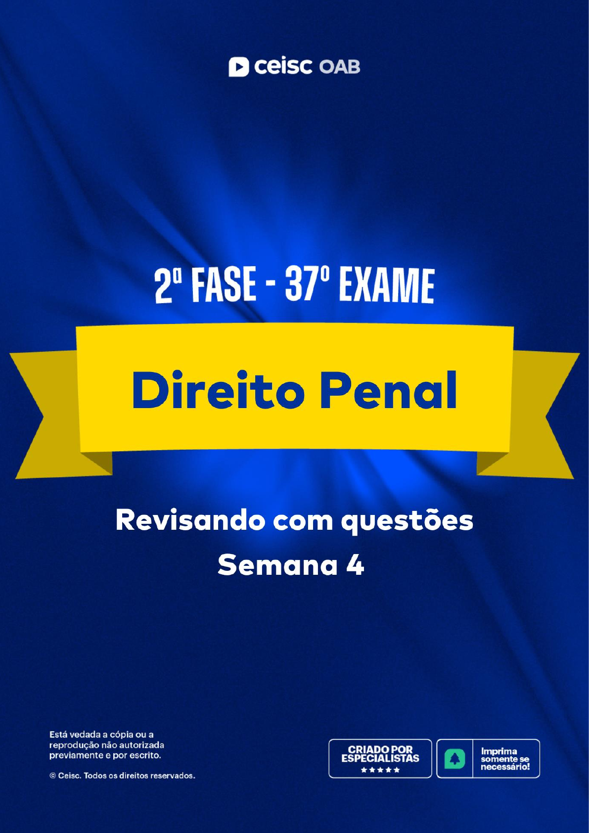 Olá, alunos! Sejam bem-vindos ao E-book revisando com questões! O intuito deste material é que você, aluno, revise o conteúdo visto na semana resolvendo questões. O presente E-book está atualizado com o padrão de respostas referentes às questões. Qualquer dúvida a respeito da correção e distribuição das questões, estaremos à disposição para auxiliá-los através da ferramenta “Pergunte ao professor”! Bons estudos, Abraços, Equipe Ceisc. 2ª FASE OAB | PENAL | 37º EXAME Revisando com questões SUMÁRIO Semana 4 1) Questão 2 – XXVIII Exame ................................................................................... 5 2) Questão 1 – 35º Exame ........................................................................................ 6 3) Questão 4 – XXIX Exame ..................................................................................... 7 4) Questão 3 – XXXI Exame ..................................................................................... 8 Padrão de respostas 1) Questão 2 – XXVIII Exame ................................................................................... 9 2) Questão 1 – 35º Exame ...................................................................................... 13 3) Questão 4 – XXIX Exame ................................................................................... 17 4) Questão 3 – XXXI Exame ................................................................................... 21 Semana 4 1) QUESTÃO 2 – XXVIII EXAME Após regular processamento em que figurava na condição de réu solto, Hugo foi condenado pela prática de crime de apropriação indébita majorada ao cumprimento da pena de 01 ano e 06 meses de reclusão e 14 dias-multa, sendo reconhecida a agravante da reincidência, tendo em vista que foi juntada aos autos Folha de Antecedentes Criminais a demonstrar trânsito em julgado, no ano anterior ao da prática da apropriação indébita, de condenação pelo crime de lesão corporal dolosa, praticada no contexto de violência doméstica e familiar contra a mulher. No momento da sentença, considerando a reincidência, o magistrado aplicou o regime inicial fechado de cumprimento da pena. Destacou, ainda, que, apesar de Hugo estar trabalhando e cuidando de filhos menores, não poderia substituir a pena privativa de liberdade por restritiva de direitos por expressa vedação legal no caso de reincidência dolosa. Intimado da sentença, Hugo procura seu advogado para a adoção das medidas cabíveis. Considerando apenas o narrado, na condição de advogado(a) de Hugo, responda aos questionamentos a seguir. A) Diante da reincidência, de acordo com a jurisprudência do Superior Tribunal de Justiça, existe argumento a ser apresentado, em sede de recurso, em busca da aplicação de regime inicial mais benéfico de cumprimento de pena? Justifique. (Valor: 0,65) B) É possível, em sede de recurso, buscar a substituição da pena privativa de liberdade por restritiva de direitos? Justifique. (Valor: 0,60) Obs.: o(a) examinando(a) deve fundamentar suas respostas. A mera citação do dispositivo legal não confere pontuação. 2) QUESTÃO 1 – 35º EXAME Pedro, nascido em 20 de janeiro de 2000, foi condenado, definitivamente, pela prática do crime furto simples à pena de 1 ano de reclusão em regime inicial aberto, tendo sua pena privativa de liberdade substituída por pena de multa. O crime ocorreu no dia 14 de junho de 2018, e a sentença condenatória transitou em julgado, no dia 20 de abril de 2019, tendo sido feito o pagamento da multa no prazo legal. Ocorre que, no dia 23 de março de 2020, o agente foi preso em flagrante, após empregar ameaça para subtrair o aparelho telefônico de Luiza. Os policiais que efetuaram a prisão conseguiram evitar a consumação delitiva e, posteriormente, Pedro foi denunciado pela prática do crime de roubo, em sua modalidade tentada. Finda a instrução, foi condenado na forma do Art. 157, c/c. Art. 14, inciso II, ambos do Código Penal. Ao aplicar a pena, o juiz fixou a pena-base no mínimo legal, pois favoráveis as circunstâncias judiciais. Na segunda fase, manteve a pena no patamar de 4 anos, apesar de reconhecer a agravante da reincidência. Isto porque observou a menoridade relativa do agente à data do fato. Aplicada a minorante da tentativa em sua fração máxima, alcançou a pena definitiva de 1 ano e 4 meses de reclusão e fixou o regime inicial semi-aberto, sendo negada a suspensão condicional da pena em razão da reincidência. A defesa técnica de Pedro interpôs, assim, recurso de apelação, insurgindo-se apenas quanto à negativa do sursis. O magistrado, no entanto, não admitiu o recurso, sustentando que a via adequada era a do Recurso em Sentido Estrito, a teor do Art. 581, inciso XI, do Código de Processo Penal. Considerando apenas as informações apresentadas, responda, na qualidade de advogado(a) de Pedro, aos itens a seguir. A) Aponte o recurso a ser interposto em face da decisão do juiz de primeiro grau que não admitiu a apelação e o fundamento de direito processual penal a ser alegado para que o apelo seja admitido. Justifique. (Valor: 0,65) B) Existe alguma tese de Direito Penal material que permita a concessão da suspensão condicional da pena no caso concreto? Justifique. (Valor: 0,60) Obs.: o(a) examinando(a) deve fundamentar suas respostas. A mera citação do dispositivo legal não confere pontuação. 3) QUESTÃO 4 – XXIX EXAME Em processo no qual se imputava a Antônio a prática do crime de constituição de milícia privada, foi designada audiência de instrução e julgamento para oitiva das testemunhas arroladas pela acusação e pela defesa. No dia da audiência, as testemunhas de acusação não compareceram, determinando o magistrado, por economia processual, a oitiva das testemunhas de defesa presentes, apesar de o advogado de Antônio se insurgir contra esse fato. Na ocasião, foram ouvidas tr