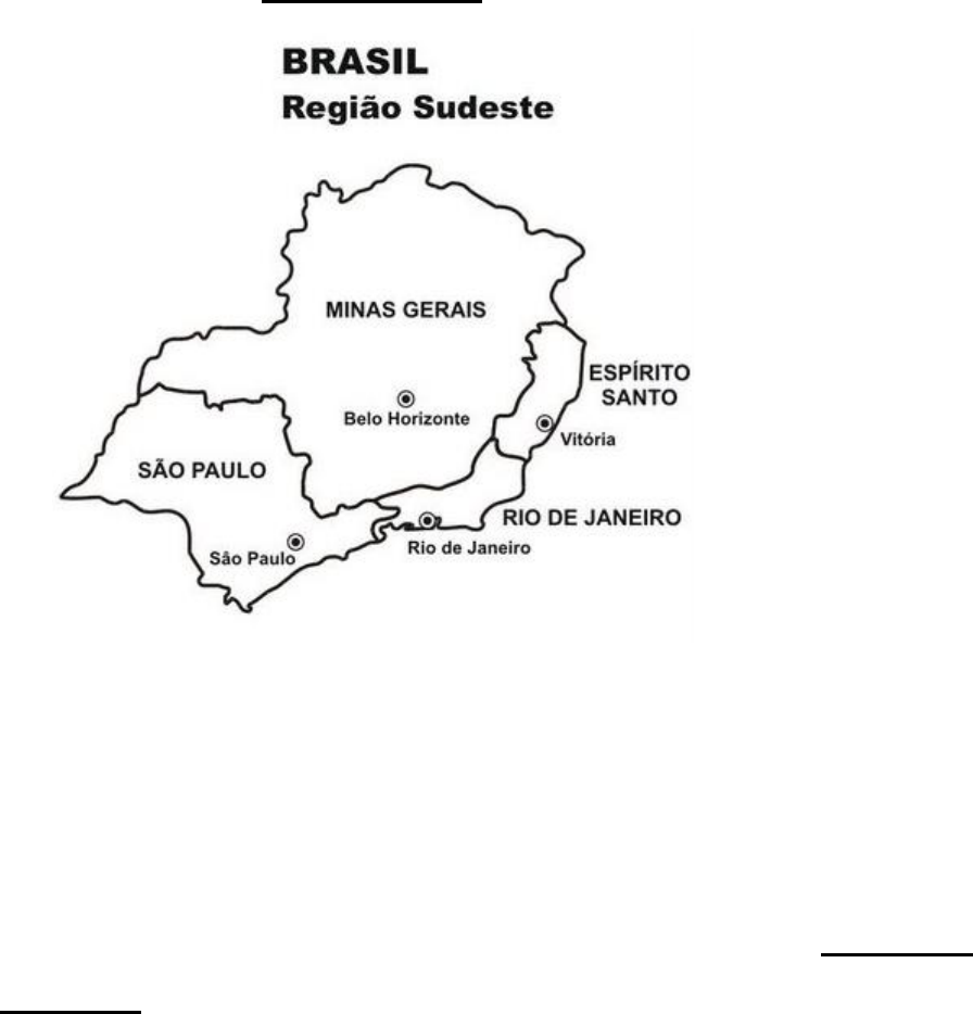 REGIÃO SUDESTE A região Sudeste ocupa uma parte relativamente pequena do território brasileiro. É formada por quatro estados (e respectivas capitais): ➢ Espírito Santo - Vitória ➢ Minas Gerais - Belo Horizonte ➢ Rio de Janeiro - Rio de Janeiro ➢ São Paulo - São Paulo PAISAGENS Relevo: Predominam as terras altas, em foram de planaltos, principalmente na porção leste. No noroeste de Minas Gerais e na porção central de São Paulo encontram-se as depressões. Também destaca-se a planície costeira, no estado do Espírito Santo. Em trechos restritos dessa planície, encontram-se duas baixadas muito povoadas: a baixada Fluminense (RJ) e a baixada Santista (SP). Hidrografia: A região é banhada por rios de quatro bacias hidrográficas: Bacia do Paraná, Bacia do São Francisco, Bacia d Leste (rios Doce e Paraíba do Sul) e bacia do Sudeste (rio Ribeira do Iguape). Por predominarem os rios de planalto e de depressão, formando quedas-d'água, formam construídas muitas usinas hidrelétricas, como a de Três Marias, no rio São Francisco; Ilha Solteira e Urubupungá, no rio Paraná; Furnas, no rio Grande; e Barra Bonita e Promissão, no rio Tietê. Clima: Predomina o clima tropical, quente, com chuvas na estação do verão. Nas áreas mais elevadas, encontra-se o clima tropical de altitude, com verões mais amenos e invernos mais frios. Vegetação: A mata Atlântica, que cobria toda a região, está quase totalmente substituída por plantações, pastagens e áreas urbanas. Restam somente pequenos trechos dessa mata, sendo o maior o que cobre a região da serra do Mar, no estado de São Paulo. Outra vegetação nativa presente na região Sudeste é o cerrado. POPULAÇÃO Os estados mais populosos do Brasil estão na região Sudeste: São Paulo, Rio de Janeiro e Minas Gerais. Em consequência da vinda de imigrantes para o cultivo do café e para trabalhar nas indústrias, encontram-se nessa região muitos descendentes de italianos, espanhóis, alemães, árabes, japoneses, entre outros. ATIVIDADES ECONÔMICAS Extrativismo: O tipo de extrativismo mais praticado na região é o mineral. São grandes as riquezas minerais da região Sudeste: minério de ferro, manganês, petróleo e ouro. O extrativismo vegetal ocorre na exploração de madeira no norte do Espírito Santo e no cerrado de Minas Gerais. O extrativismo animal consiste na pesca marinha, principalmente no Rio de Janeiro e no litoral paulista. Agricultura: O tipo de agricultura dominante nessa região brasileira é a agricultura comercial. Desde a preparação do solo para o plantio, até a colheita, são usadas modernas máquinas agrícolas. Seus principais produtos são a cana-de-açúcar, a soja, o café, o milho, o algodão e a laranja. Pecuária: O rebanho mais numeroso da região é o de bovinos. Depois vem o de suínos e o de equinos, que também são muito numerosos. Três importantes áreas de criação no Sudeste são: Triângulo Mineiro, o vale do Paraíba e o sul do estado de Minas Gerais. Nessas duas últimas, o gado é criado principalmente para a produção de leite. A avicultura é praticada em todos os estados da região, destacando-se São Paulo e Minas Gerais. Indústria: O Sudeste é a região mais industrializada do Brasil. São Paulo possui o maior parque industrial da América Latina. Entre as indústrias de transformação, destacam-se a siderúrgica, a automobilística e a petroquímica. As indústrias têxteis, de produtos alimentícios, de calçados e de aparelhos eletrodomésticos acham-se espalhados por todos os estados da região. Há ainda a indústria naval no Rio de Janeiro, a aeronáutica e de materiais elétricos e eletrônicos em São Paulo. Comércio: A atividade comercial no Sudeste é das maiores do Brasil. Nessa região entram produtos do mundo inteiro, por meio das importações, e por ela saem também nossos principais produtos de exportação, como o café, o açúcar e o sal. A região compra produtos químicos, combustíveis e máquinas. Grandes bancos internacionais e empresas do mundo inteiro tem filiais nos estados de São Paulo, Rio de Janeiro e Minas Gerais. TRANSPORTE Na região Sudeste encontra-se a mais moderna e completa rede de transporte do Brasil, com boas rodovias e ferrovias. Algumas rodovias importantes são a via Dutra, a Rio-Bahia, a Régis Bittencourt, a rodovia dos Imigrantes (que liga a cidade de São Paulo ao porto de Santos), a via Anhanguera e a rodovia dos Bandeirantes. O transporte aéreo é bastante desenvolvido na região, onde se encontram três grandes aeroportos internacionais: o do Antônio Carlos Jobim - Galeão (RJ); o de Cumbica (Guarulhos - SP); e o de Confins (BH). Das ferrovias, muitas são usadas para transporte de produtos destinados à exportação, principalmente minérios. Uma delas é a Estrada de Ferro Vitória-Minas, por onde o minério de ferro é transportado de Minas Gerais até o porto de Tubarão, em Vitória (ES). Na região Sudeste encontramos ainda a maior hidrovia do Brasil, formada pelos rios Tietê e Paraná. No Sudeste também estão os mais modernos e movimentados portos do país: Santos e São Sebastião (SP), Rio de Janeiro (RJ), Vitória e Tubarão (ES). TURISMO A atividade turística é bem desenvolvida na região Sudeste. Além das belezas naturais, das cidades históricas e do turismo ecológico, há o chamado turismo de negócios. Muitas pessoas vão a trabalho para os estados do Sudeste, principalmente para as capitais. Em geral é uma viagem rápida, mas que movimenta esse tipo de turismo. As principais atrações turísticas do Sudeste são: ✓ No Espírito Santo: Parque Estadual do Caparaó; Parque Estadual da Pedra Azul; construções históricas de Vila Velha e algumas praias do litoral, como Guarapari; Praia dos Castelhanos e dunas de Itaúnas. ✓ Em São Paulo: cidades históricas como Itu, São Vicente e Itanhaém; ilha do Cardoso; cavernas do Parque Estadual do Alto Ribeira. cidade serrana de Camp