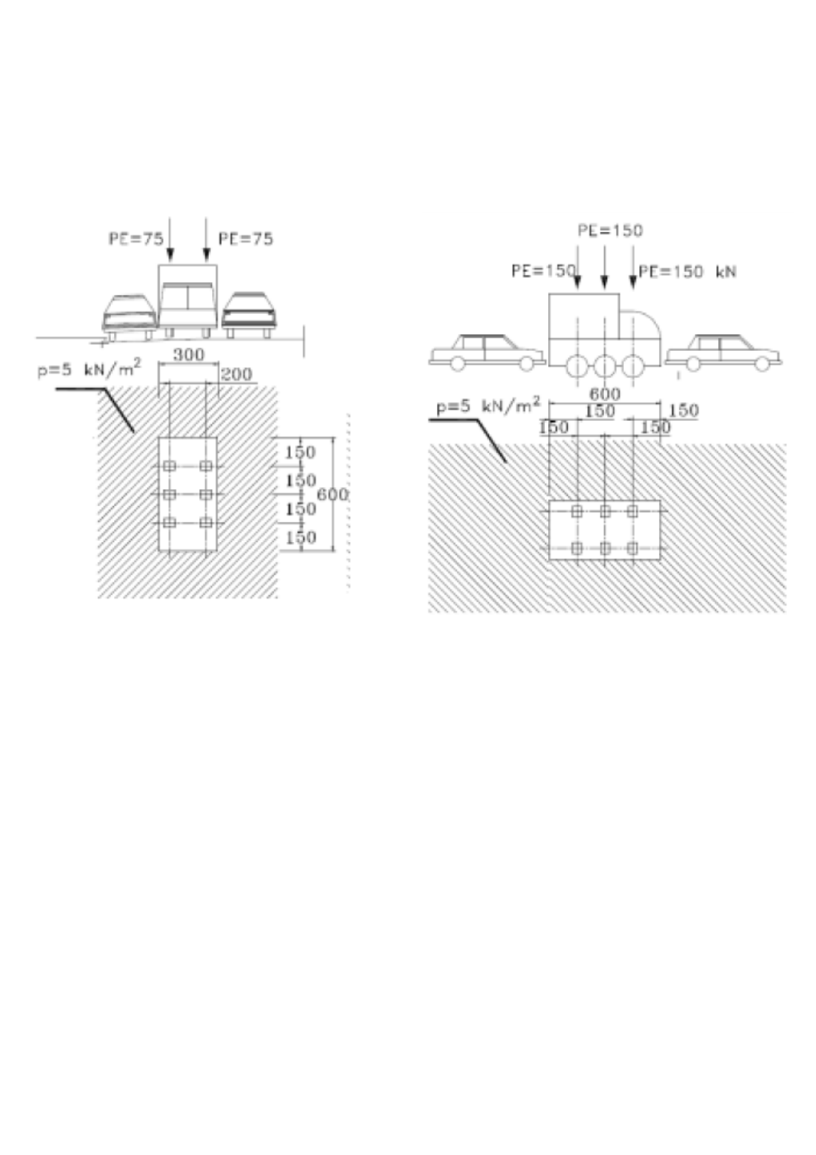 Impresso por André Luis, CPF 179.881.777-29 para uso pessoal e privado. Este material pode ser protegido por direitos autorais e não pode ser reproduzido ou repassado para terceiros. 26/04/2022 20:52:19 Segundo a NBR 7188 ( após 2013 ) CLASSIFICAÇÃO DAS RODOVIAS Impresso por André Luis, CPF 179.881.777-29 para uso pessoal e privado. Este material pode ser protegido por direitos autorais e não pode ser reproduzido ou repassado para terceiros. 26/04/2022 20:52:19 Detalhe do trem-tipo para a Classe 45 O veículo tipo correspondente a Classe TB-450 tem também como características Cada roda dianteira, traseira e intermediaria corresponde a um peso de 75 kN, sendo 150 kN por eixo; As larguras das rodas, equivalem a 0, m50 Distância entre eixos de 1, m;50 Distância entre os centros de roda de cada eixo de 2,00 m; Comprimento de contato de cada roda de 0, m.20 Impresso por André Luis, CPF 179.881.777-29 para uso pessoal e privado. Este material pode ser protegido por direitos autorais e não pode ser reproduzido ou repassado para terceiros. 26/04/2022 20:52:19 Posicionamento do trem-tipo numa ponte Impresso por André Luis, CPF 179.881.777-29 para uso pessoal e privado. Este material pode ser protegido por direitos autorais e não pode ser reproduzido ou repassado para terceiros. 26/04/2022 20:52:19 Para o cálculo das lajes, vigas e transversinas, é obrigatório encostar a roda ao guarda-rodas. Posicionamento do trem-tipo numa ponte Impresso por André Luis, CPF 179.881.777-29 para uso pessoal e privado. Este material pode ser protegido por direitos autorais e não pode ser reproduzido ou repassado para terceiros. 26/04/2022 20:52:19 AÇÕES EM PONTE FERROVIÁRIA • Ponte ferroviária: ABNT NBR 7189:1985 - Cargas móveis para projeto estrutural de obras ferroviárias • TB-360: transporte de minério de ferro ou outros carregamentos equivalentes; • TB 270- : transporte de carga geral; • TB-240: verificação de estabilidade e projeto de reforço de obras existentes; • TB-170: transporte de passageiros em regiões metropolitanas ou suburbanas. Impresso por André Luis, CPF 179.881.777-29 para uso pessoal e privado. Este material pode ser protegido por direitos autorais e não pode ser reproduzido ou repassado para terceiros. 26/04/2022 20:52:19 Q = carga por eixo q e q ' = cargas distribuídas n a via, simuland o, respec�vamente vagões carregados e descarregados. Impresso por André Luis, CPF 179.881.777-29 para uso pessoal e privado. Este material pode ser protegido por direitos autorais e não pode ser reproduzido ou repassado para terceiros. 26/04/2022 20:52:19 Outras considerações Passarela de pedestres • Classe única • Q = 5 KN/m2 – ( Não majorada pelo coeficiente de impacto). Carretas especiais - Observações: • Pontes onde deverão trafegar carregamentos especiais ( carretas ), deverão: • Consultar os órgão com jurisdição sobre a referida obra; • A passagem dessas carretas nas pontes deverão ser acompanhada por batedores que as posicionam no eixo das estruturas; • Estar interditadas ao tráfego dos demais veículos; • O veículo deverá trafegar com velocidade constante de 5km/h, sem frear ou acelerar; • Travessia fica suspensa quando houver ventos acima de 20m/s; • A liberação do tráfego normal, deve ser de forma gradual aapós transposição do veículo especial sobre a obra. As cargas das carretas não são majoradas pelo coeficiente de impacto, devido aos cuidados descritos acima. Impresso por André Luis, CPF 179.881.777-29 para uso pessoal e privado. Este material pode ser protegido por direitos autorais e não pode ser reproduzido ou repassado para terceiros. 26/04/2022 20:52:19 DETERMINAÇÃO DO TREM-TIPO O tabuleiro de uma ponte de vigas (longarinas, transversais e a laje) formam um conjunto monolítico, cuja cálculo exato é complexo e laborioso. Sendo assim, para se calcular “manualmente” os esforços nos elementos recorremos aos chamados processos aproximados. O procedimento mais conhecido é o “método dos coeficientes de repartição” ou “quinhão de carga”, que consiste em determinar a repartição do carregamento aplicado, entre os elementos que compõem o tabuleiro. Conhecido o carregamento de cada elemento, faz-se o cálculo de cada elemento isoladamente. Os processos aproximados podem ser classificados em três categorias: - processo das longarinas independentes (+ utilizado em pontes com 2 vigas ); - processo de efeito de grelha independentes (pontes com + de 2 vigas); - processo onde o tabuleiro é uma placa. Impresso por André Luis, CPF 179.881.777-29 para uso pessoal e privado. Este material pode ser protegido por direitos autorais e não pode ser reproduzido ou repassado para terceiros. 26/04/2022 20:52:19 Distribuição das cargas móveis nas seções das pontes Empregam-se as linhas de influência, diagramas que permitem definir as as posições mais desfavoráveis do trem-tipo e calcular respectivas solicitações. Com os valores extremos das solicitações, calculadas nas diversas seções de cálculo da viga, é possível traçar as envoltórias de solicitações da carga móvel. Como os valores das envoltórias são determinados para as situações mais desfavoráveis das cargas, quaisquer outras posições do carregamento produzirão solicitações menores. Impresso por André Luis, CPF 179.881.777-29 para uso pessoal e privado. Este material pode ser protegido por direitos autorais e não pode ser reproduzido ou repassado para terceiros. 26/04/2022 20:52:19 Denomina-se trem-tipo de uma longarina o produzido quinhão de carga nela pelas cargas móveis de cálculo, colocadas na posição mais desfavorável para a longarina em estudo. DETERMINAÇÃO DO TREM-TIPO