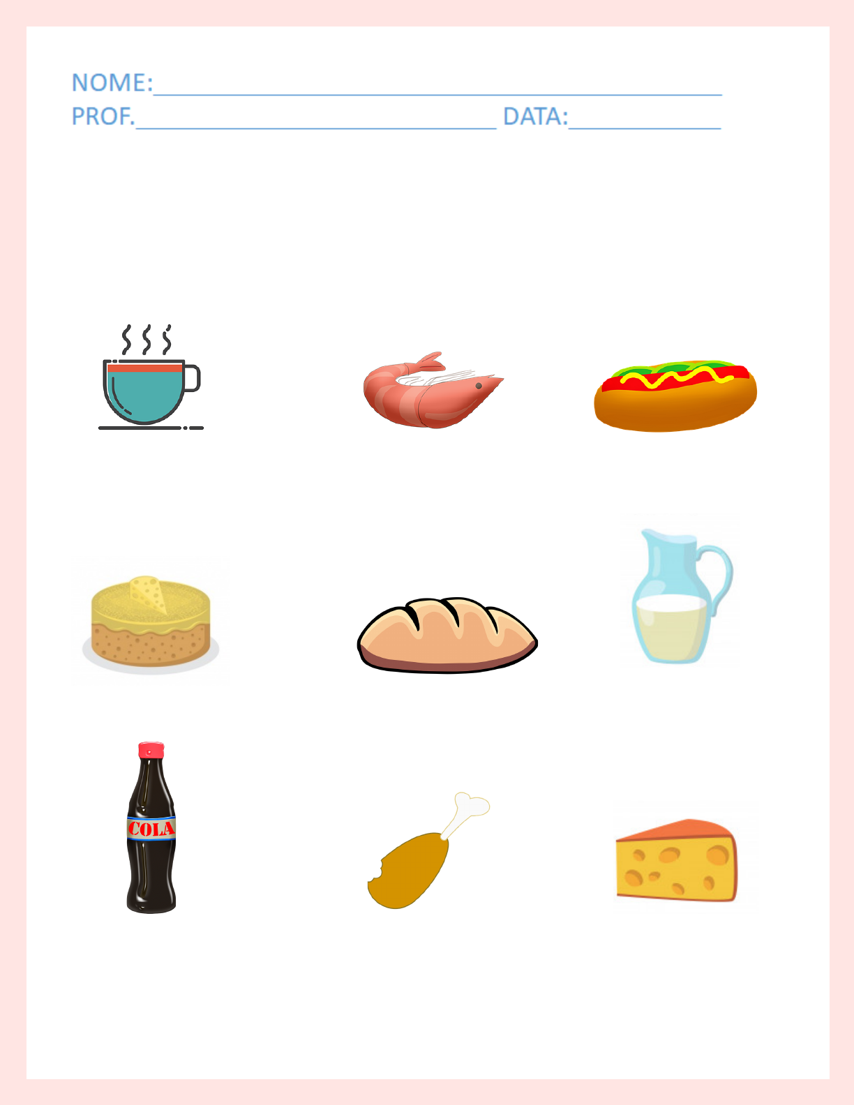 LEITE QUEIJO CAFÉ REFRIGERANTE PÃO CACHORRO-QUENTE FRANGO FRANGO CAMARÃO CIRCULE OS ALIMENTOS DO CAFÉ DA MANHÃ.