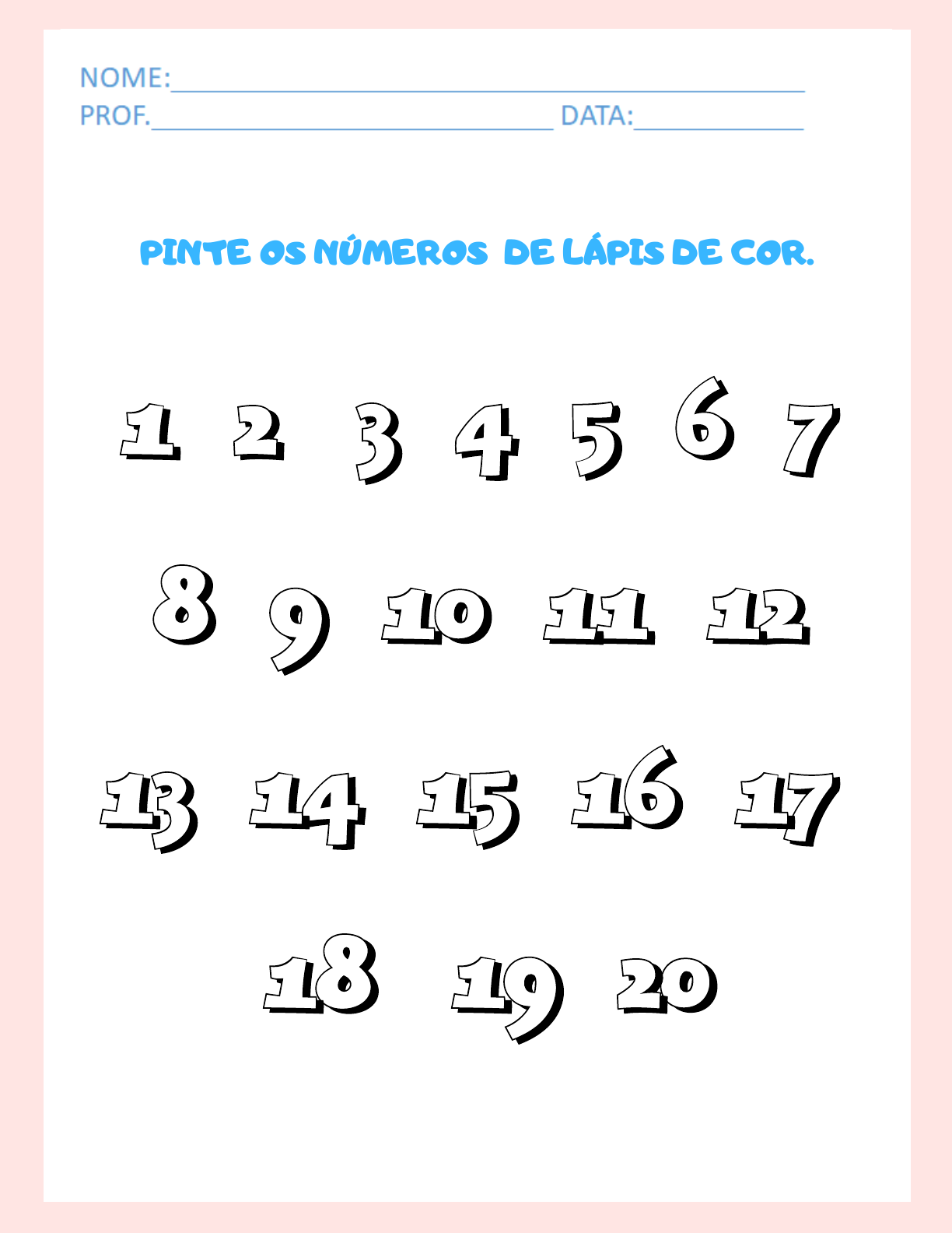 1 2 3 4 5 6 7 8 9 10 11 12 13 14 15 16 17 18 19 20 PINTE OS NÚMEROS DE LÁPIS DE COR.