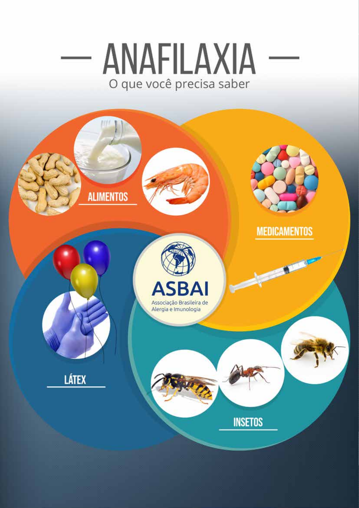 ANAFILAXIA 1 ANAFILAXIA O QUE VOCÊ PRECISA SABER ANAFILAXIA 2 21-67533 CDD-616.97 NLM-WD-300 Dados Internacionais de Catalogação na Publicação (CIP) (Câmara Brasileira do Livro, SP, Brasil) Anafilaxia [livro eletrônico] : o que você precisa saber / Andrea Pescadinha Emery Carvalho. -- 1. ed. -- Recife, PE : Associação Brasileira de Alergia e Imunologia, 2021. PDF Bibliografia. Vários autores. Vários colaboradores. ISBN 978-65-993541-1-3 1. Anafilaxia 2. Alergia - Diagnósticos 3. Alergia - Tratamento 4. Imunologia I. Título. Índices para catálogo sistemático: 1. Alergia : Medicina 616.97 Aline Graziele Benitez - Bibliotecária - CRB-1/3129 ISBN 978-65-993541-1-3 ANAFILAXIA 3 Associação Brasileira de Alergia e Imunologia ASBAI – Biênio 2021-2022 Presidente: Emanuel Sávio Cavalcanti Sarinho Diretora Científica: Norma de Paula Motta Rubini EDITORAS Maria de Fátima Epaminondas Emerson Coordenadora da Comissão de Assuntos Comunitários da Associação Brasileira de Alergia e Imunologia ASBAI biênio 2021-2022 Alexandra Sayuri Watanabe Coordenadora do Departamento Científico de Anafilaxia da Associação Brasileira de Alergia e Imunologia ASBAI biênio 2021-2022 Faradiba Sarquis Serpa Coordenadora da Diretoria de Política de Saúde da Associação Brasileira de Alergia e Imunologia ASBAI biênio 2021-2022 AUTORES (ordem alfabética) Membros da Comissão de Assuntos Comunitários da Associação Brasileira de Alergia e Imunologia ASBAI biênio 2021-2022 Andrea Pescadinha Emery Carvalho Cláudia Rosa e Silva Conrado da Costa Soares Martins Fernanda Lugão Campinhos Ingrid Pimentel Cunha Magalhães Souza Lima Maria das Graças de Melo Teixeira Spengler Marly Marques da Rocha Mayara Madruga Marques Nelson Guilherme Bastos Cordeiro Priscilla Filippo Alvim de Minas Santos Regina Sumiko Watanabe Di Gesu Rosa Maria Maranhão Casado Rossy Moreira Bastos Junior Wilma Carvalho Neves Forte Todos os direitos reservados a Associação Brasileira de Alergia e Imunologia 4 AGRADECIMENTOS Este livro foi escrito em curto espaço de tempo e não seria possível sem a dedicação dos membros da Comissão de Assuntos Comunitários da ASBAI. Agradecemos ao Professor Emanuel Sarinho, à Diretoria biênio 2021-2022 e a todos que nos ajudaram, de maneira direta ou indireta, nesta obra. ANAFILAXIA 5 SUMÁRIO Introdução ..............................................................................................6 Apresentação ..........................................................................................7 O que é Anafilaxia .................................................................................8 Manifestações da Anafilaxia ................................................................9 Gravidade da Anafilaxia ......................................................................12 Anafilaxia e COVID-19 ......................................................................14 Atitudes práticas ...................................................................................15 Plano de Ação .......................................................................................16 Como prevenir ......................................................................................17 Mitos e Verdades ..................................................................................22 APÊNDICES Situações Especiais Relacionadas à Anafilaxia Anafilaxia por alimentos no ambiente escolar .................................24 Anafilaxia - Anestésicos ......................................................................26 Anafilaxia - Contrastes radiológicos ..................................................28 Anafilaxia - Insetos Himenópteros ...................................................30 Anafilaxia - Látex .................................................................................32 Anafilaxia - Medicamentos .................................................................34 Anafilaxia por alimentos em restaurantes ........................................36 Anafilaxia – Vacinas, Imunizações ....................................................38 REFERÊNCIAS BIBLIOGRÁFICAS ...........................................40 6 INTRODUÇÃO Este livro foi escrito por médicos especialistas em Alergia e Imunologia associados da ASBAI (Associação Brasileira de Alergia e Imunologia). Esta Associação se dedica a promover a educação médica continuada, fortalecendo o exercício profissional da especialidade. Ao mesmo tempo, divulga junto ao público, a importância da prevenção e tratamento de doenças alérgicas e das imunodeficiências. A Comissão de Assuntos Comunitários da ASBAI tem como objetivo estabelecer a comunicação e o diálogo com a popula- ção, respondendo mensagens, esclarecendo dúvidas e oferecen- do informações confiáveis sobre as doenças alérgicas e imunológicas. A obra reúne perguntas e respostas relevantes sobre o tema “Anafilaxia” e pretende contribuir para o reconhecimento e tratamento desta condição de saúde, uma vez que quanto melhor informados estiverem os portadores e/ou seus responsáveis sobre essa grave alergia, melhor o controle e menores serão os riscos. ANAFILAXIA 7 APRESENTAÇÃO A anafilaxia é uma reação alérgica grave, imprevisível e que ameaça a vida. Pode ser desencadeada por diversos fatores, sendo os mais comuns: alimentos, medicamentos, ferroadas de insetos, látex, entre outros. O Brasil não dispõe de dados específicos de prevalência, uma vez que não se trata de uma doença de notificação obrigatória. Contudo, não é difícil verificar na prática que sua ocorrência está aumentando. Calcula-se que um em cada 200 atendimentos nos serviços de emergência sejam para tratamento de reações alérgicas graves. A anafilaxia, quando ocorre pela primeira vez, é imprevisível e pode aco- meter qualquer pessoa. Até porque, em geral envolve substâncias que o in- divíduo já teve 