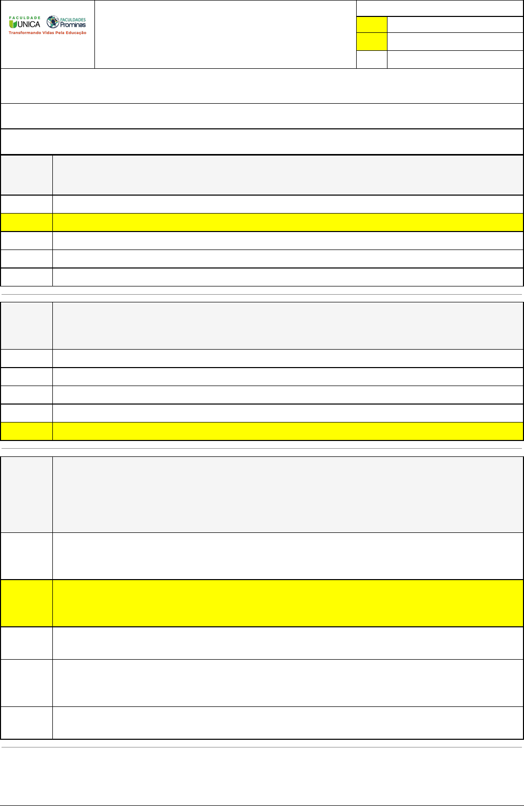 Pincel Atômico - 07/08/2023 20:26:43 1/3 AMANDA EMÍLIA GOMES Exercício Caminho do Conhecimento - Etapa 10 (22910) Atividade finalizada em 01/04/2023 19:42:24 (833659 / 1) LEGENDA Resposta correta na questão # Resposta correta - Questão Anulada X Resposta selecionada pelo Aluno Disciplina: DOCÊNCIA: CONHECIMENTO, PRÁTICA E ENGAJAMENTO PROFISSIONAL [815069] - Avaliação com 8 questões, com o peso total de 3,33 pontos [capítulos - 5] Turma: Segunda Graduação: Segunda Graduação 6 Meses - Licenciatura em Educação Especial - Grupo: FPD-FEV2022 - SGegu0A230223 [85016] Aluno(a): 91423270 - AMANDA EMÍLIA GOMES - Respondeu 8 questões corretas, obtendo um total de 3,33 pontos como nota [359943_1534 01] Questão 001 (FAUEL - 2020 - Prefeitura de Jaguapitã – PR - Professor - Adaptada) Para um bom planejamento temos a avaliação da aula, que está diretamente ligada ao que? Formulação da aprendizagem. X Objetivo de aprendizagem. Metodologia da aprendizagem. Recursos da aprendizagem. Bibliografia selecionada. [359942_1533 98] Questão 002 (FUNDATEC - 2020 - Prefeitura de Bagé - RS - Professor de Educação Infantil - Adaptada) Para Vasconcellos (2012), a elaboração de um projeto de curso é também um processo de retenção de conteúdo. acumulação didática. transmissão de informação. memorização. X construção do conhecimento. [359944_1534 07] Questão 003 (Instituto Consulplan - 2020 - Prefeitura de Formiga - MG - Pedagogo) O professor deverá apresentar atividades de avaliação nas quais seja possível atribuir os êxitos e os fracassos da aprendizagem a motivos modificáveis e controláveis, como fórmula para entender que é possível avançar quando se realiza trabalho e esforço suficientes para consegui-lo. Neste contexto, é necessário que os alunos conheçam e se apropriem dos critérios de avaliação, mas não tenham conhecimento dos instrumentos que os professores utilizam para avaliá-los, de forma a preservar o processo avaliativo. X conheçam desde o princípio o que se quer deles, que sentido tem este objetivo, de que meios de ajuda disporão, que pautas e instrumentos são utilizados para conhecer suas aprendizagens e que critérios avaliativos serão aplicados. exercitem a autoavaliação devido à importância crucial de substituir outras atividades de avaliação que são práticas correntes nas escolas por ela. entendam que o controle e a avaliação das aprendizagens recaem exclusivamente nos professores, sobretudo em momentos e situações alheios aos processos individuais de aprendizagem. exercitem a avaliação em larga escala devido à importância crucial de substituir outras atividades de avaliação que são práticas correntes nas escolas por ela. Pincel Atômico - 07/08/2023 20:26:43 2/3 [359943_1534 03] Questão 004 (CEV-URCA - 2021 - Prefeitura de Crato - CE - Pedagogo) O planejamento escolar é uma tarefa docente que inclui tanto a previsão das atividades em termos de organização e coordenação em face dos objetivos propostos, quanto a sua revisão e adequação no decorrer do processo de ensino. O planejamento é um meio para programar as ações docentes, mas é também um momento de pesquisa e reflexão intimamente ligado à avaliação. Há três modalidades de planejamento, articulados entre o plano da escola, o plano de ensino e o plano de aulas. http://www.aecep.com.br/artigo/o-planejamento-escolar–jose-carlos-libaneo.html - acesso dia 18 de abril de 2021. O planejamento tem assim as seguintes funções: I. Explicar os princípios, diretrizes e procedimentos do trabalho docente que as segurem a articulação entre as tarefas da escola e as exigências do contexto social e do processo de participação democrática. II. Expressar os vínculos entre o posicionamento filosófico, político-pedagógico e profissional e as ações efetivas que o professor irá realizar na sala de aula. O planejamento escolar é uma tarefa docente que inclui tanto a previsão das atividades em termos de organização e coordenação em face dos objetivos propostos, quanto a sua revisão e adequação no decorrer do processo de ensino. III. Assegurar a racionalização, organização e coordenação do trabalho docente, de modo que a previsão das ações docentes possibilite ao professor a realização de um ensino de qualidade e evite a improvisação e a rotina. IV. Prever objetivos, conteúdos e métodos a partir de consideração das exigências postas pela realidade social, do nível de preparo e das condições socioculturais e individuais dos alunos. V. Assegurar a unidade e a coerência do trabalho docente, uma vez que torna possível inter-relacionar, num plano, os elementos que compõem o processo de ensino: os objetivos (para que ensinar), os conteúdos (o que ensinar), os alunos e suas possibilidades (a quem ensinar), os métodos e técnicas (como ensinar) e avaliação que intimamente relacionada aos demais. VI. Atualizar os conteúdos do plano sempre que for preciso, aperfeiçoando-o em relação aos progressos feitos no campo dos conhecimentos, adequando-os às condições de aprendizagens dos alunos, aos métodos, técnicas e recursos de ensino que vão sendo incorporados nas experiências do cotidiano. VII. Facilitar a preparação das aulas: selecionar o material didático em tempo hábil, saber que tarefas professor e alunos devem executar. Replanejar o trabalho frente a novas situações que aparecem no decorrer das aulas. Para que os planos sejam efetivamente instrumentos para a ação, devem ser como guia de orientação e devem apresentar ordem sequencial, objetividade, coerência, flexibilidade. X Todas estão corretas. I e V estão incorretas. V está incorreta. II e VI estão incorretas. VII está incorreta. [359942_1533 96] Questão 005 (AMEOSC - 2021 - Prefeitura de São José do Cedro - SC - Professor de Ensino Fundamental - Séries Iniciais - Adaptada) Entre os documentos utilizados para a organização do proc