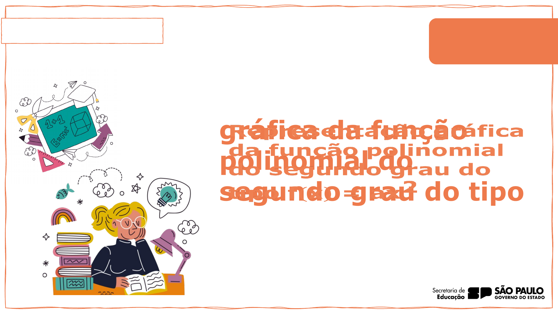 Representação gráfica da função polinomial do segundo grau do tipo 1ª série Aula 3 – 3º bimestre Matemática Etapa Ensino Médio Representação gráfica da função polinomial do segundo grau do tipo . Representar, no plano cartesiano, a relação entre as grandezas de uma função polinomial de 2º grau do tipo em situações diversas. Conteúdo Objetivo Habilidade: (EM13MAT502) Investigar relações entre números expressos em tabelas para representá-los no plano cartesiano, identificando padrões e criando conjecturas para generalizar e expressar algebricamente essa generalização, reconhecendo quando essa representação é de função polinomial de 2º grau do tipo . Estimativa de tempo para o desenvolvimento das seções: Para começar: 10 min Foco no conteúdo: 10 min Na prática: 15 min Aplicando: 10 min Área e perímetro de um quadrado No seu caderno de anotações, elabore uma tabela que contenha as quatro medidas dos lados de um quadrado e os respectivos valores de seu perímetro, e uma segunda tabela que contenha as mesmas medidas dos lados e as respectivas medidas das áreas. Após a elaboração das duas tabelas, desenhe um plano cartesiano e esboce o gráfico do perímetro em função da medida do lado do quadrado e também o gráfico da área em função da medida do lado do quadrado. Existe um valor para a medida do lado do quadrado em que a medida do perímetro é igual à medida da área? Técnica: “Virem e conversem” Tempo: 10 min Para começar Correção Medida do lado L Medida do perímetro (P(L)) = 4L 2 8 3 12 4 16 5 20 Medida do lado L Medida da área (S(L))= 2 4 3 9 4 16 5 25 Para começar Correção Como podemos constatar na representação gráfica, existe um ponto de intersecção entre as medidas de perímetro e da área, e isso mostra que, quando a medida do lado do quadrado é igual a 4 U.M., tanto o perímetro e área têm medida igual a 16 U.M. e , respectivamente. Para começar Anteriormente, vimos a relação de interdependência entre duas grandezas x e y, em que y é diretamente proporcional ao quadrado de x, isto é, , ou seja, . De modo geral, a relação serve de base para iniciarmos os estudos das funções polinomiais de 2º grau, cuja forma geral é: Grandeza proporcional ao quadrado de outra: a função polinomial de 2º grau Tempo: 10 min Foco no conteúdo Nosso objetivo, agora, é estudar a representação gráfica da função Sabemos que o gráfico de y = x é uma reta com inclinação igual a 1. Para construir o gráfico de , é preciso considerar tais aspectos: O quadrado de um número situado entre 0 e 1 é menor que o próprio número, ou seja, , para ; O quadrado de um número maior do que 1 é maior que o próprio número, ou seja, , para ; Foco no conteúdo O gráfico de é simétrico em relação ao eixo y, uma vez que , para todo x; O gráfico de encosta “suavemente” no eixo x, sem formar um “bico”. Resumindo tais informações, temos o esboço gráfico a seguir, em que a curva correspondente é uma parábola. Foco no conteúdo Foco no conteúdo Partindo do gráfico de fica fácil construir o gráfico de , com Para tanto, a cada valor de x, devemos fazer corresponder o produto , que é maior que , quando a > 1, e é menor que , quando 0 < a < 1. Assim, as parábolas ficam tanto mais “fechadas” quanto maior for o valor de a e tanto mais “abertas” quanto menor for o valor de a. Alguns gráficos desse tipo estão apresentados a seguir. Foco no conteúdo Da mesma maneira, para os valores negativos de a, os gráficos mantêm a mesma forma, mas os valores de y tornam-se negativos. Observe a figura a seguir. Foco no conteúdo Foco no conteúdo Resumindo: Observe que, quanto maior o valor absoluto do coeficiente a, mais “fechada” é a parábola. Quanto menor o valor absoluto de a, mais “aberta” ela é. O sinal de a indica se a concavidade (abertura) da parábola estará voltada para cima (a>0) ou para baixo (a<0). Foco no conteúdo Atividade 1 A relação entre x e y é uma função polinomial do 2º grau. Represente, em um mesmo plano cartesiano, as situações 1 e 2 e, em outro plano cartesiano, as situações 3 e 4. Situação 1 x y -2 4 -1 1 0 0 1 1 2 4 Situação 2 x y -2 8 -1 2 0 0 1 2 2 8 Situação 3 x y -2 -4 -1 -1 0 0 1 -1 2 -4 Situação 4 x y -2 -8 -1 -2 0 0 1 -2 2 -8 Técnica: “Todo mundo escreve” Tempo: 15 min Na prática Situação 1 x y -2 4 -1 1 0 0 1 1 2 4 Situação 2 x y -2 8 -1 2 0 0 1 2 2 8 Correção Na prática Correção Situação 3 x y -2 -4 -1 -1 0 0 1 -1 2 -4 Situação 4 x y -2 -8 -1 -2 0 0 1 -2 2 -8 Na prática Atividade 2 Analise os dados das situações 1, 2, 3 e 4 e escreva a expressão algébrica entre a relação x e y. Situação 1 x y -2 4 -1 1 0 0 1 1 2 4 Situação 2 x y -2 8 -1 2 0 0 1 2 2 8 Situação 3 x y -2 -4 -1 -1 0 0 1 -1 2 -4 Situação 4 x y -2 -8 -1 -2 0 0 1 -2 2 -8 Na prática Situação 1 y 4 4 1 1 0 0 1 1 4 4 Correção Para determinar as expressões algébricas que relacionam os valores das variáveis y em função do quadrado da variável x, partiremos da tabela da Situação 1 e determinaremos a Taxa de Variação Média. Na prática Correção Para estabelecer a expressão algébrica da Situação 2, podemos comparar os valores de y na Situação 1 e 2. Situação 1 x y -2 4 -1 1 0 0 1 1 2 4 Situação 2 x y -2 8 -1 2 0 0 1 2 2 8 Ao comparar os valores de y nas duas tabelas, concluímos que os valores de y na Situação 2 são o dobro dos valores da Situação 1. Então, podemos concluir que a expressão algébrica da Situação 2 será dada por: Na prática Correção Realizando o mesmo procedimento para encontrar as expressões algébricas das Situações 3 e 4, temos Situação 3 y 4 -4 1 -1 0 0 1 -1 4 -4 Na prática Correção Para estabelecer a expressão algébrica da Situação 2, podemos comparar os valores de y na Situação 3 e 4. Situação 3 x y -2 -4 -1 -1 0 0 1 -1 2 -4 Situação 4 x y -2 -8 -1 -2 0 0 1 -2 2 -8 Ao comparar o