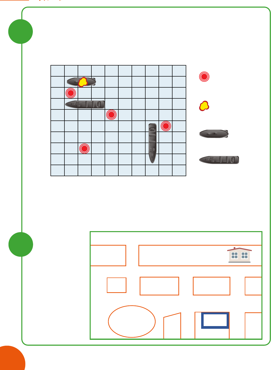 10 AVALIAAVALIA BRASILBRASIL Paulo e Miguel estão jogando uma partida de batalha naval. Nessa partida, Miguel já acertou uma parte do submarino de Paulo, como mostra a figura abaixo. Legenda: Tiro certo Navio Tiro na água Submarino Observe abai- xo a represen- tação de parte do mapa de uma cidade planejada. 66 77 A B C D E F G H I J 1 2 3 4 5 6 7 8 9 10 Avenida das Hortências Casa da Gabriela Avenida das Violetas Avenida das Margaridas Praça dos Coqueiros Padaria Rua das B rom élias Rua das Palm eiras Rua das O rquídeas Rua dos C ravos Para afundar o submarino de Paulo, Miguel deverá atirar em: (A) B2 e C2. (B) B2 e D2. (C) B4 e B2. (D) B4 e C4. X É recomendado reproduzir o mapa em tamanho maior na lousa ou em uma cartolina.
